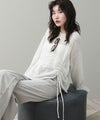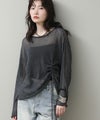 片側のシャーリングデザインがポイントに。合わせるンボトムに合わせてシルエットを調整できます。デコルテを綺麗に見せてくれるボートネックで見た目も涼やかに着ていただけます。1枚でこなれ感のでる万能アイテムです。