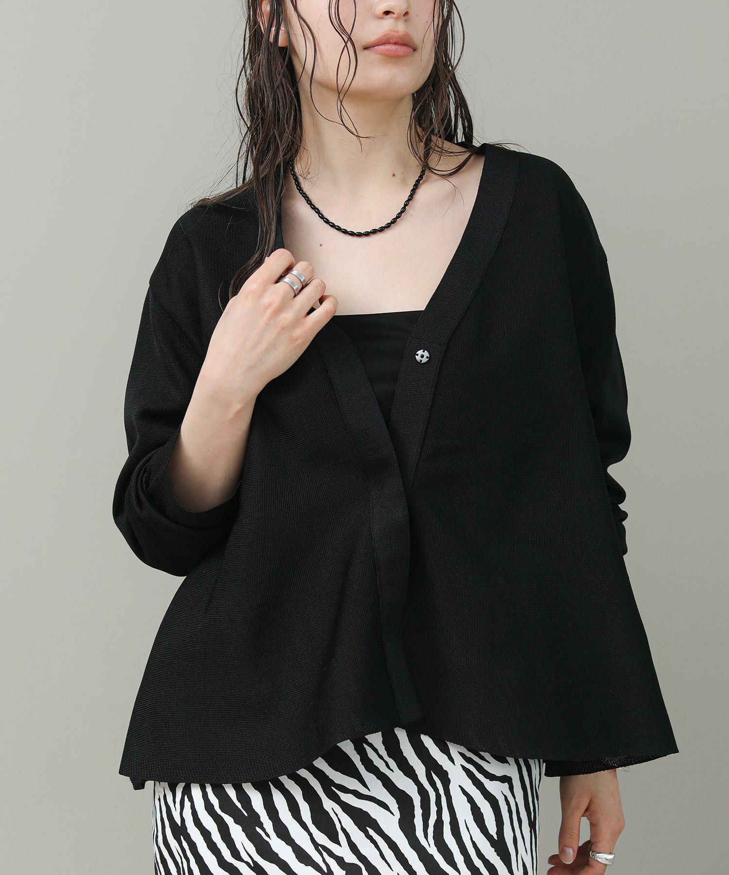 ペプラムシルエットが目を惹くカーディガン。