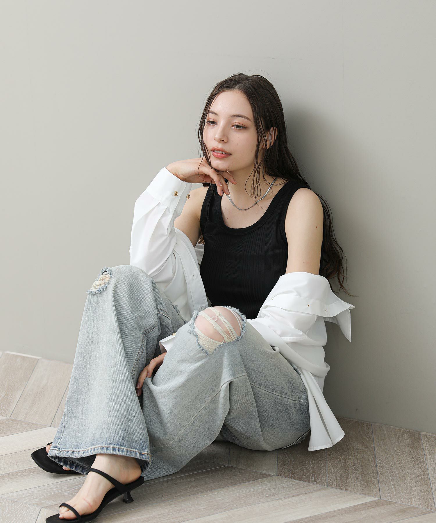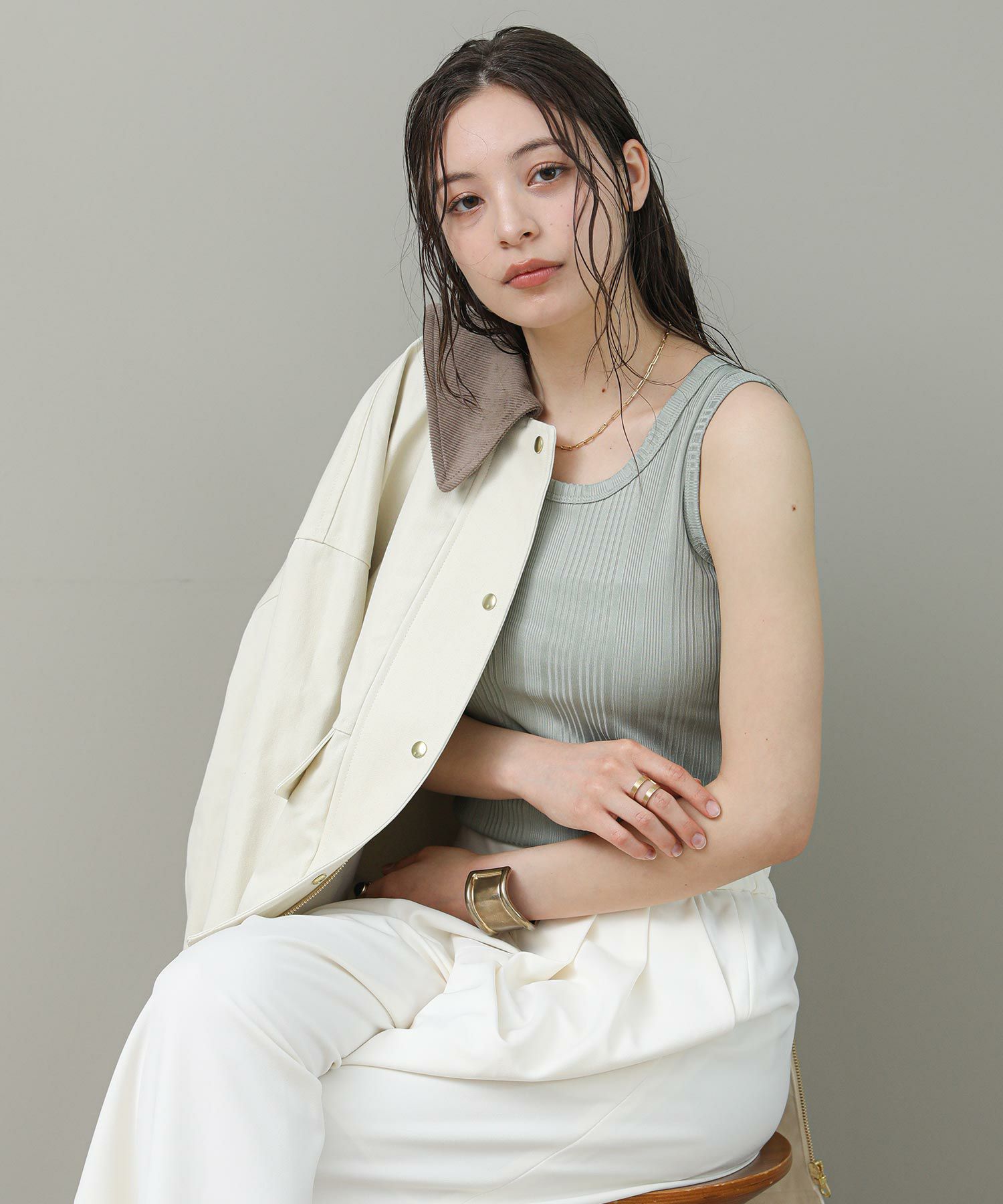 ※着用画像は撮影状況、光の当たり具合で色みが違って見える場合がございます。実際の色みについては、画像一覧の最後に掲載している詳細画像をご参照ください。