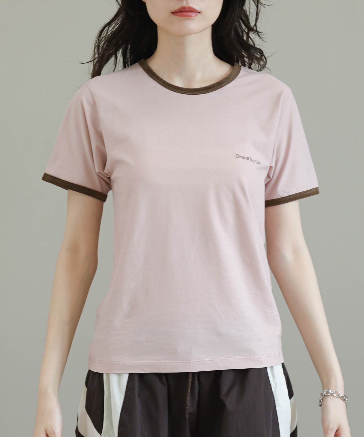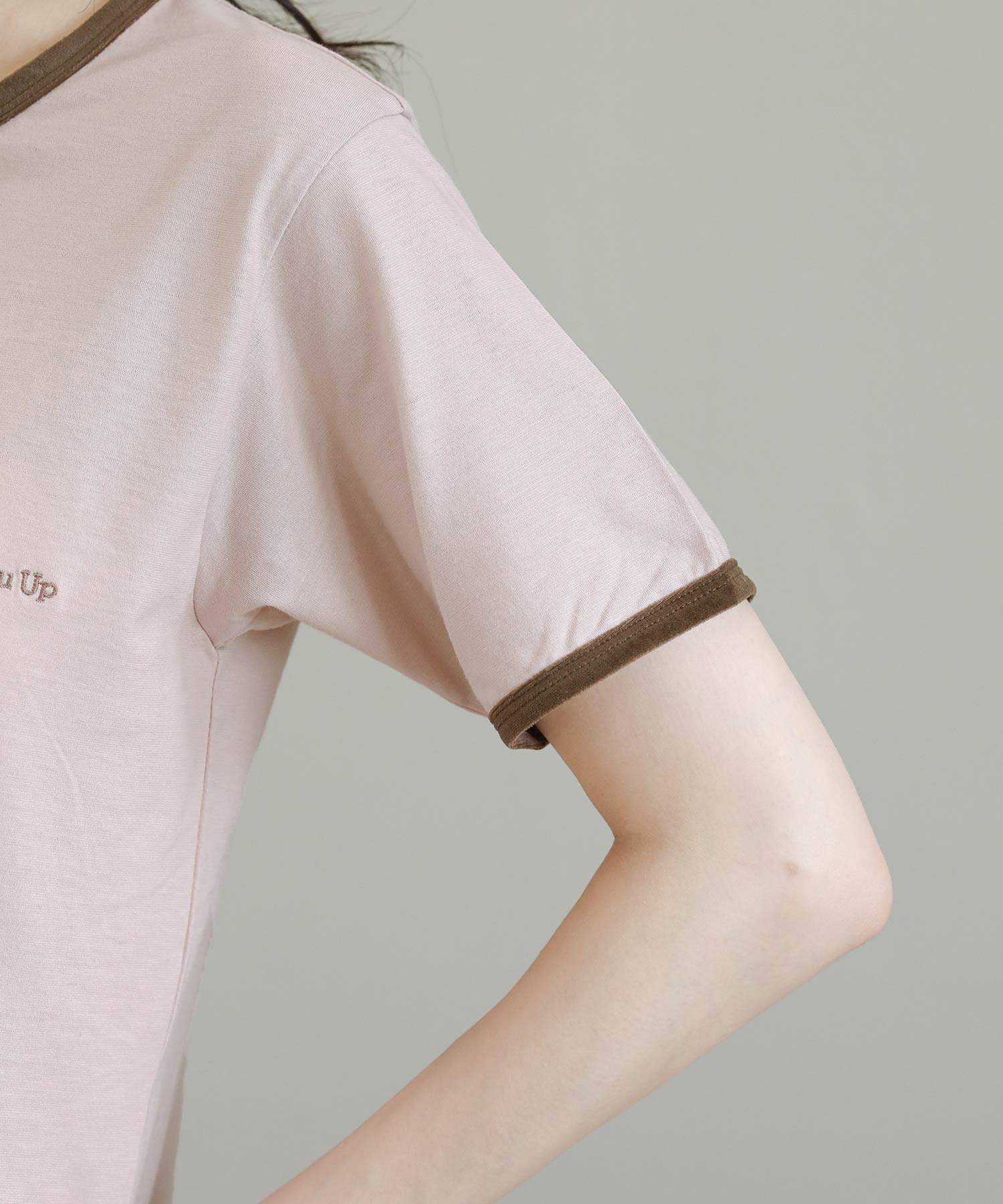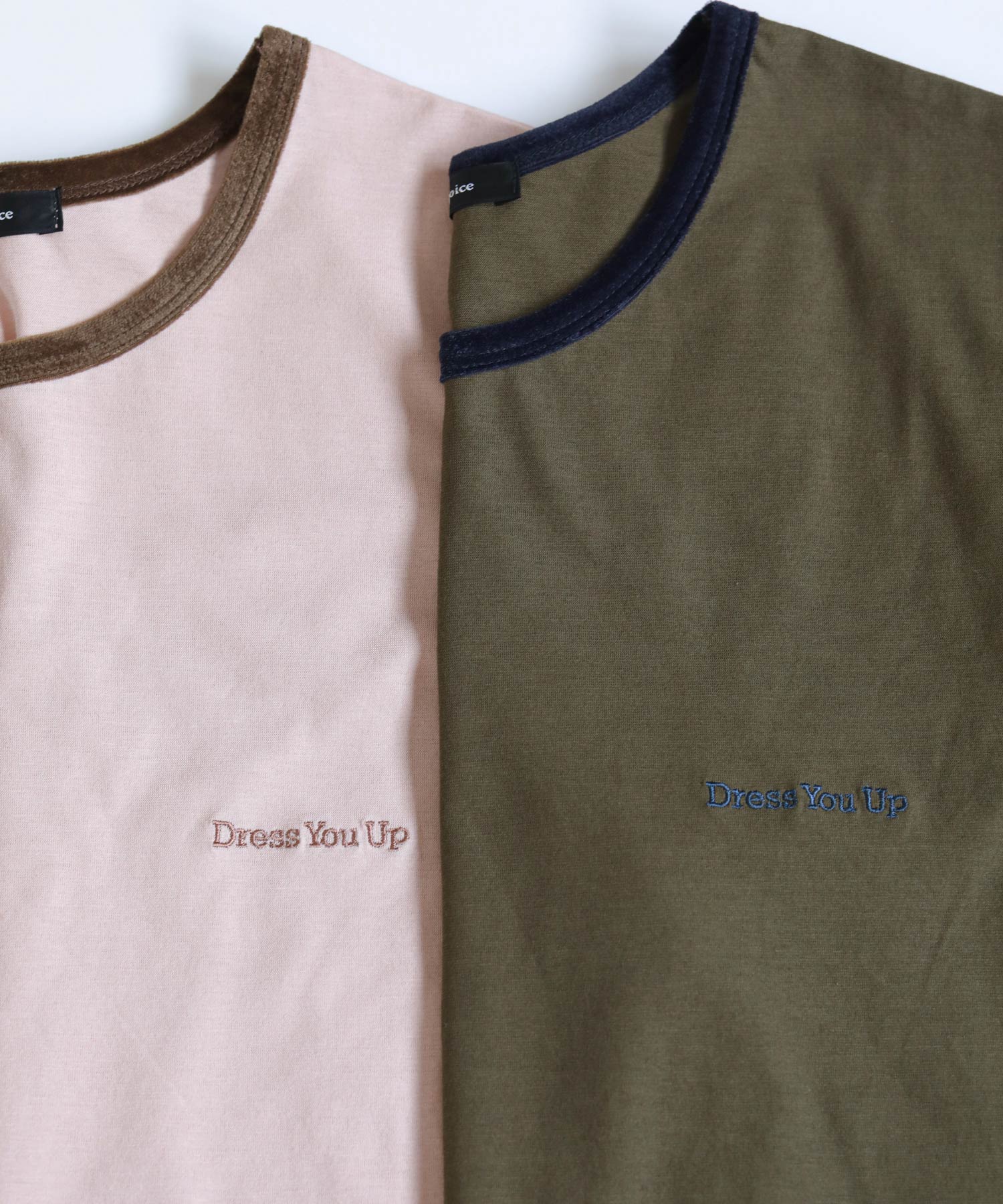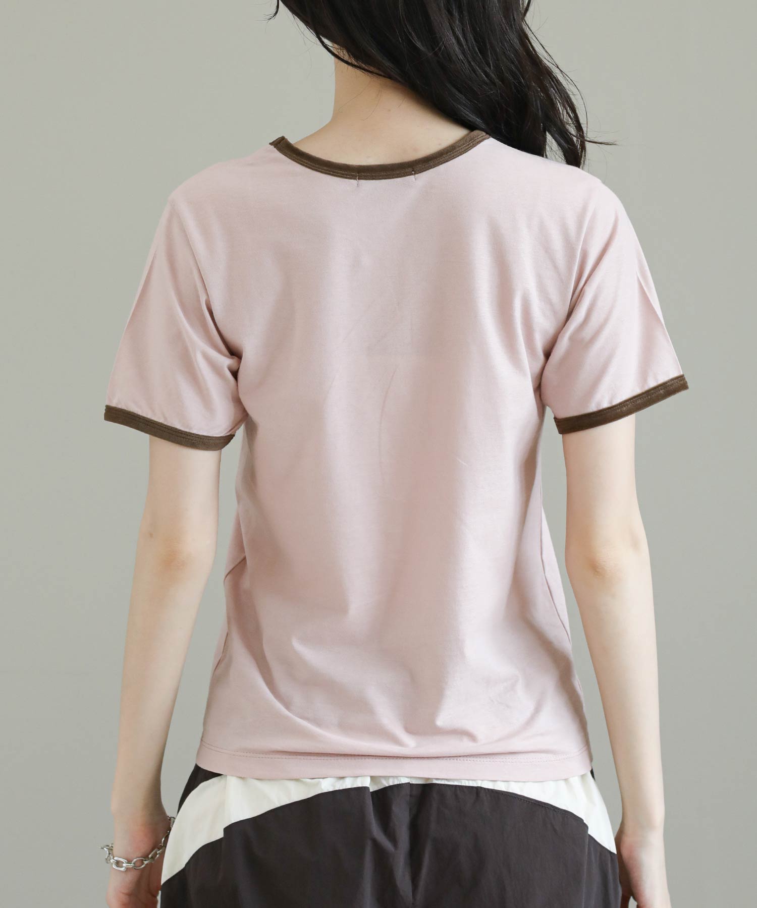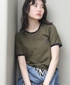 ベロアのパイピングがポイントのリンガーデザインのTシャツ。