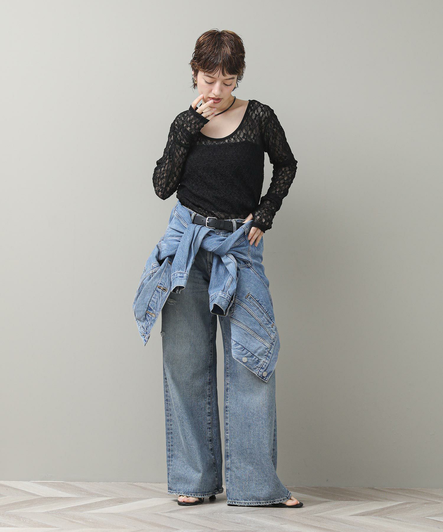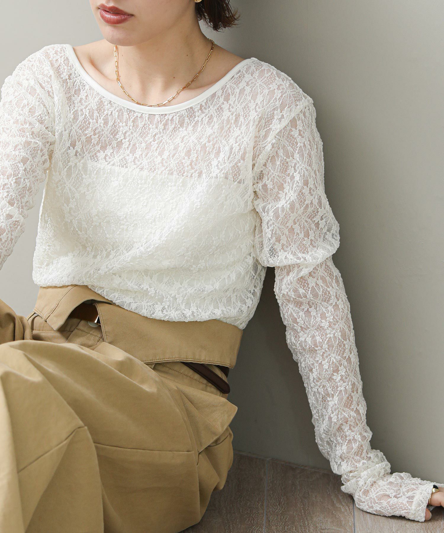 エレガントな雰囲気とは相反してしっかりとしたストレッチがあり、着心地抜群です。程よいシアー感でスタイルに奥行きを与えてくれるアイテム。ニットやシャツの下からレースの袖を覗かせてくしゅっとさせるスタイリングもおすすめです。 一枚で着てもレイヤードのインナーとしても着用でき、長く愛用していただけます。