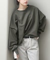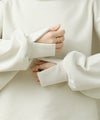 袖と裾でネックのレイヤード風のカットオフデザインが目を惹きます。たっぷりとしたオーバーシルエットですが、着丈を短めに設定しているのでワイドパンツやスカートとも好相性。