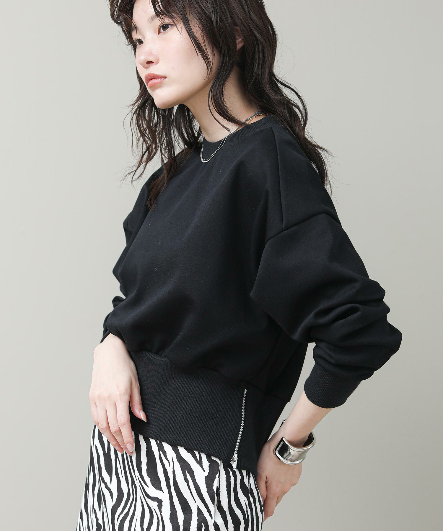 裾のジップがアクセントになったプルオーバー。