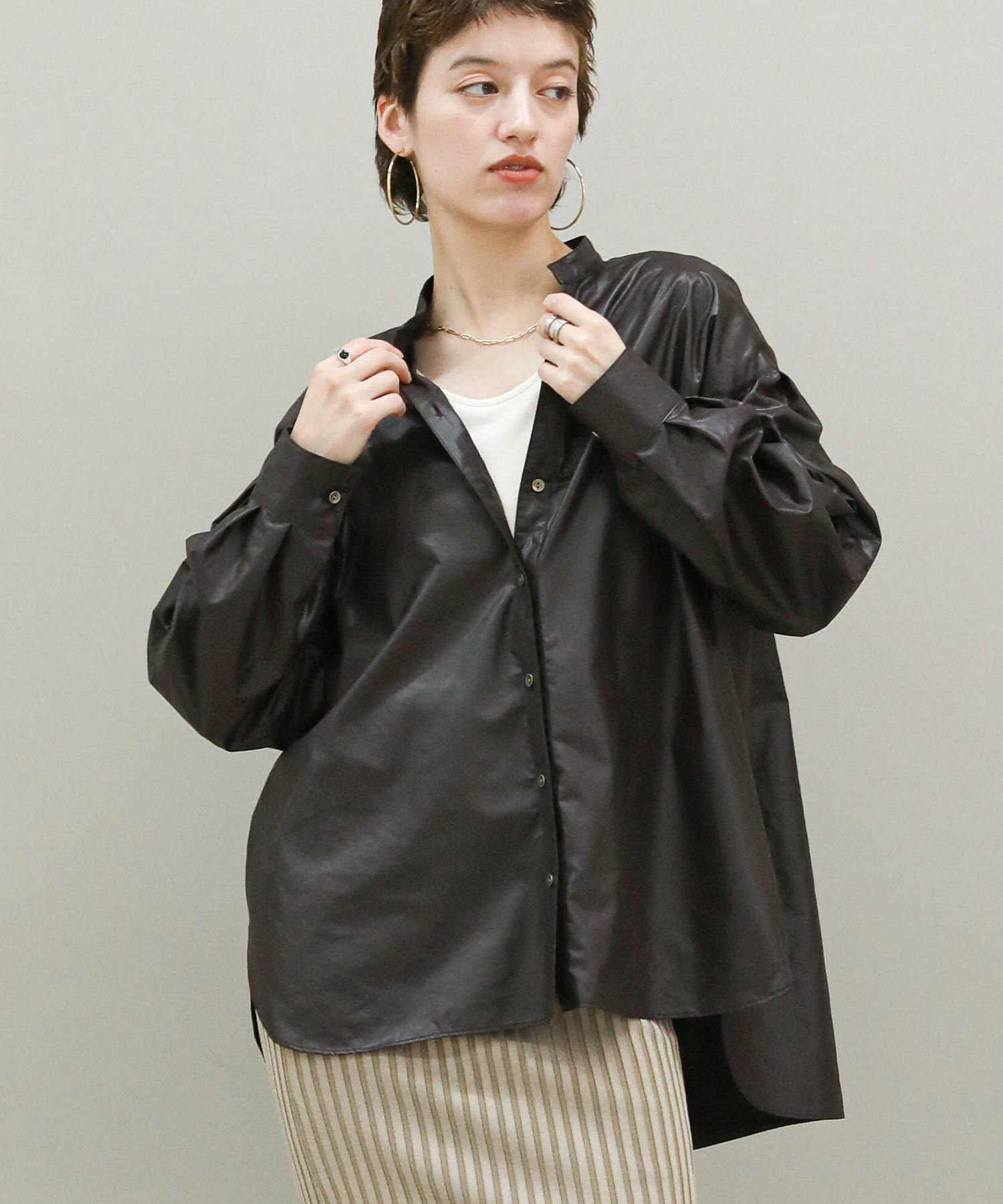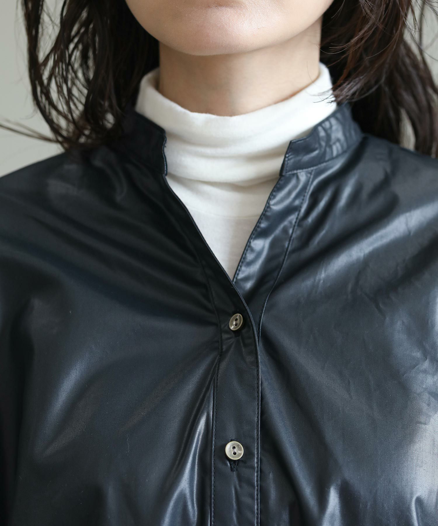 s.レザーライクスキッパーシャツ