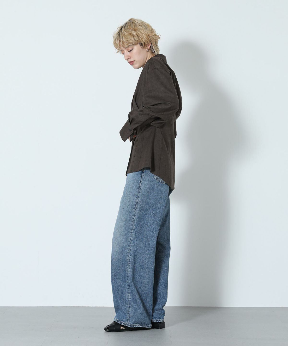 s.リネン混メタル釦シャツ