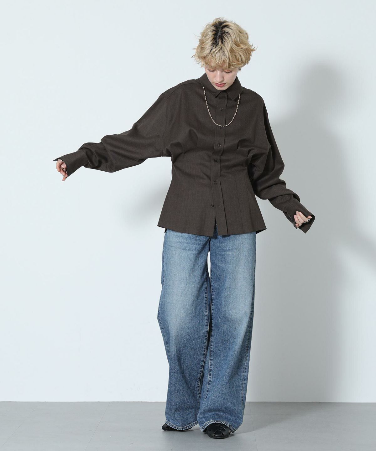 s.ワッシャーサテンシャツ