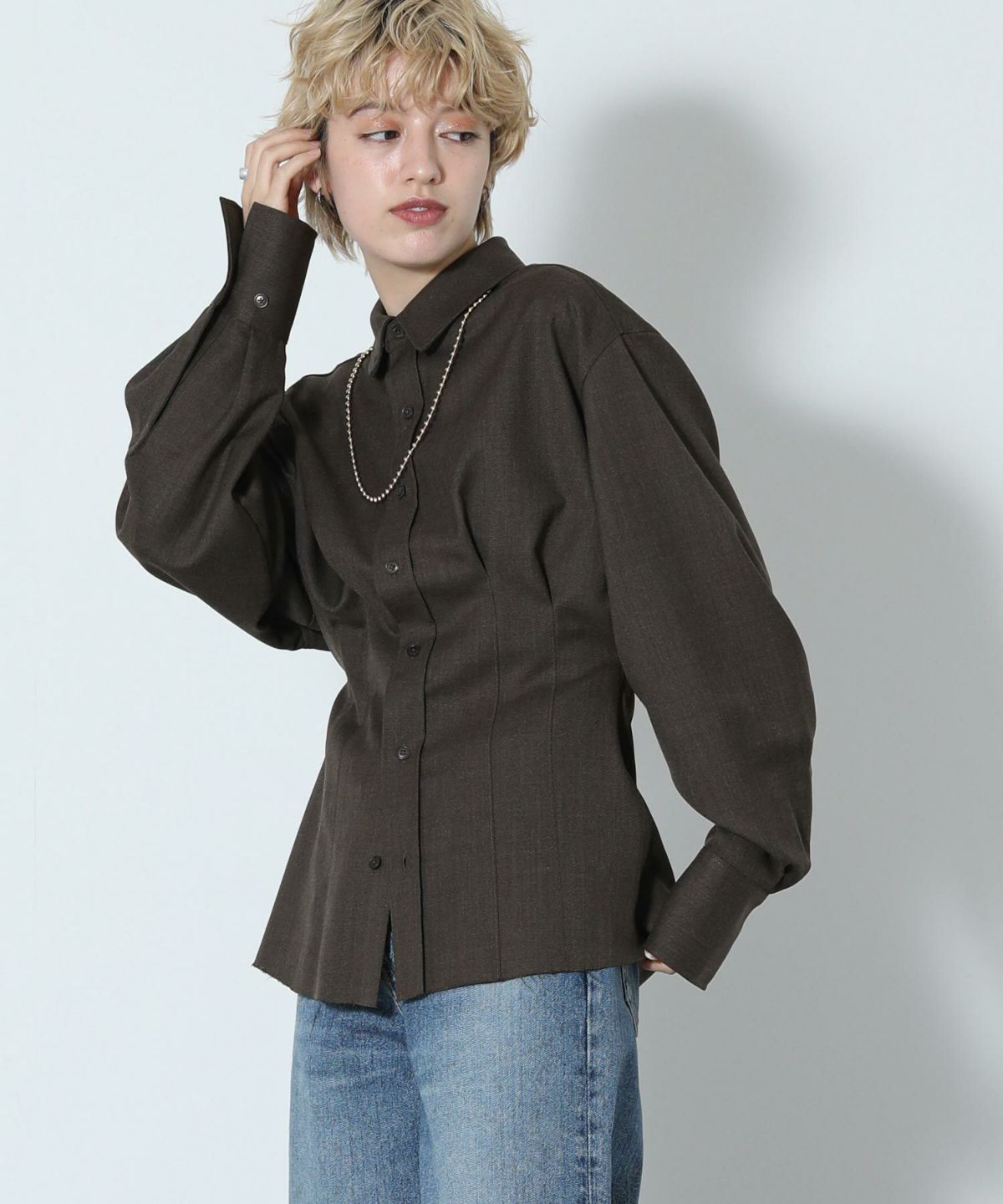 s.袖ギャザー切替ブラウス