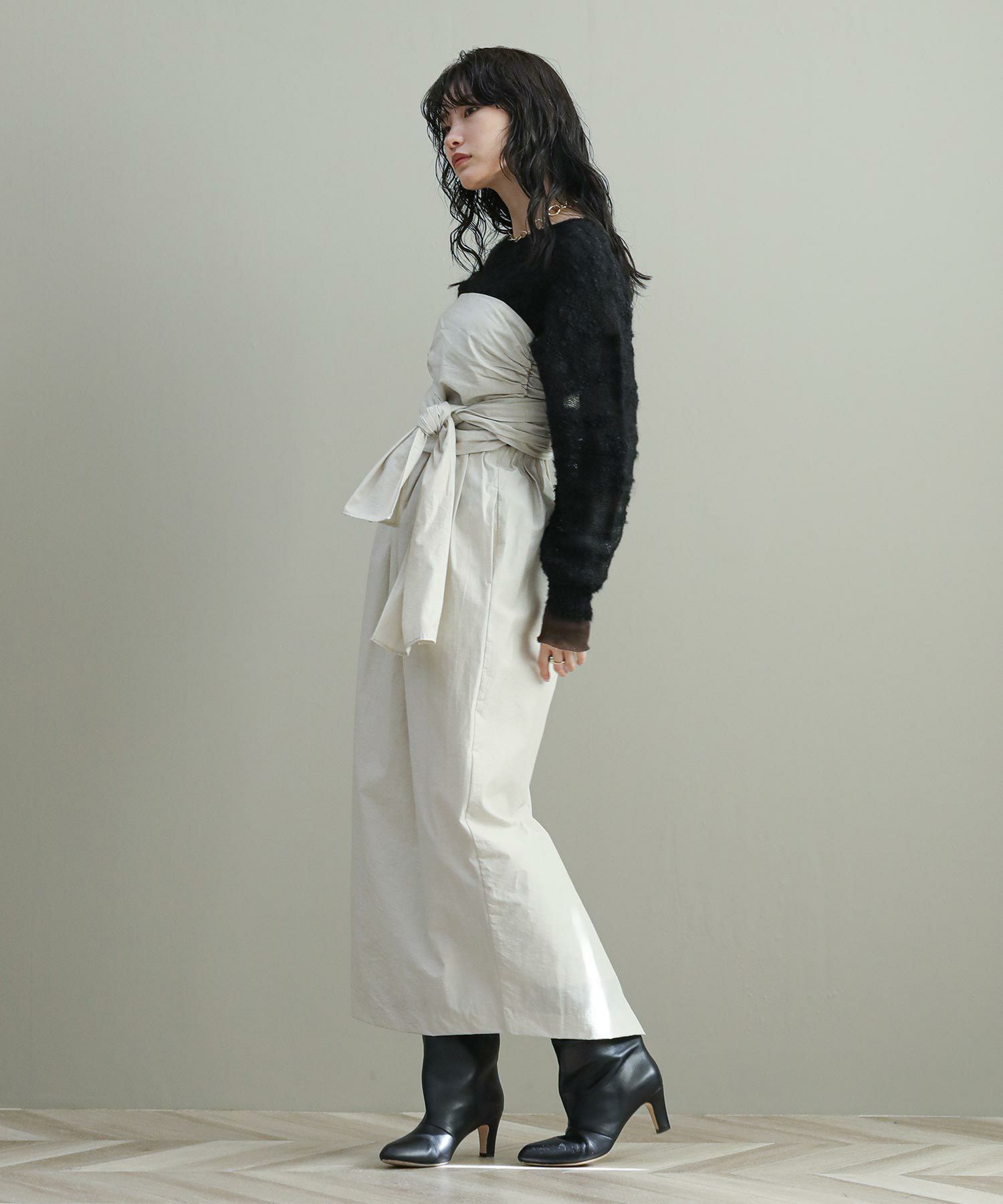 ビスチェ単体でも使えるので、スタイリングにアクセントをプラスしたいときにもおすすめ。
