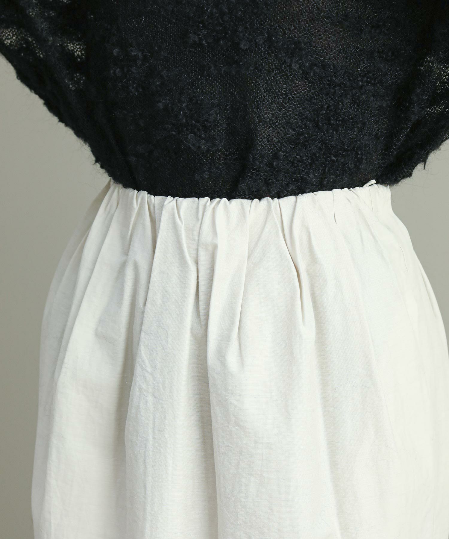 ビスチェは、ウエストに巻きつけてもスタイリング可能。スカートのウエスト部分にボタンが付いているのでズレてきてしまうこともなく安心。