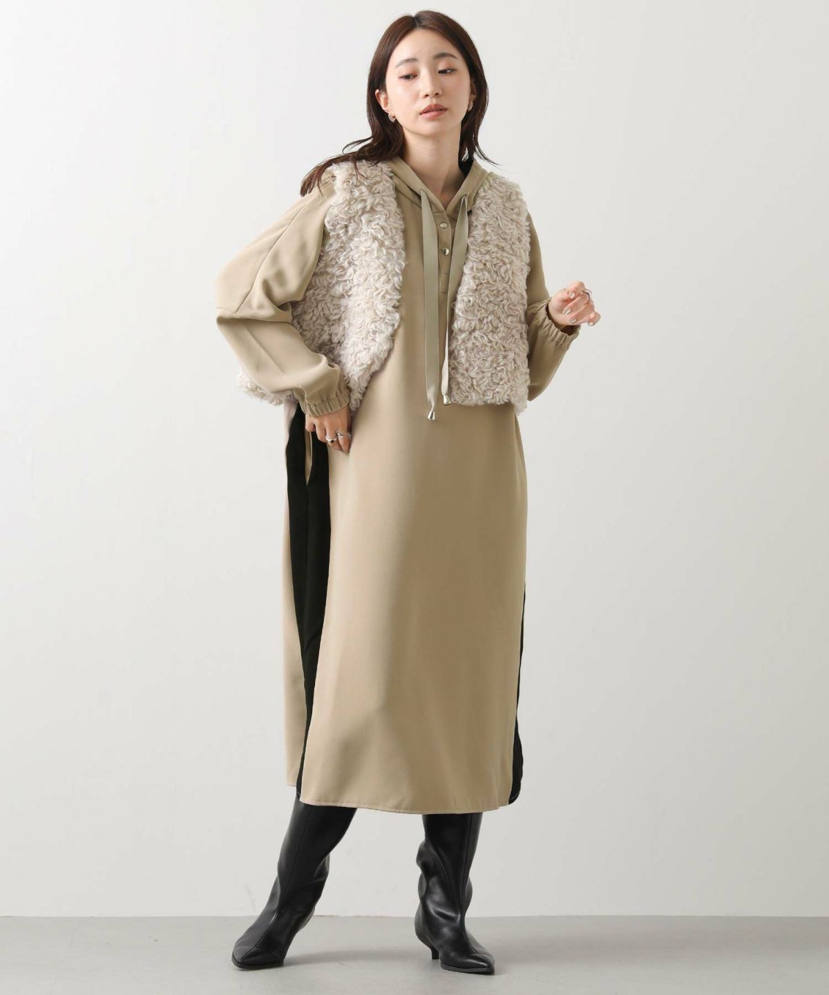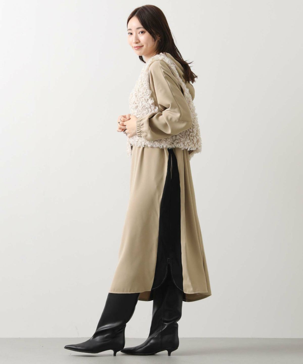 起毛畦ドッキングチュニック