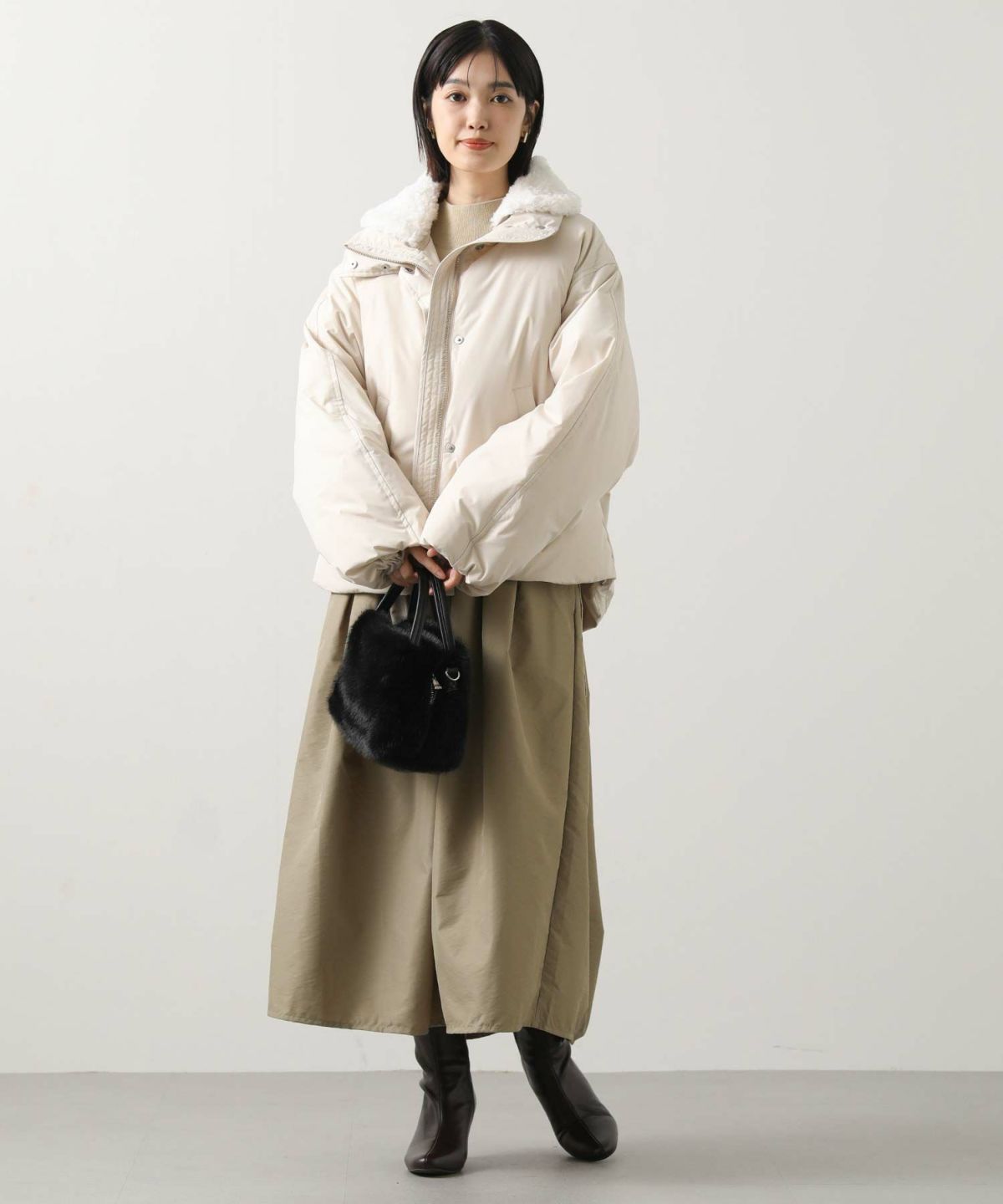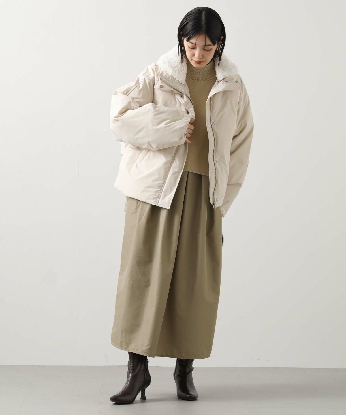 ボア衿ダウンバルーンスリーブコート