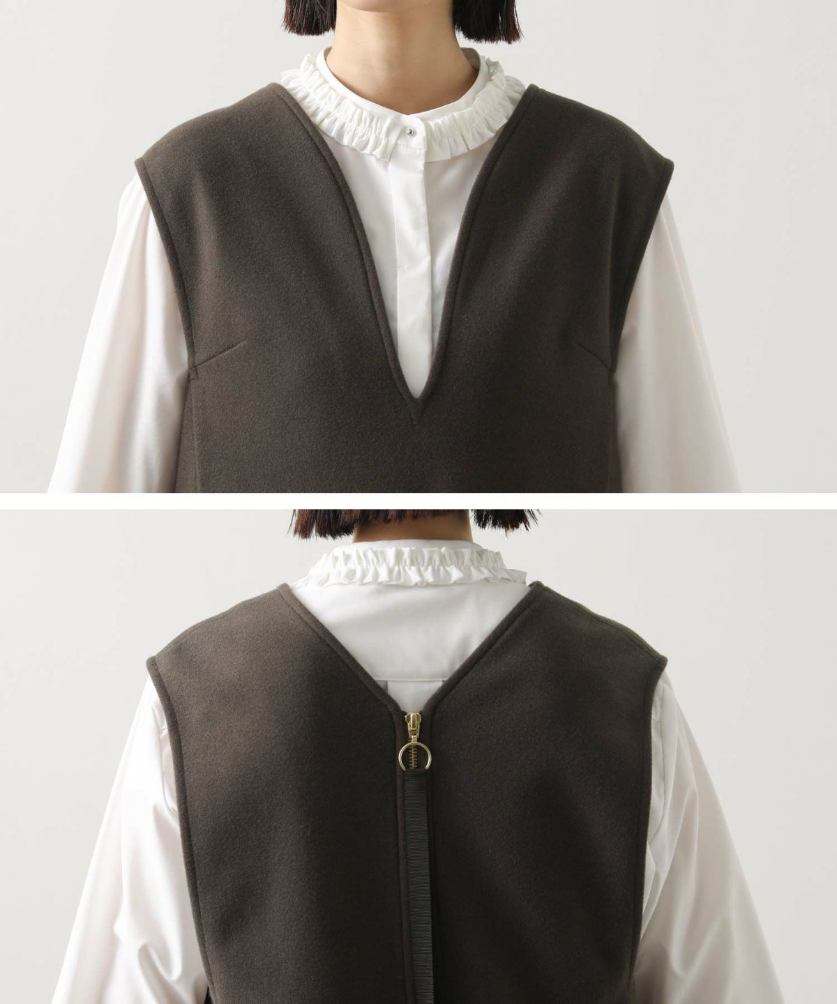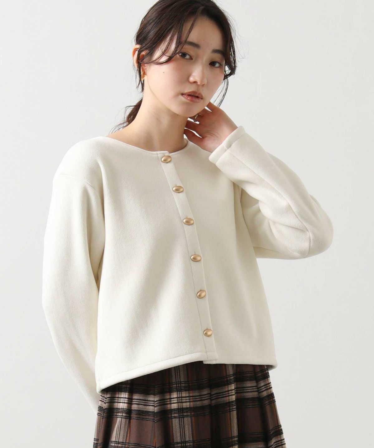 2wayシャギー楕円金釦トップス