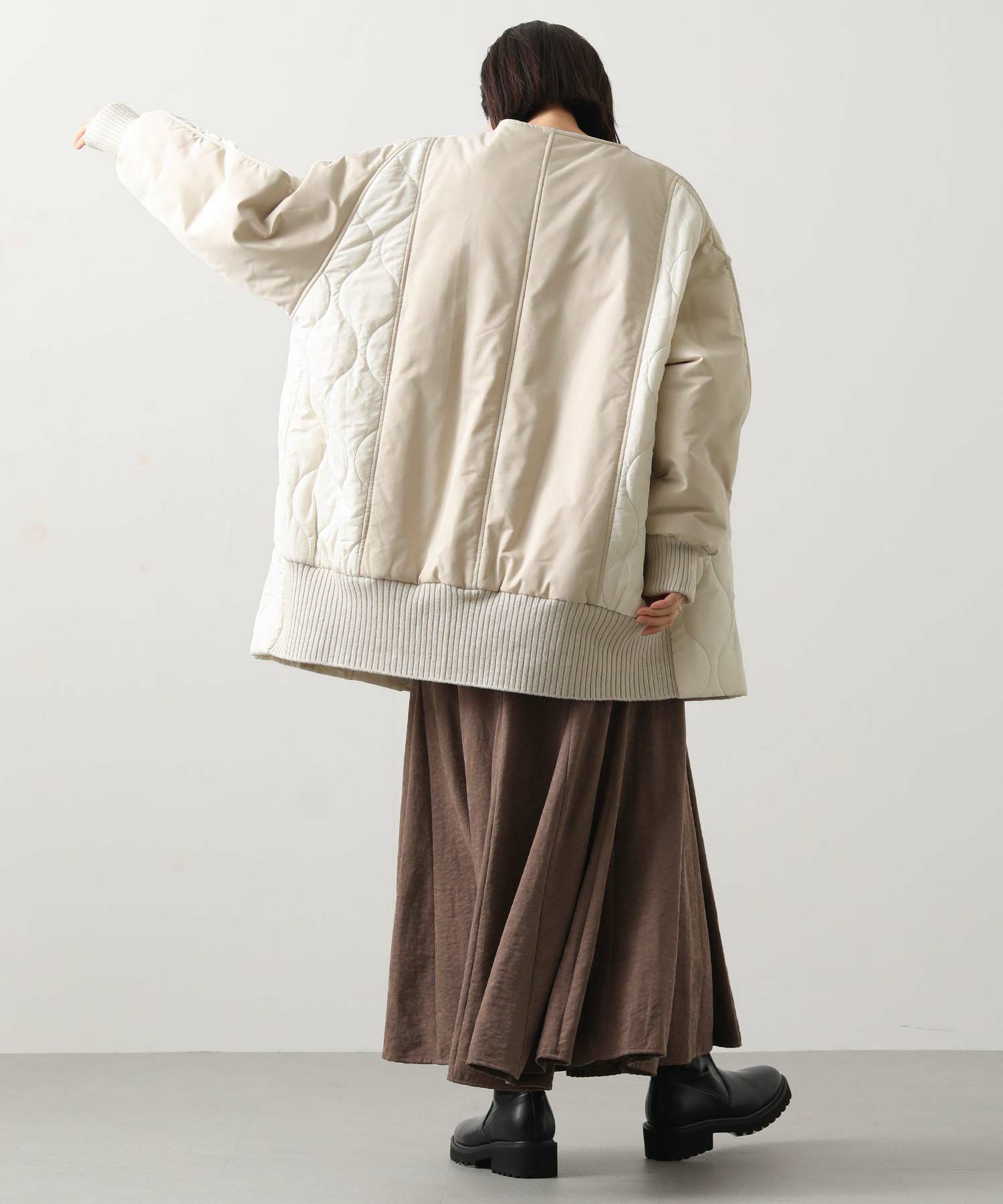 サイドのキルティングの切り替えがポイントの中綿コート。