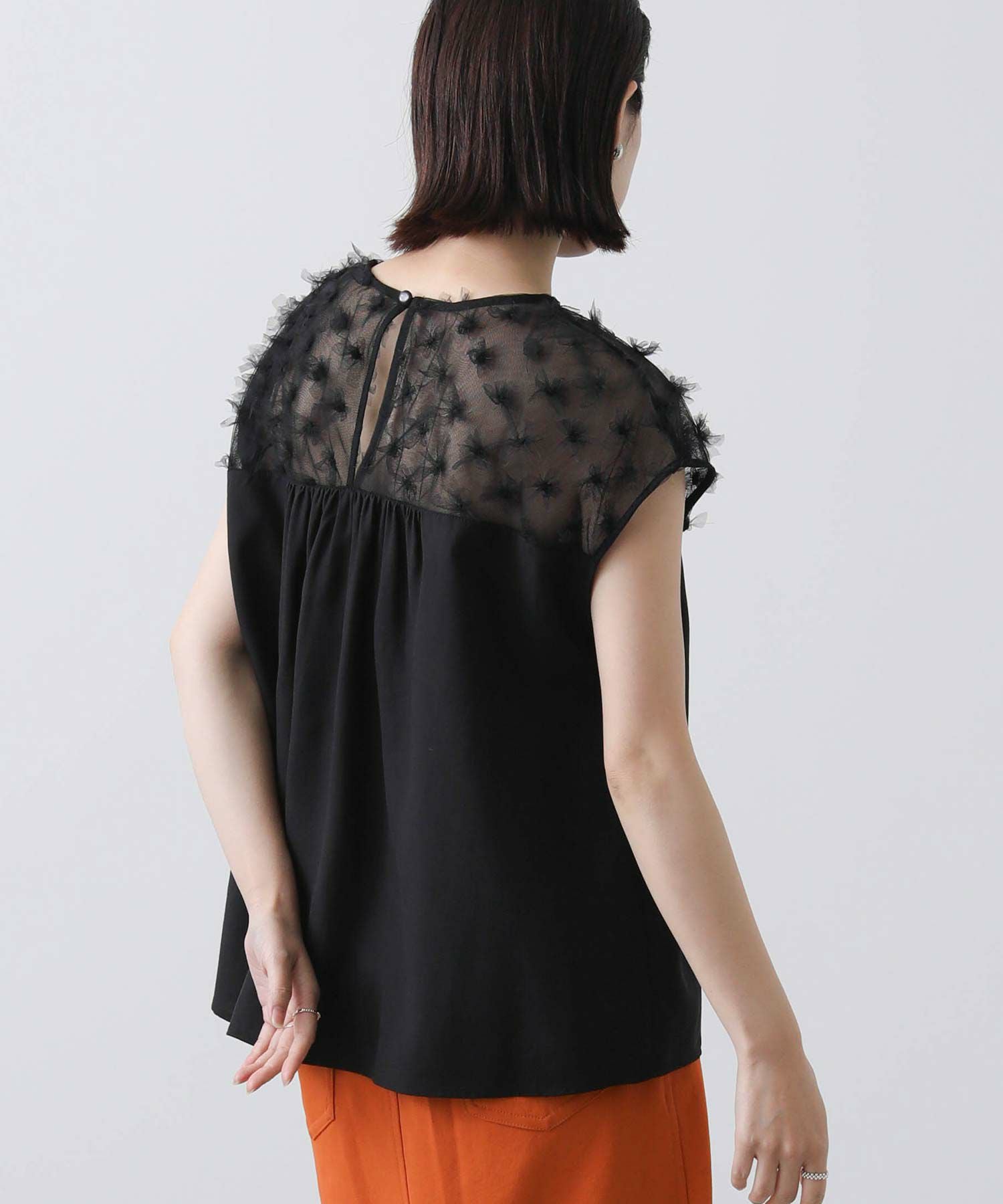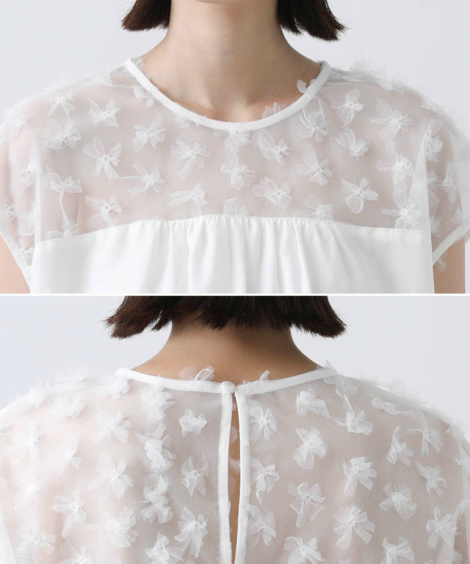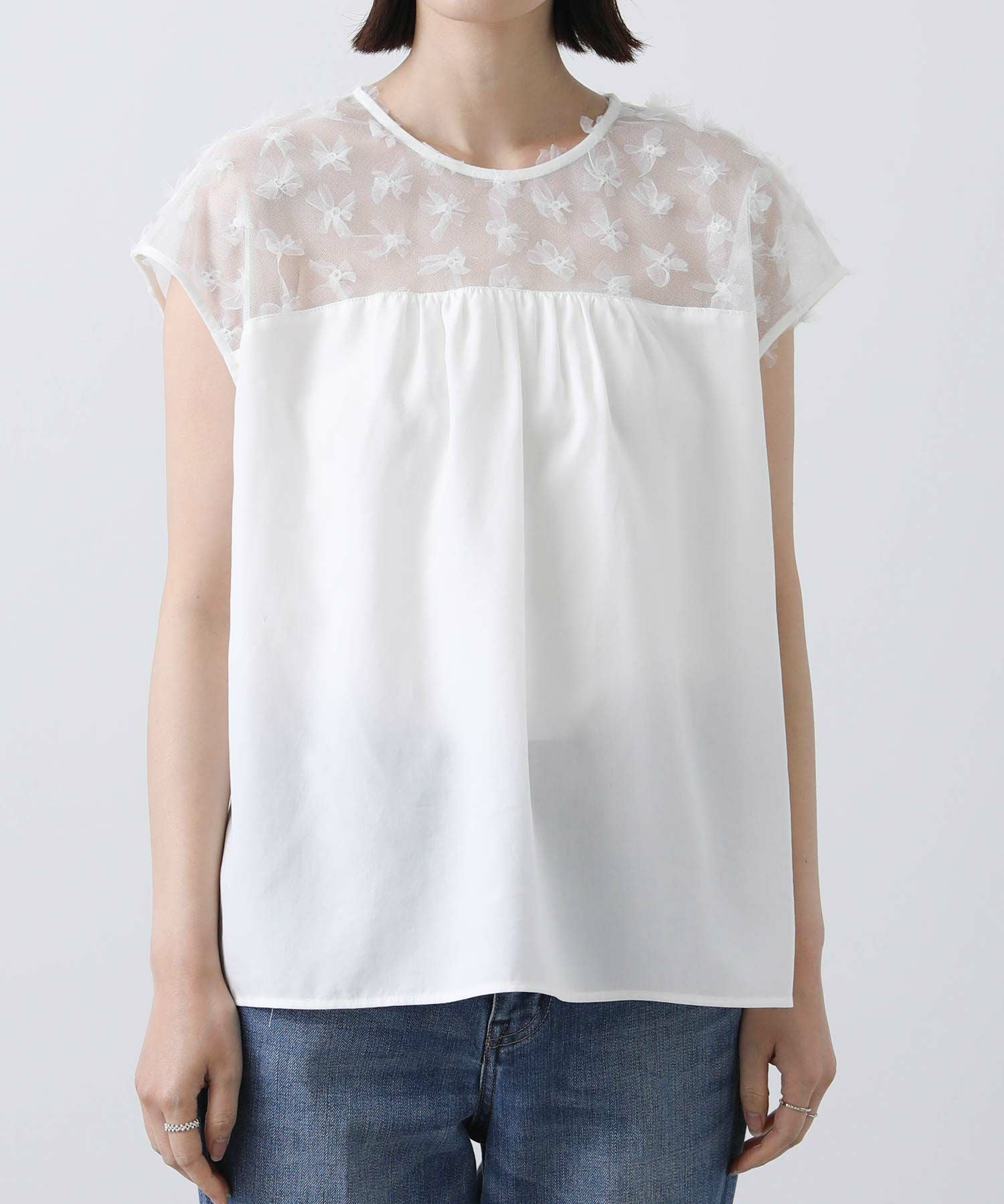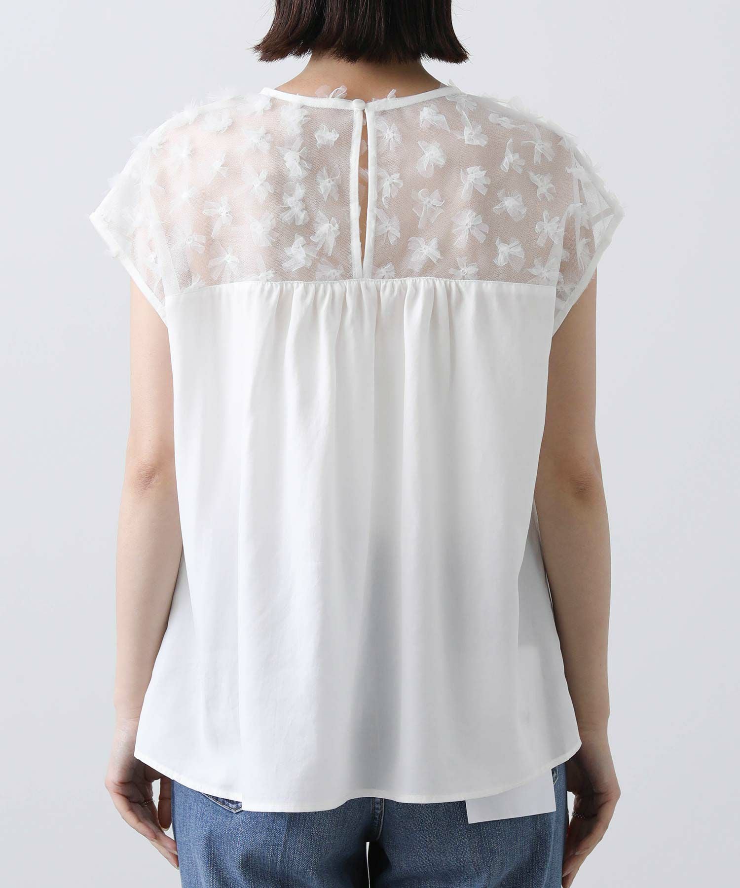 花柄チュールヨークブラウス