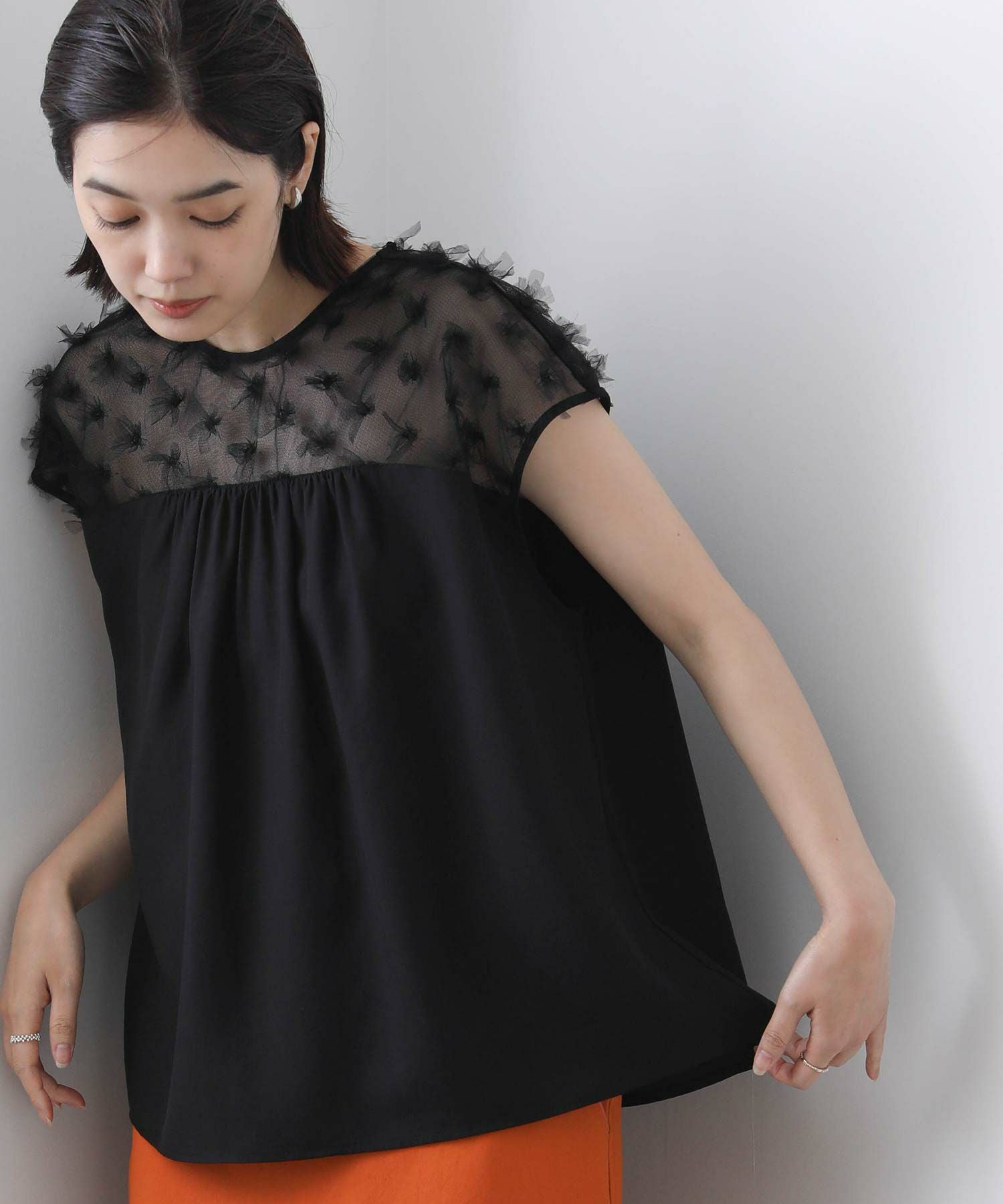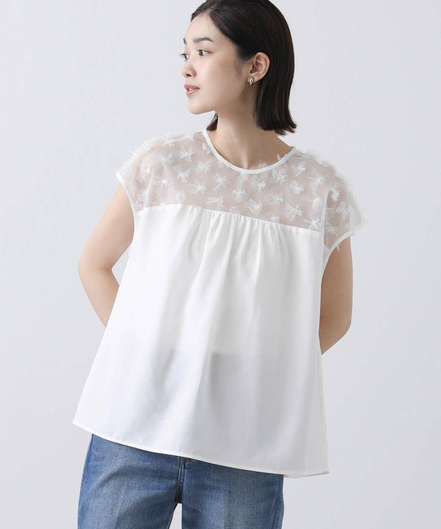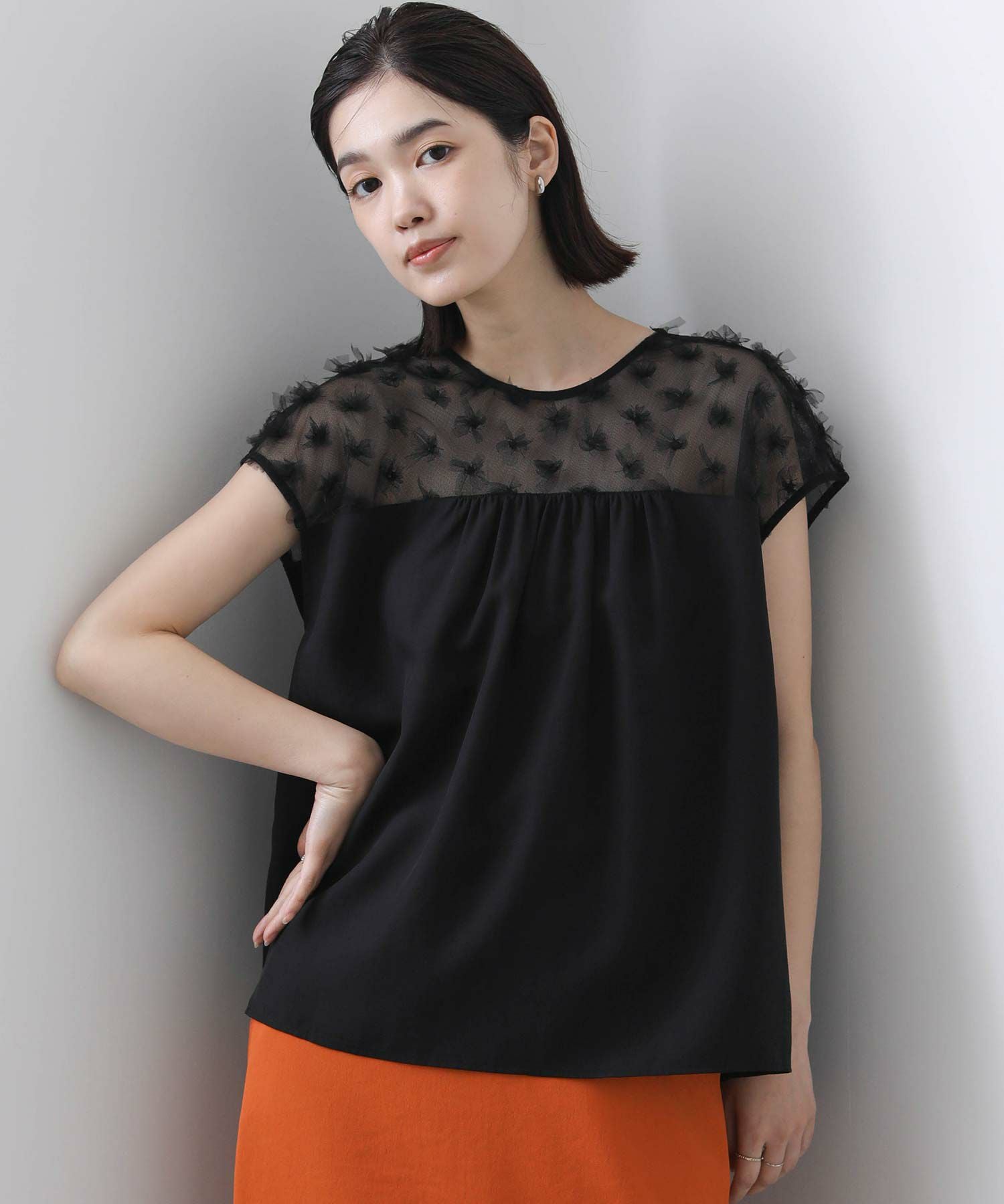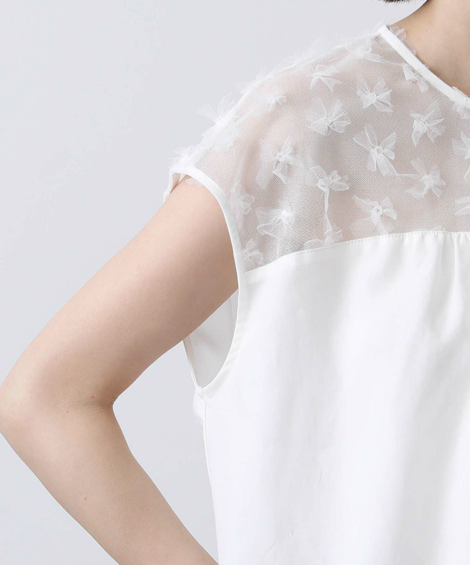 花柄チュールヨークブラウス