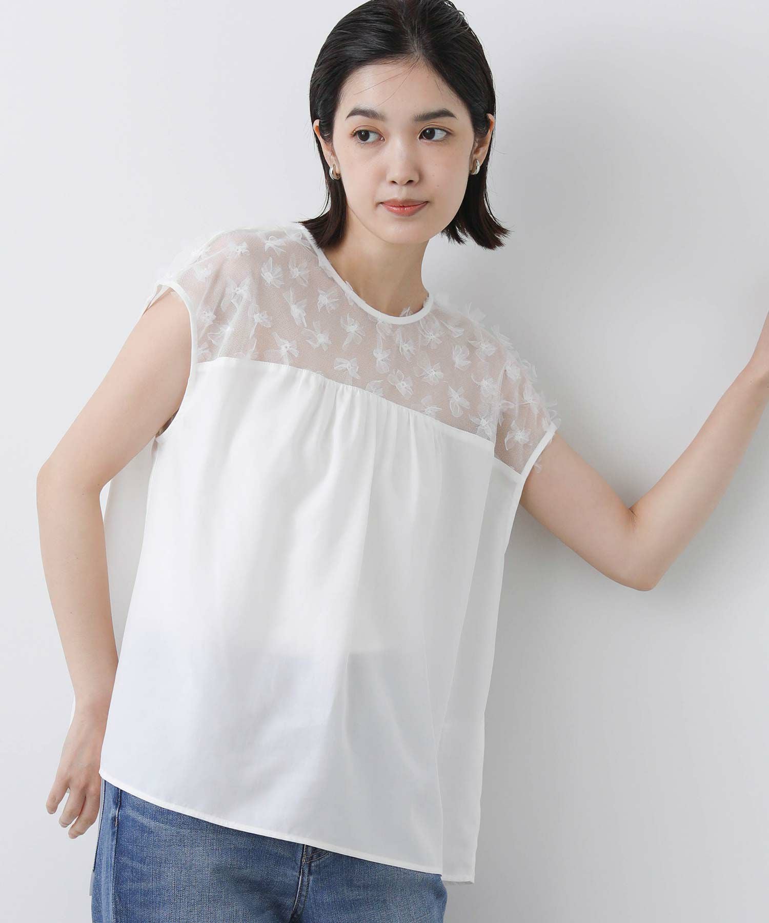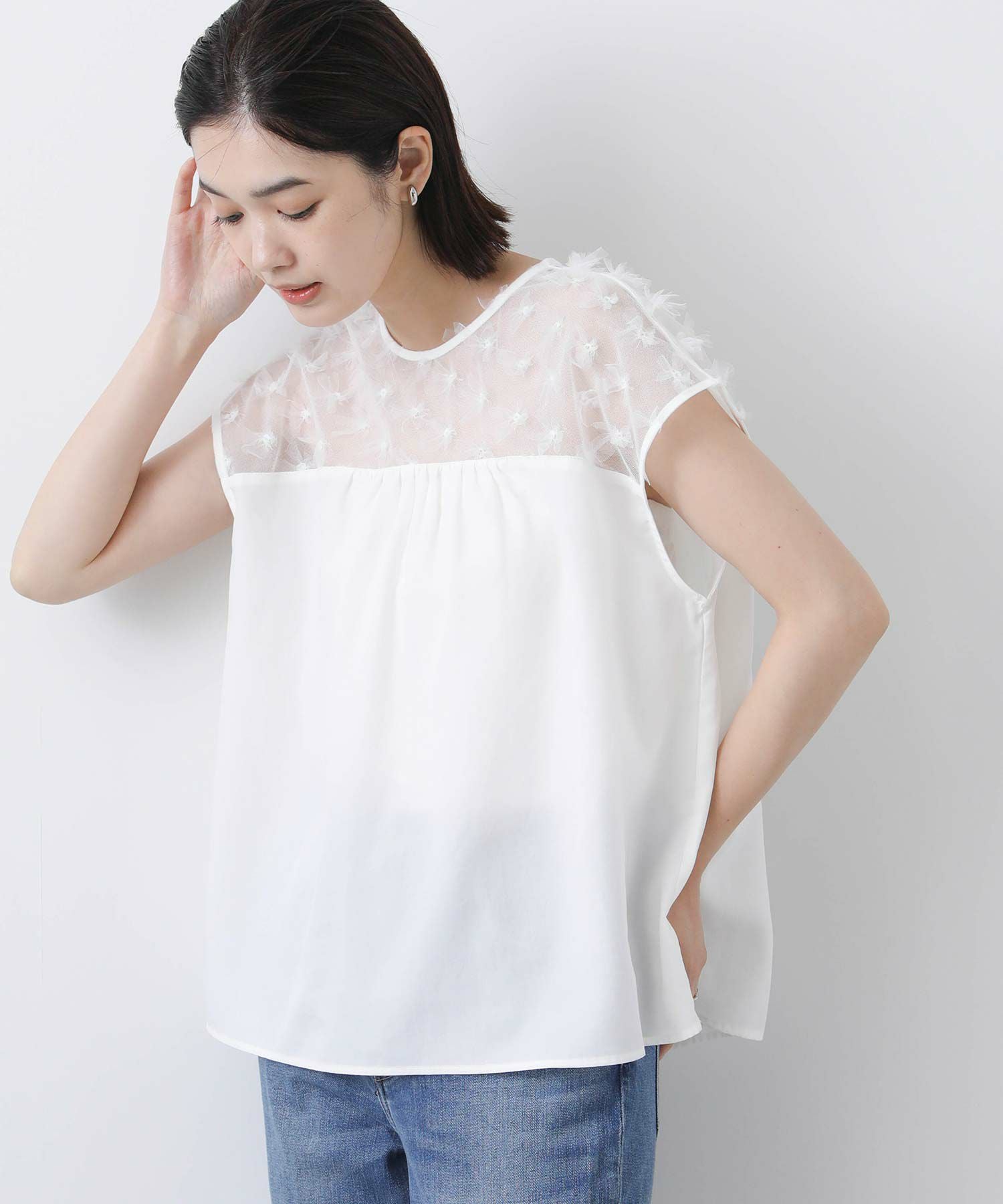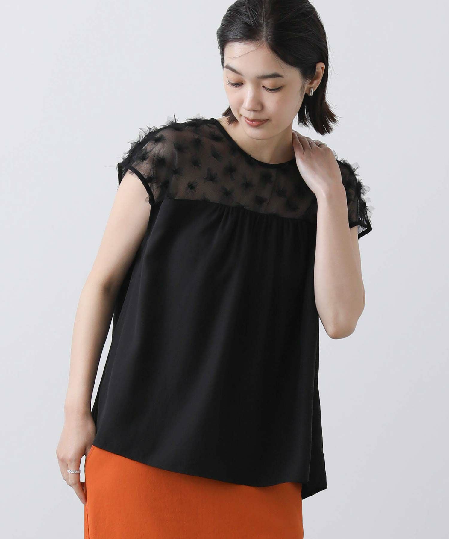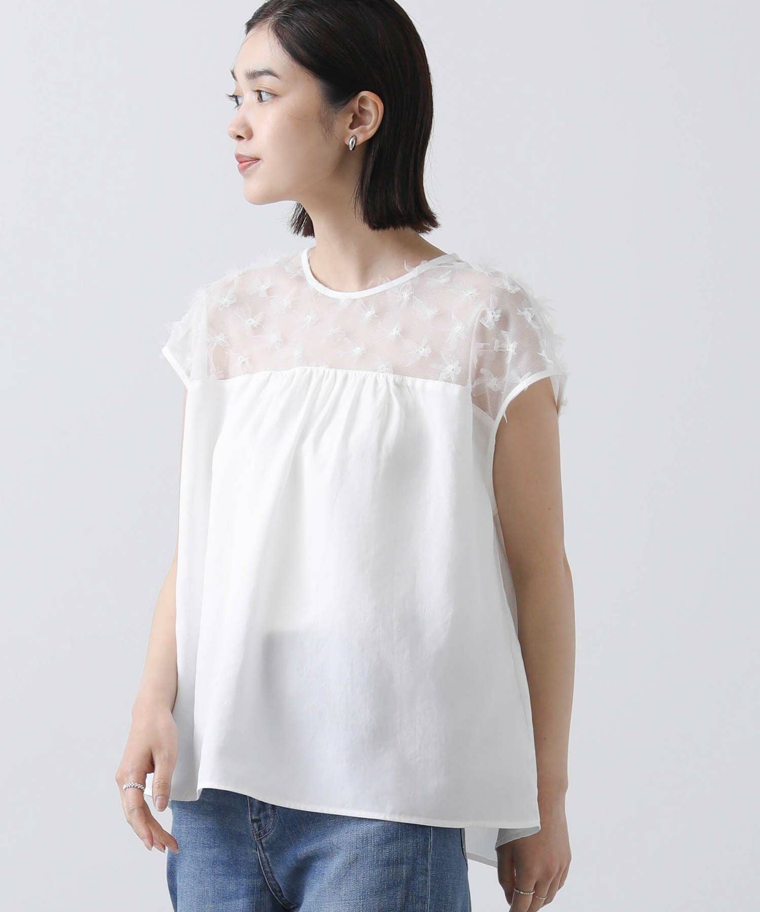 花柄チュールヨークブラウス