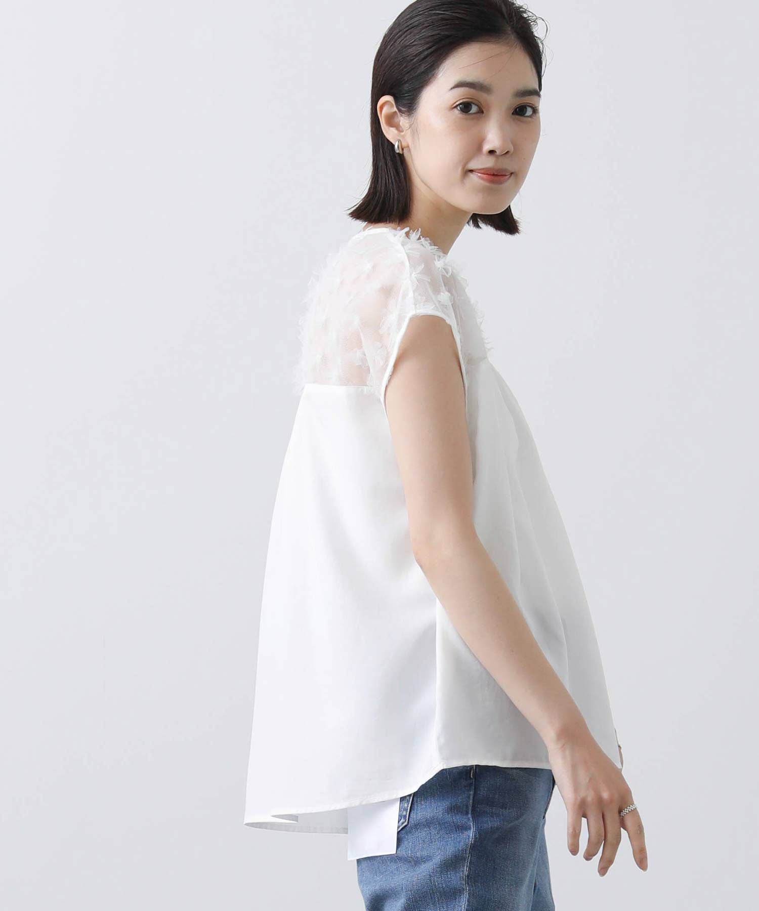 立体的な3D刺繍ヨークがポイントのブラウス。