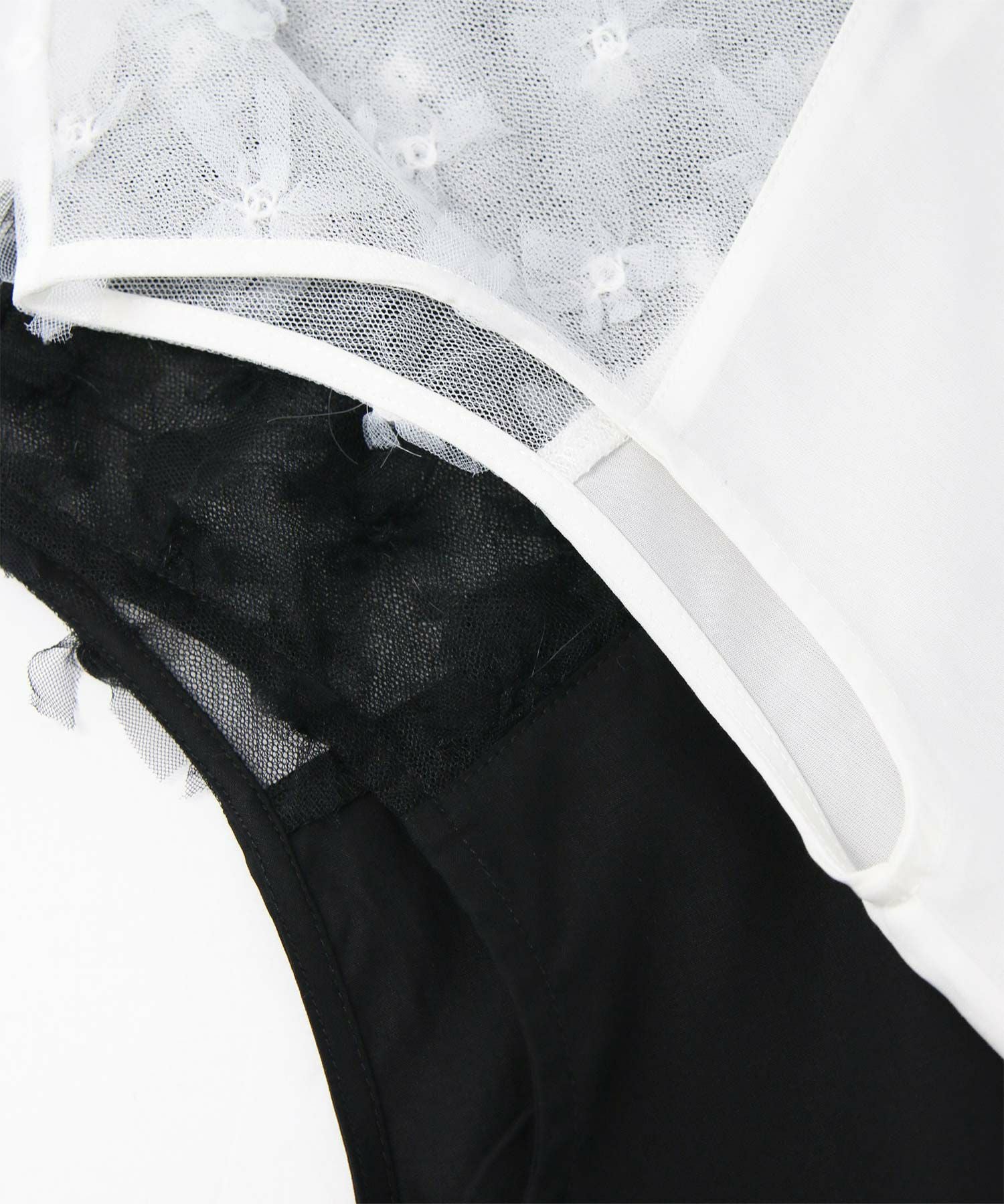 チュール部分は2枚仕立てにし、透け感を軽減させています。