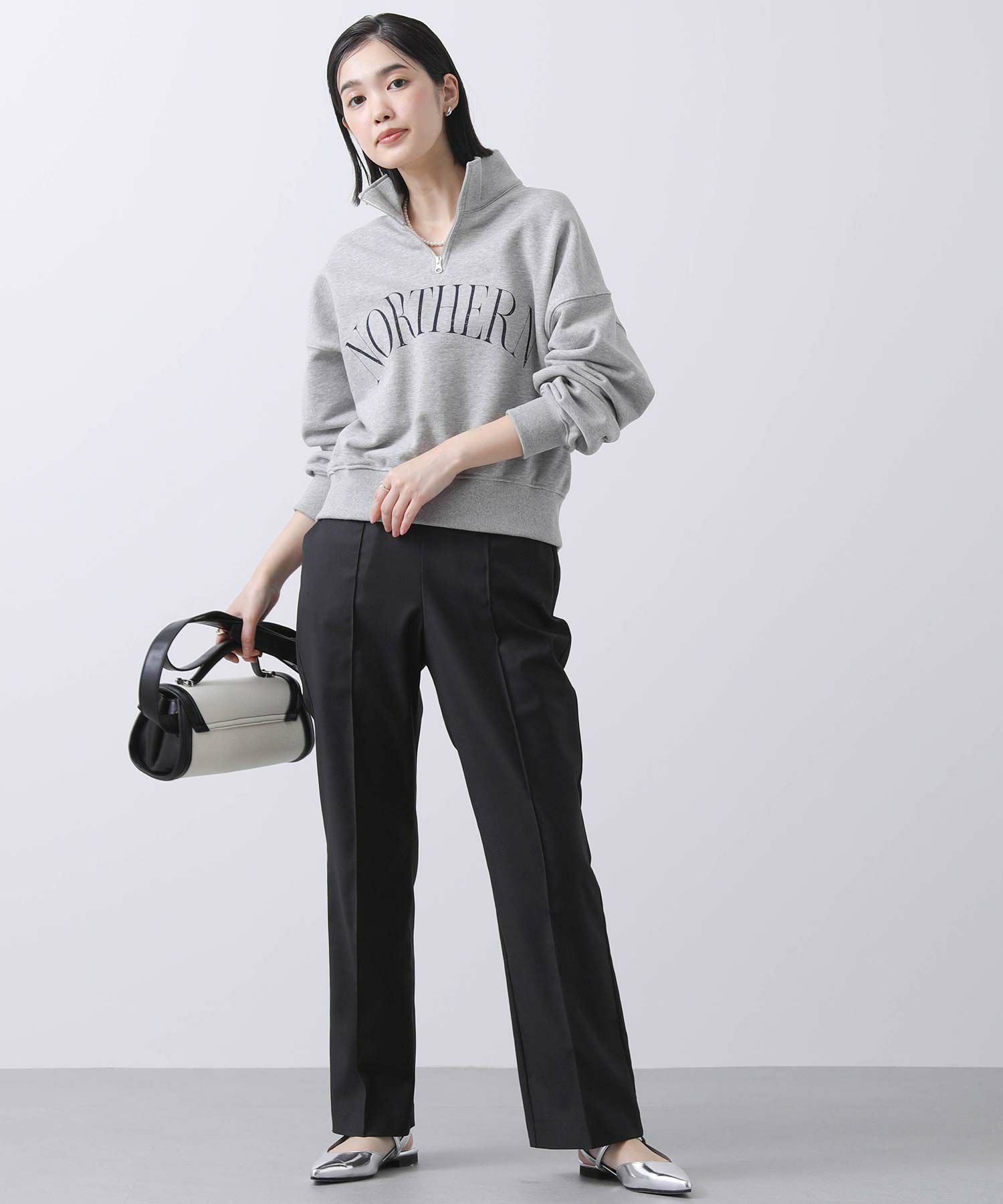 足元はスニーカーからパンプスまで様々なスタイリングとマッチし楽しめる一着。