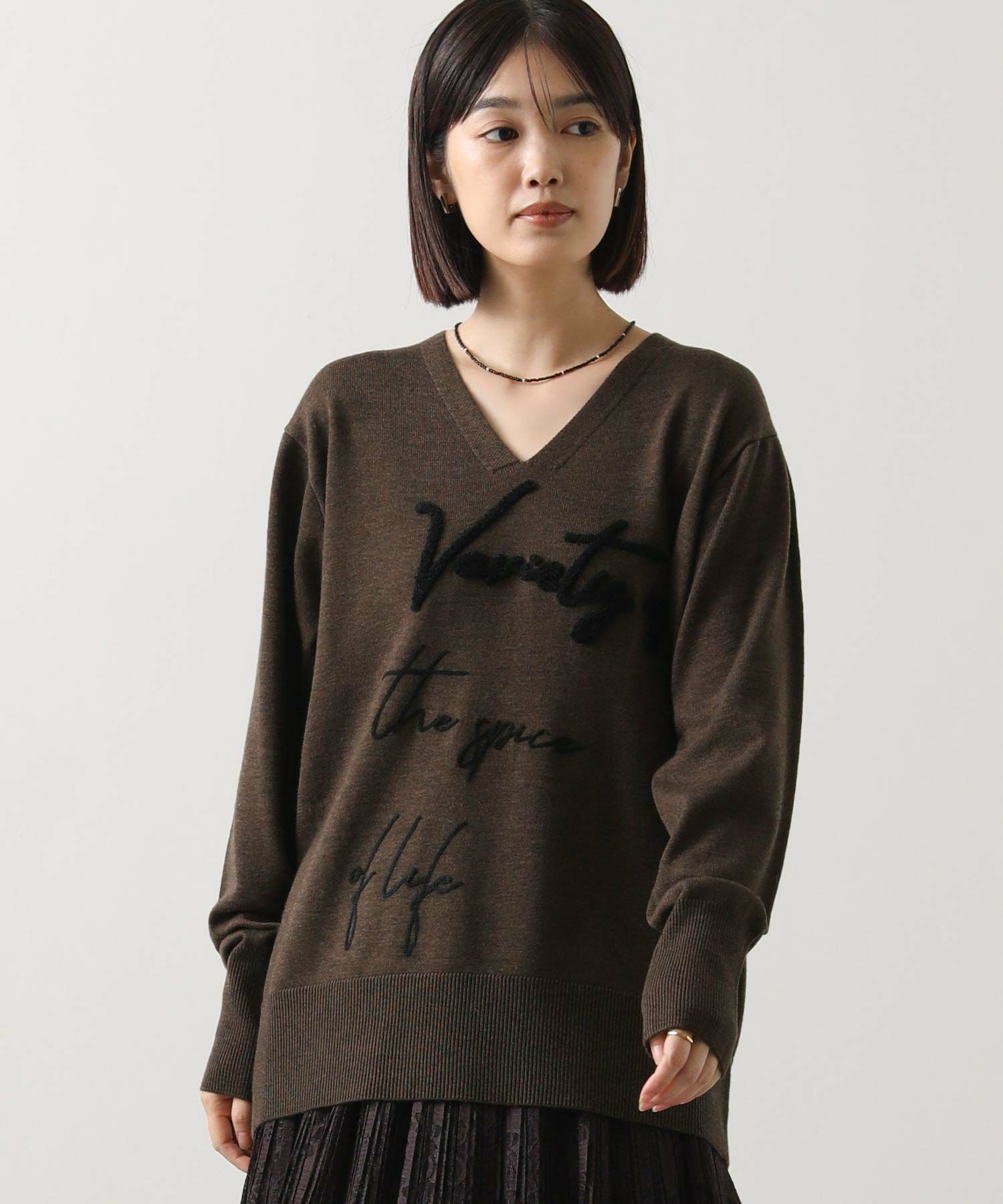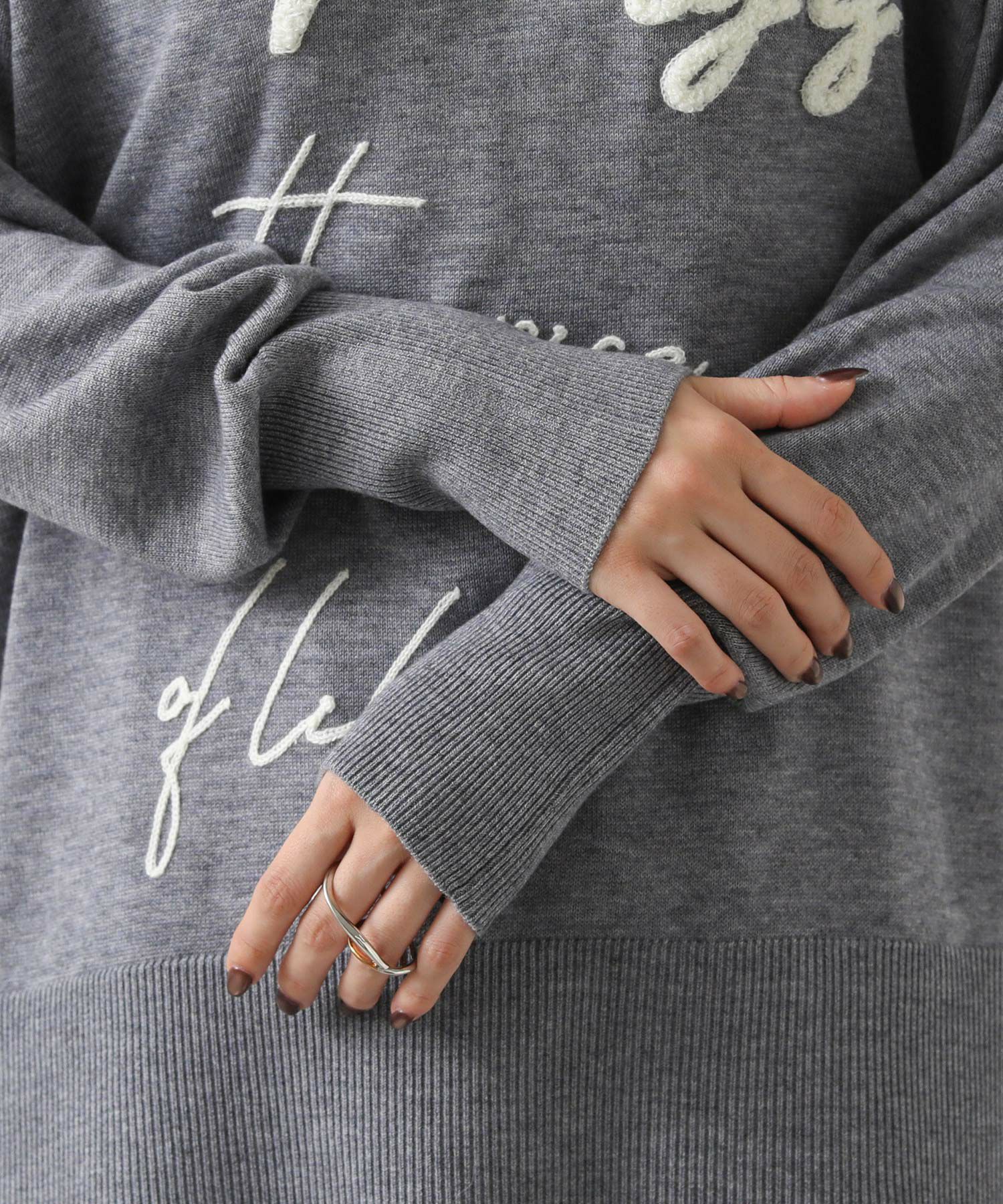 大胆に走る刺繍ロゴがインパクトのあるニットプルオーバー。