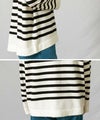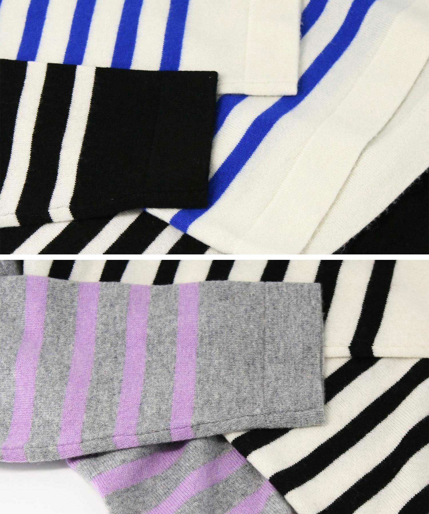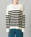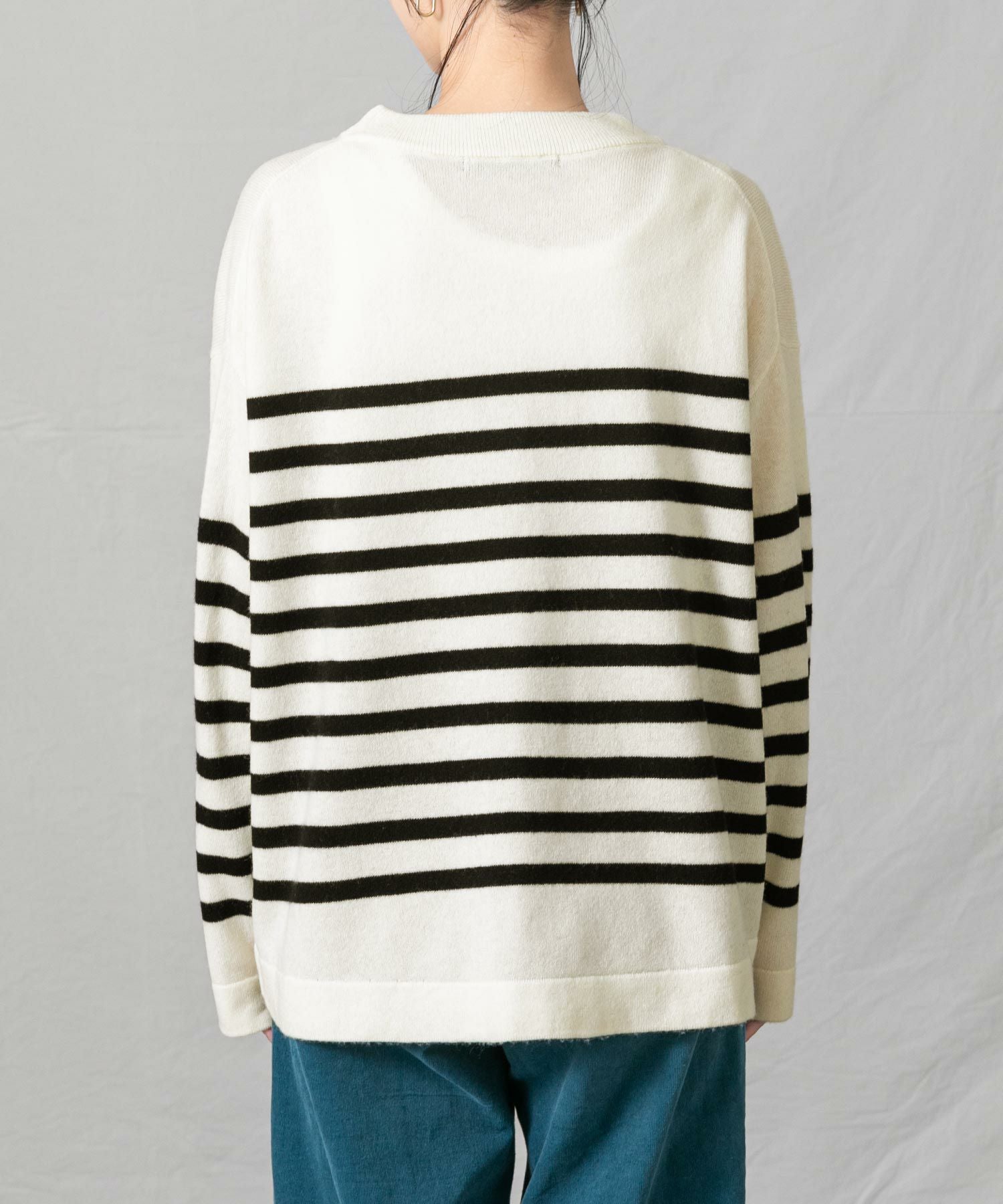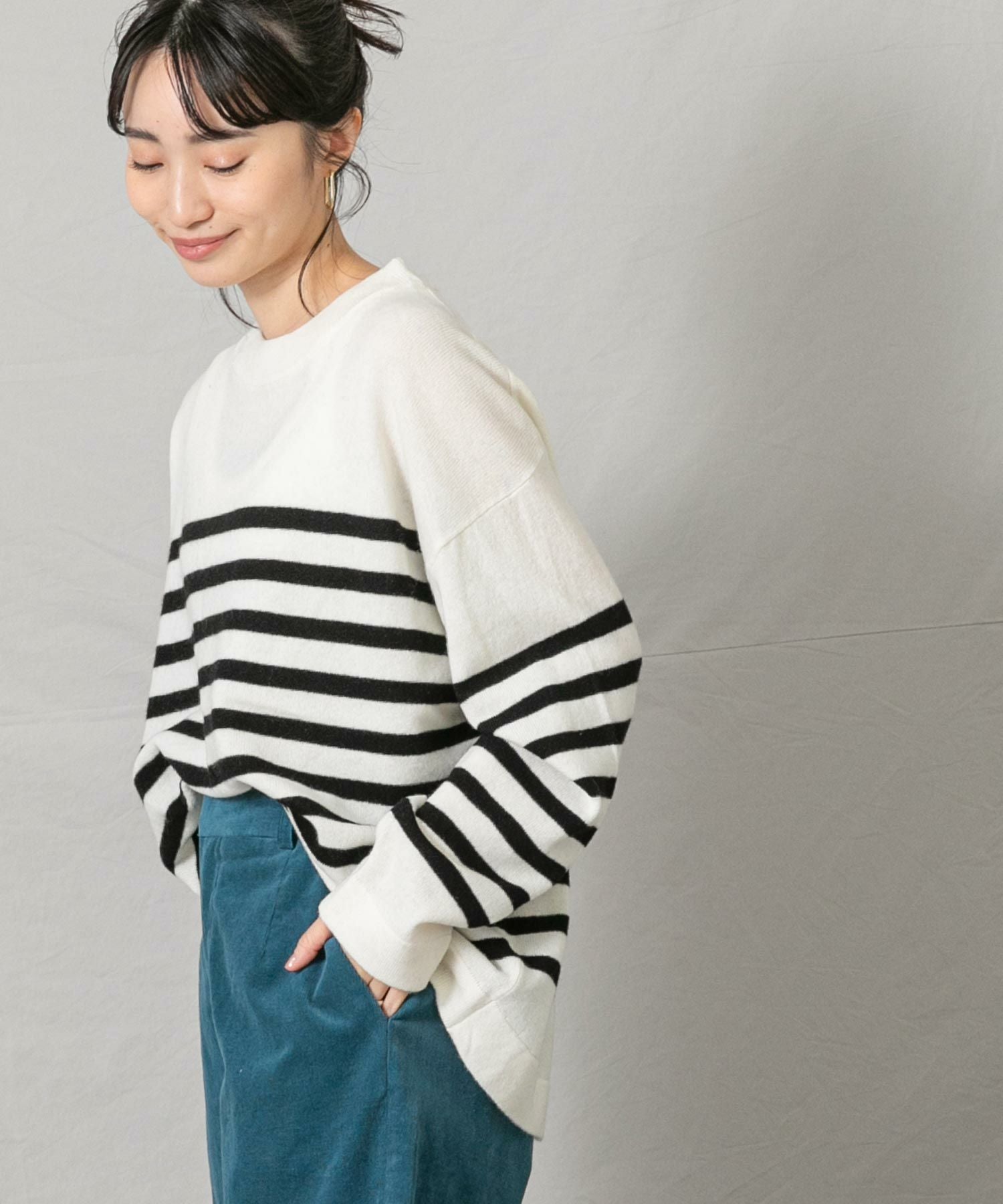 ウール100%の糸をカシミヤのように滑らかで柔らかい肌触りになるよう加工した、上質な素材のボーダーニット。