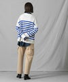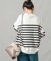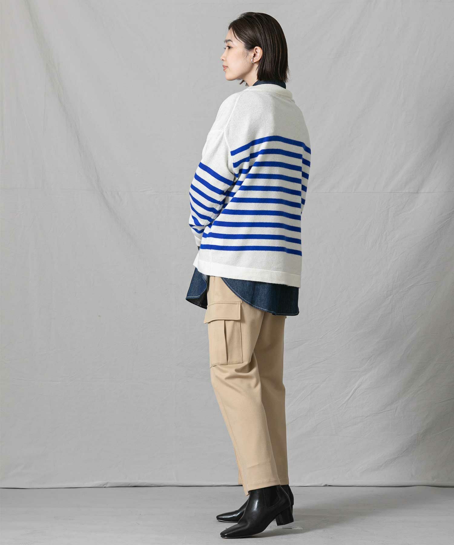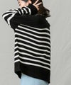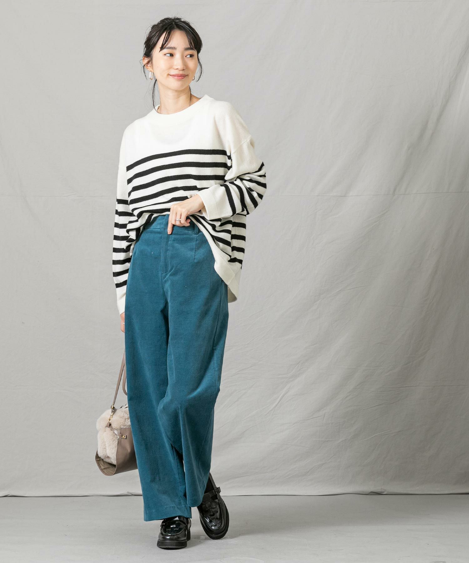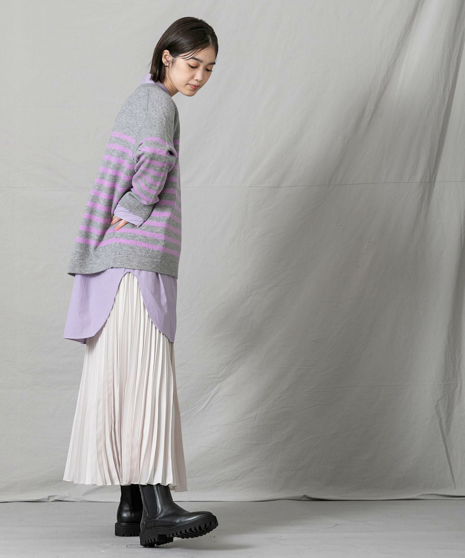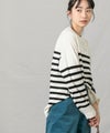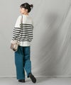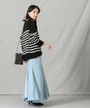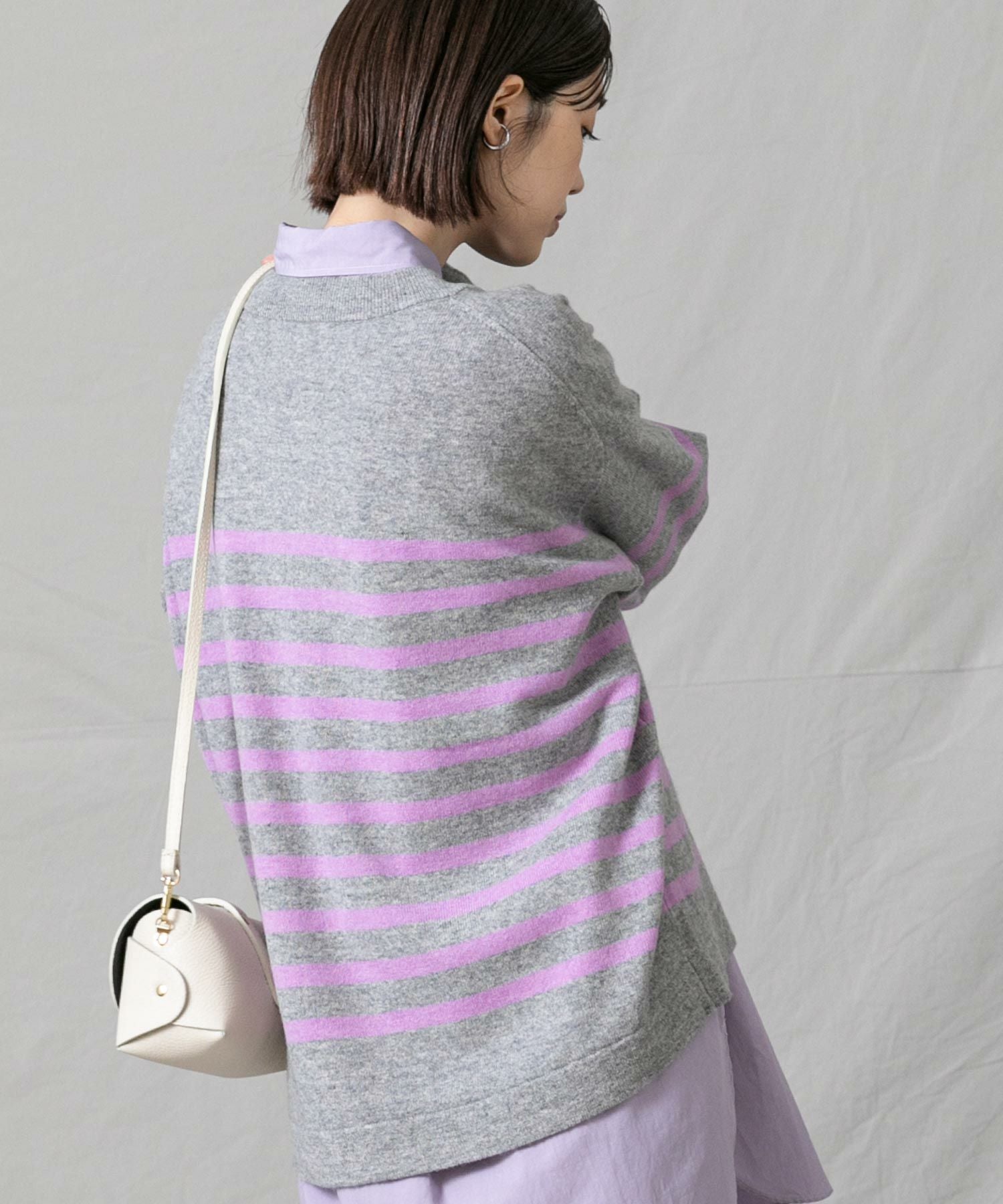 上品なモックネックと、スタイリングに映えるパネルのボーダーが大人な印象です。程よくゆとりのあるサイズ感とニットの風合いがこなれ感のある1着◎