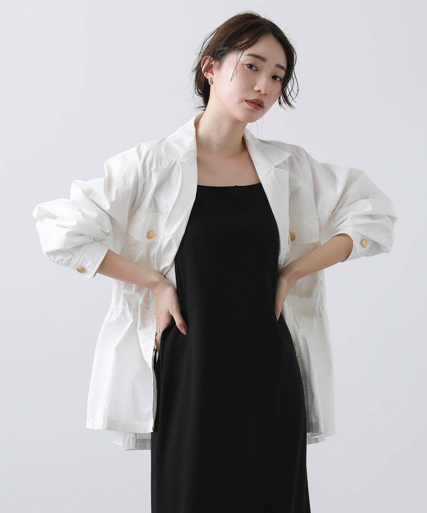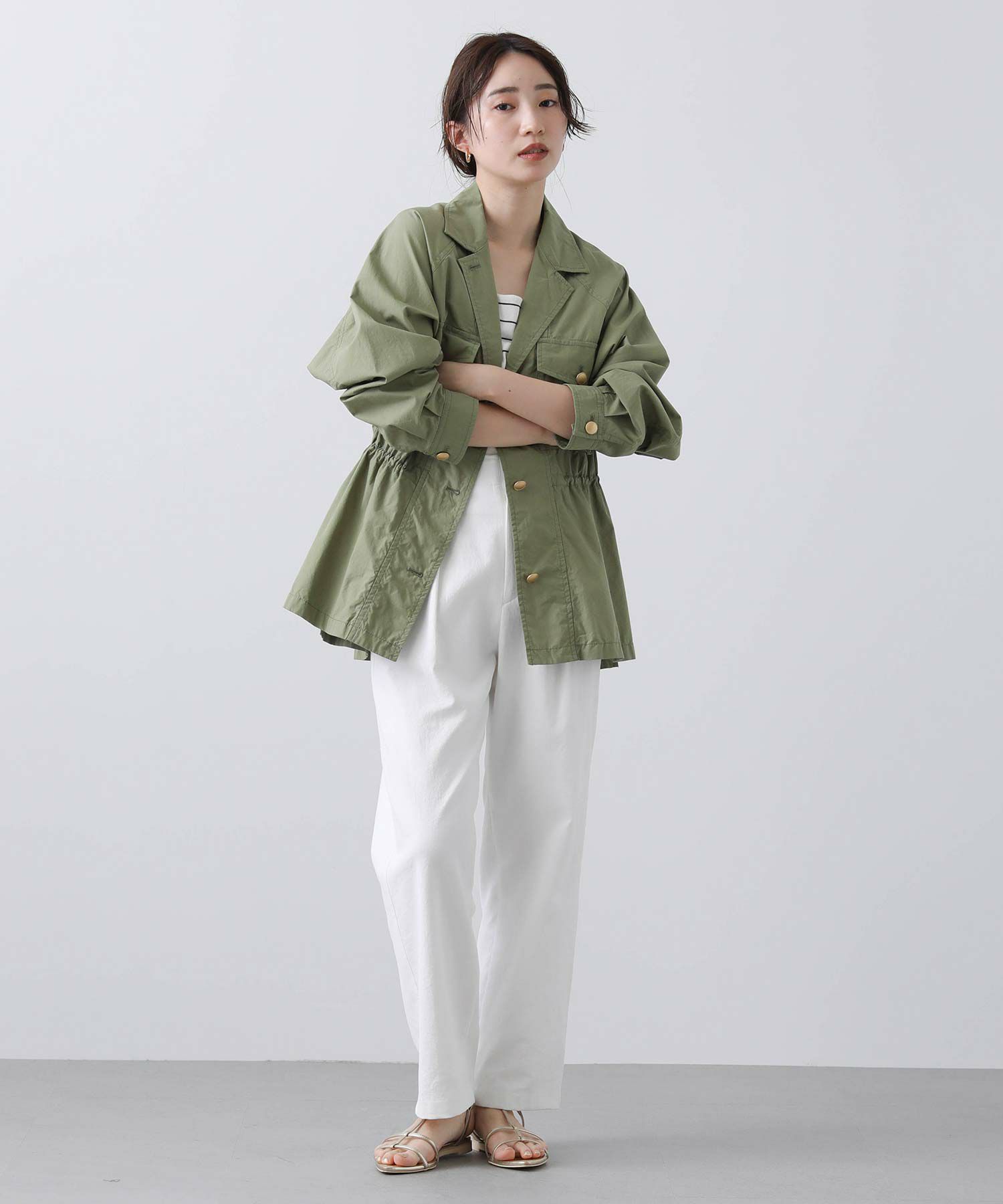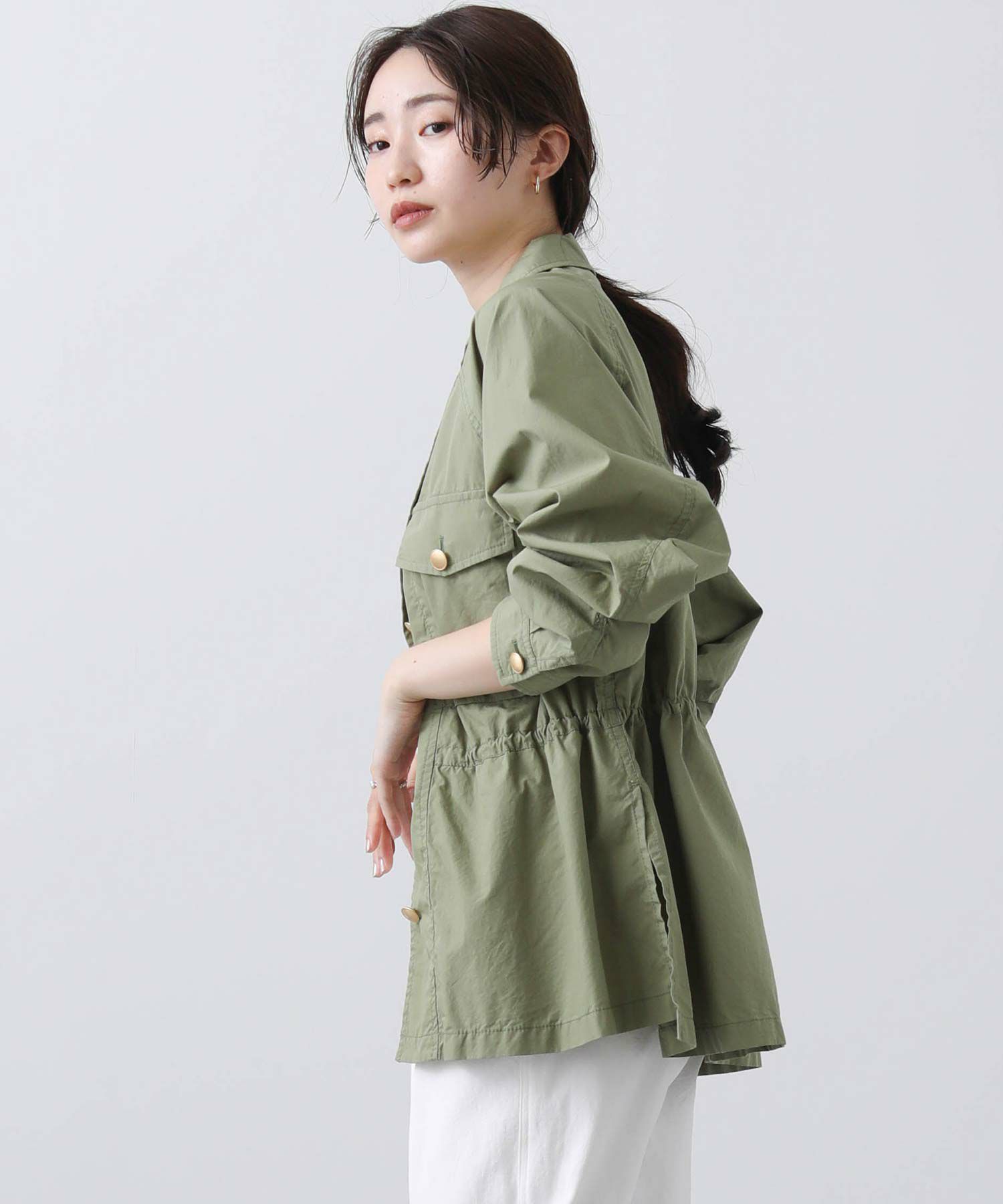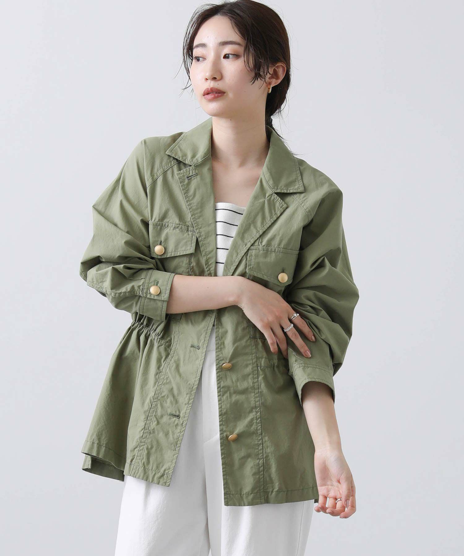 明るめのカーキと爽やかな白の2色展開で、春らしい軽やかなスタイリングが叶います。