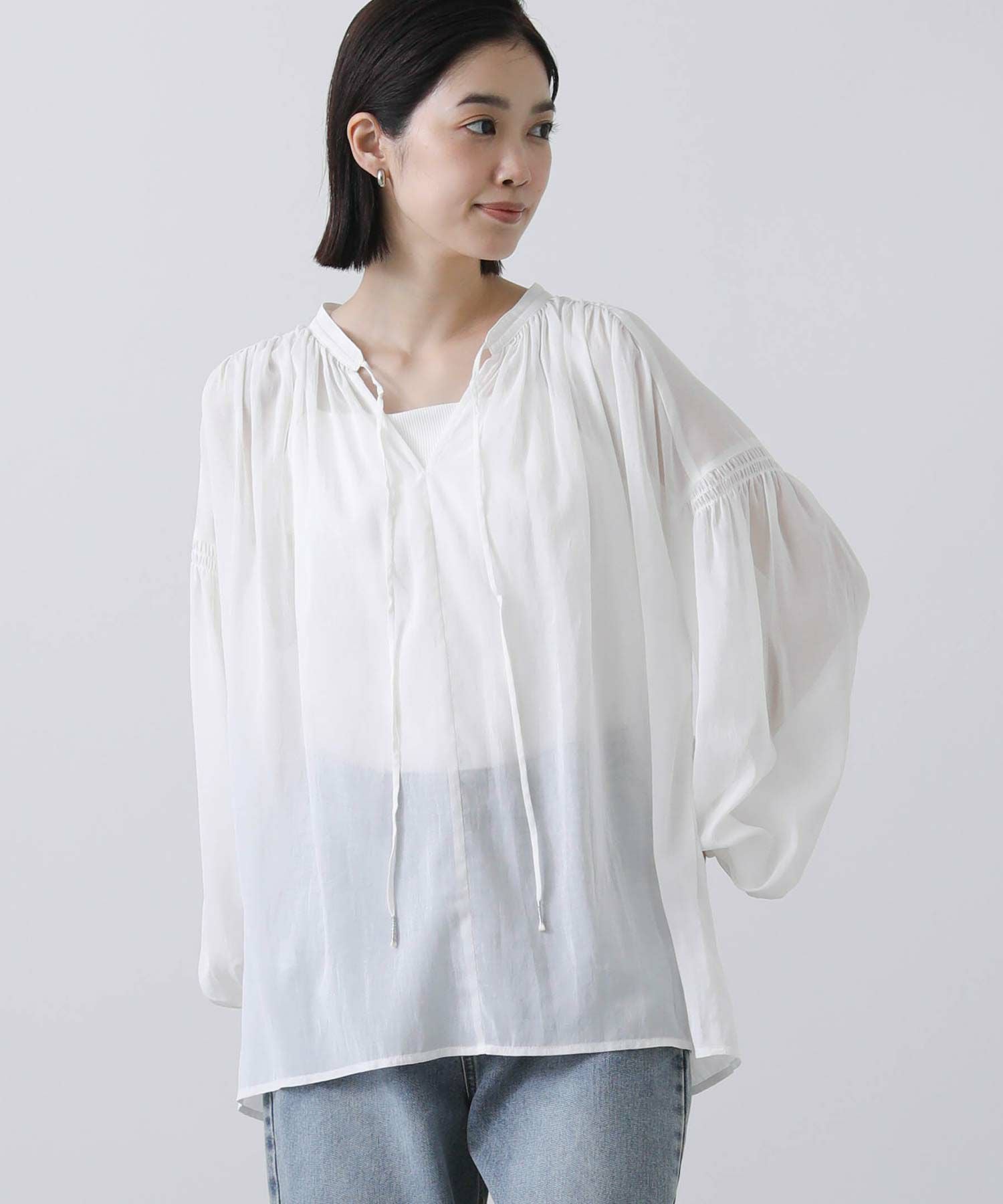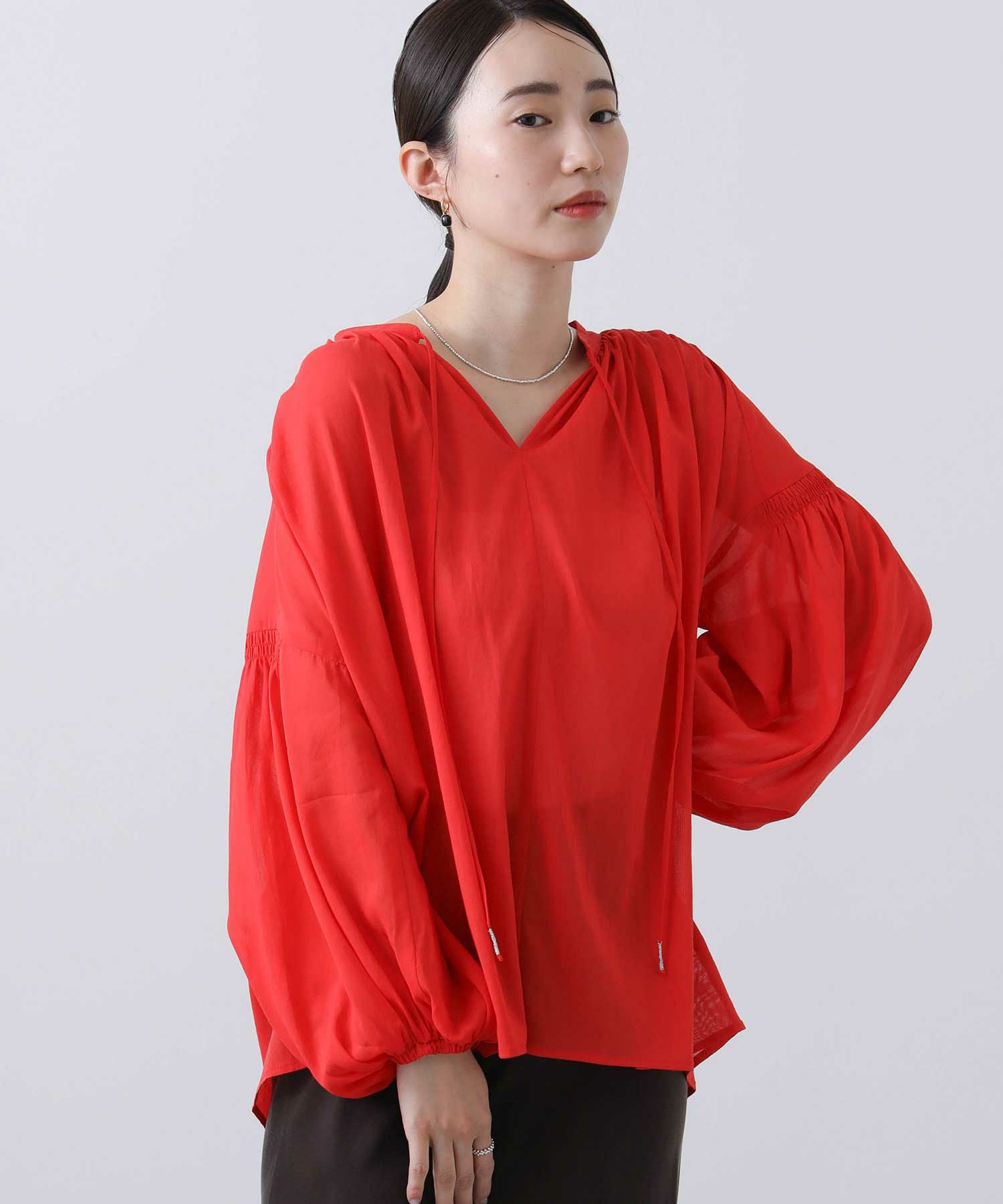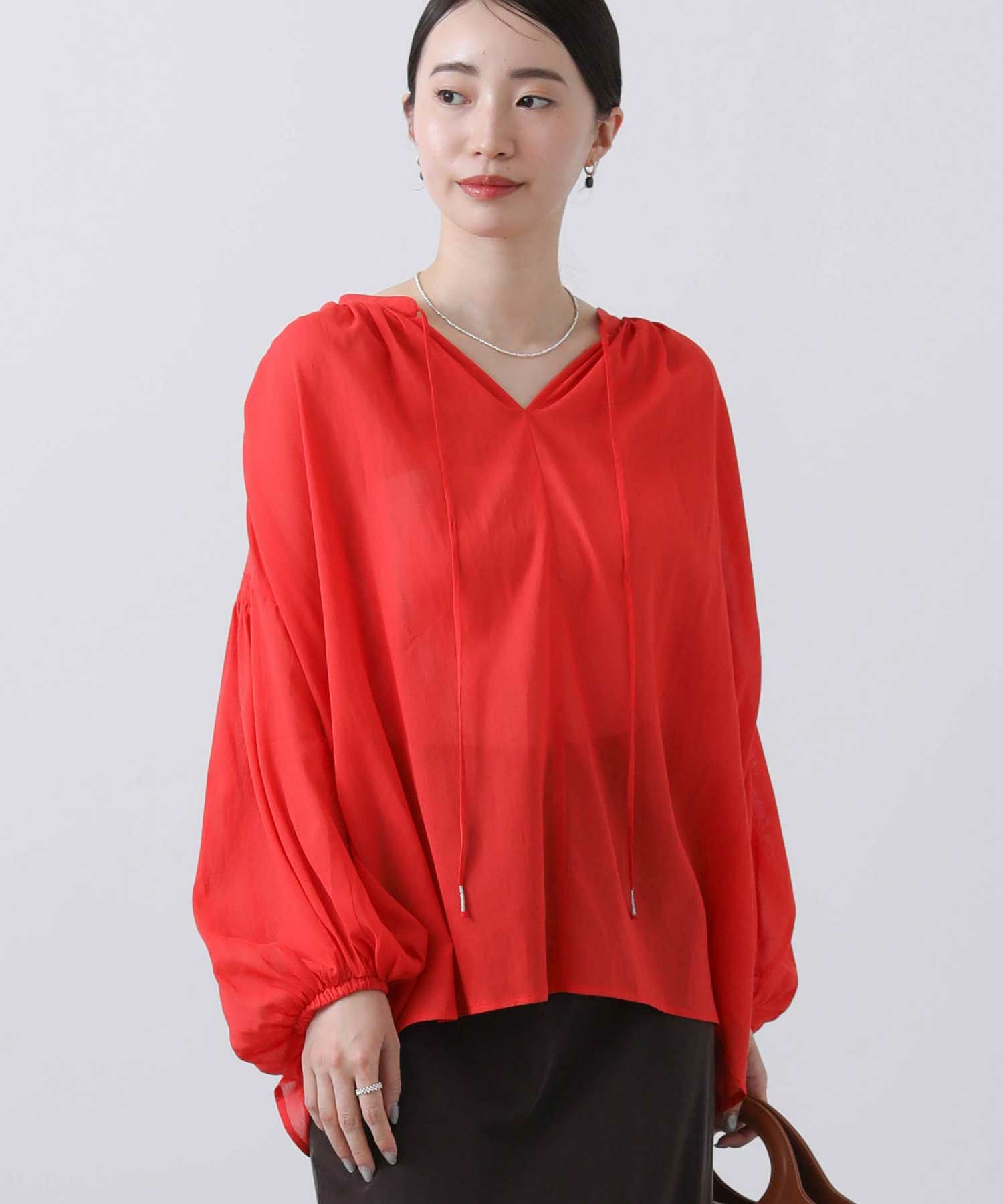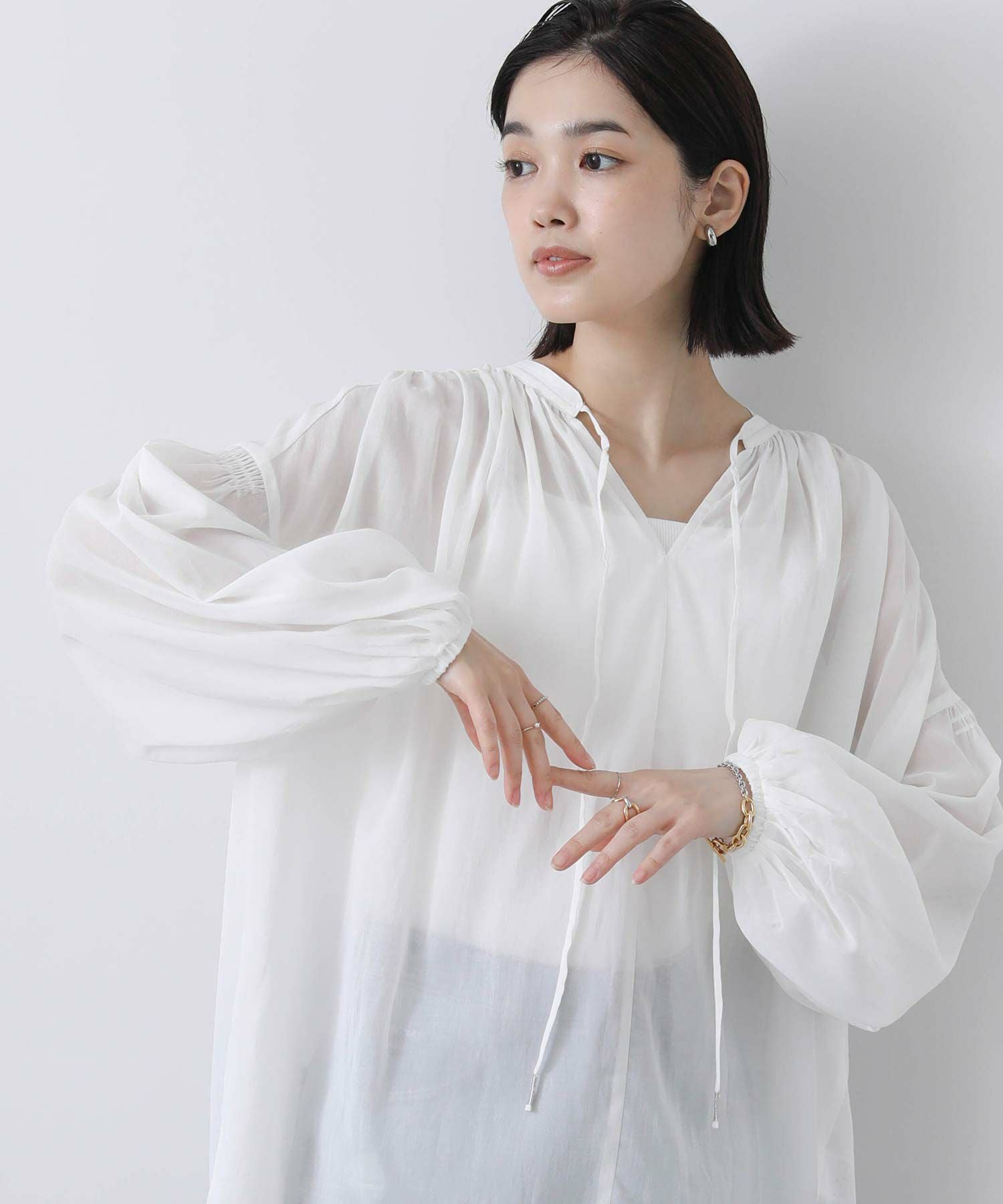 大人なシアー感と生地を贅沢に使用したたっぷりの分量感で着映えするブラウス。