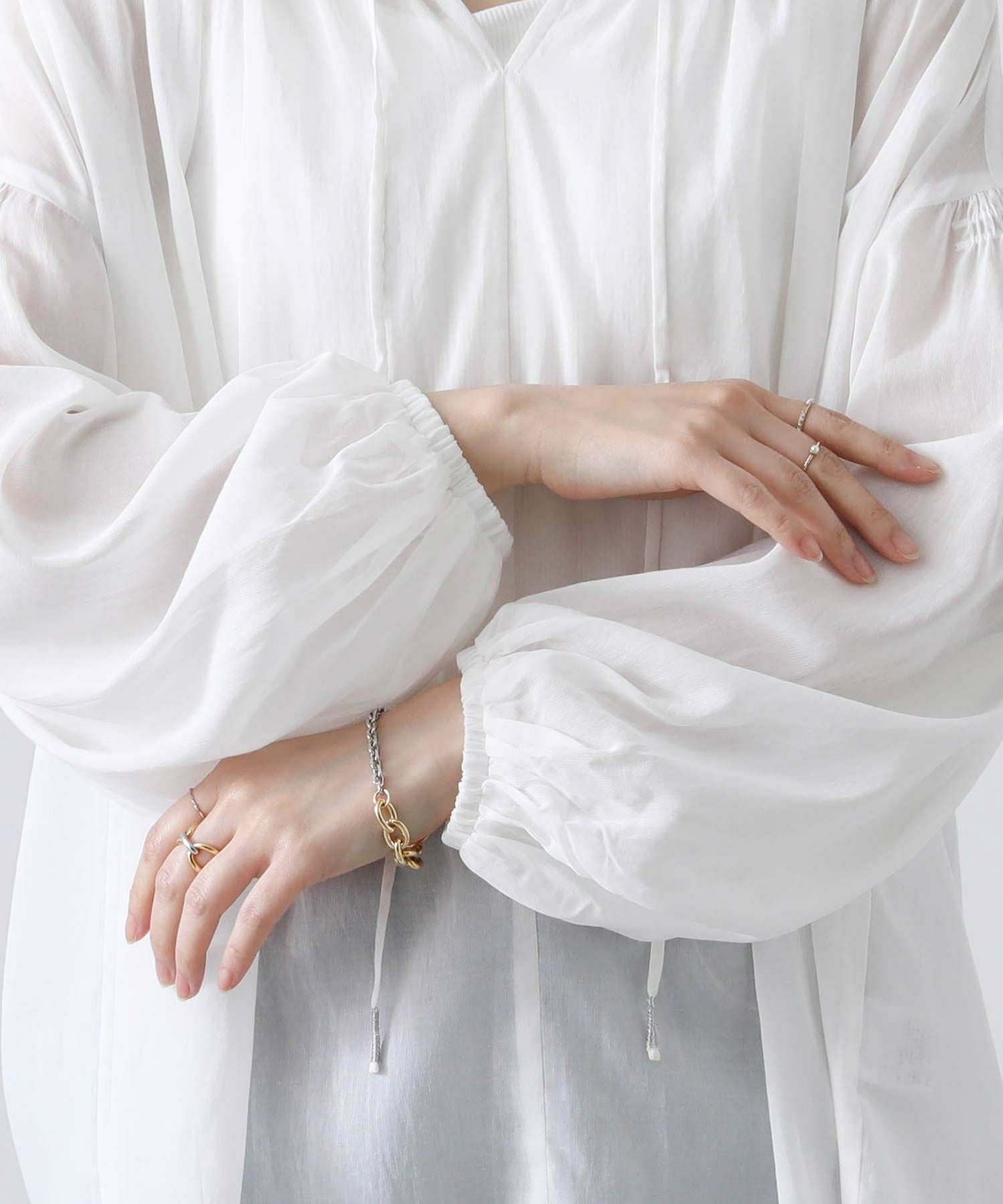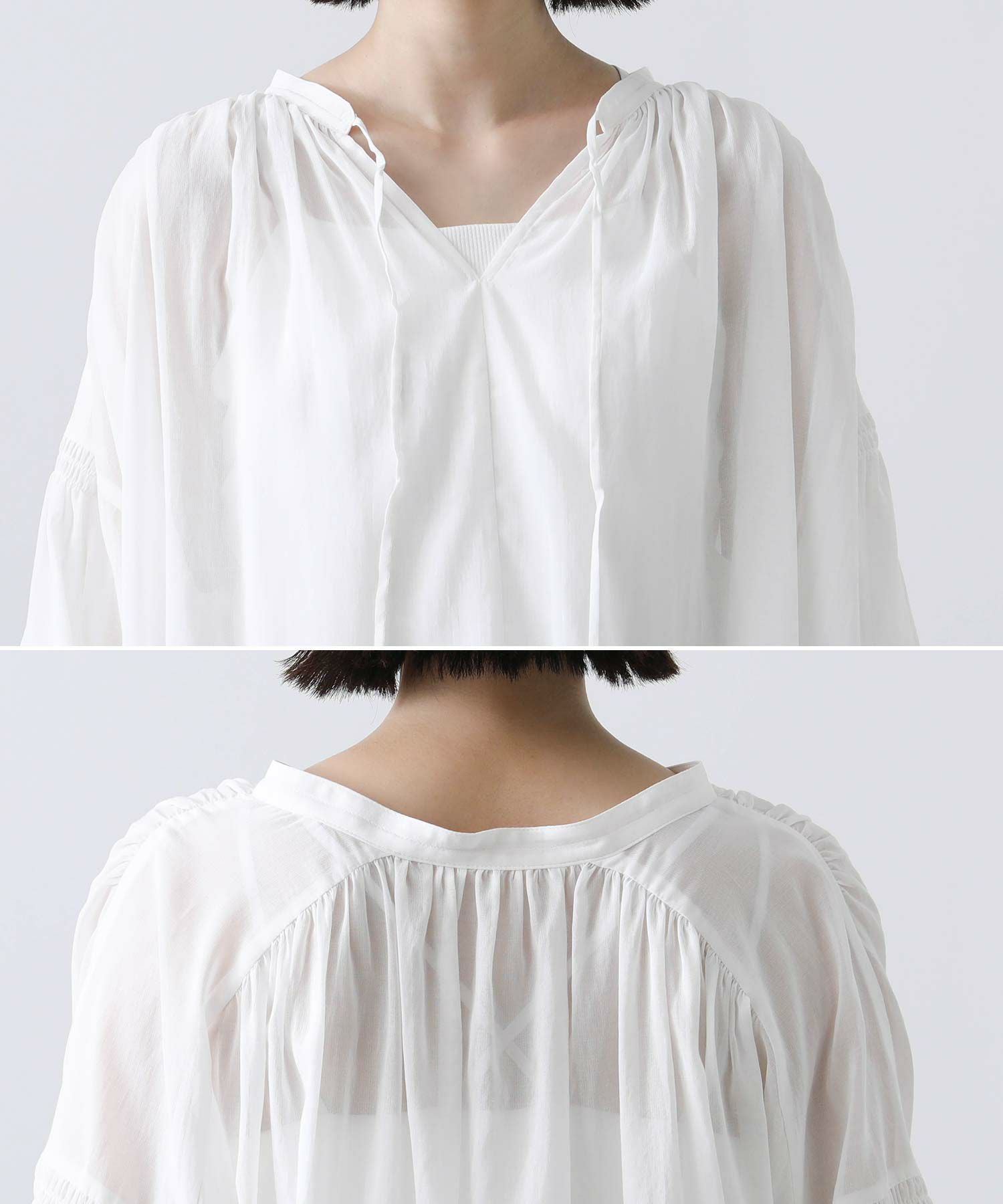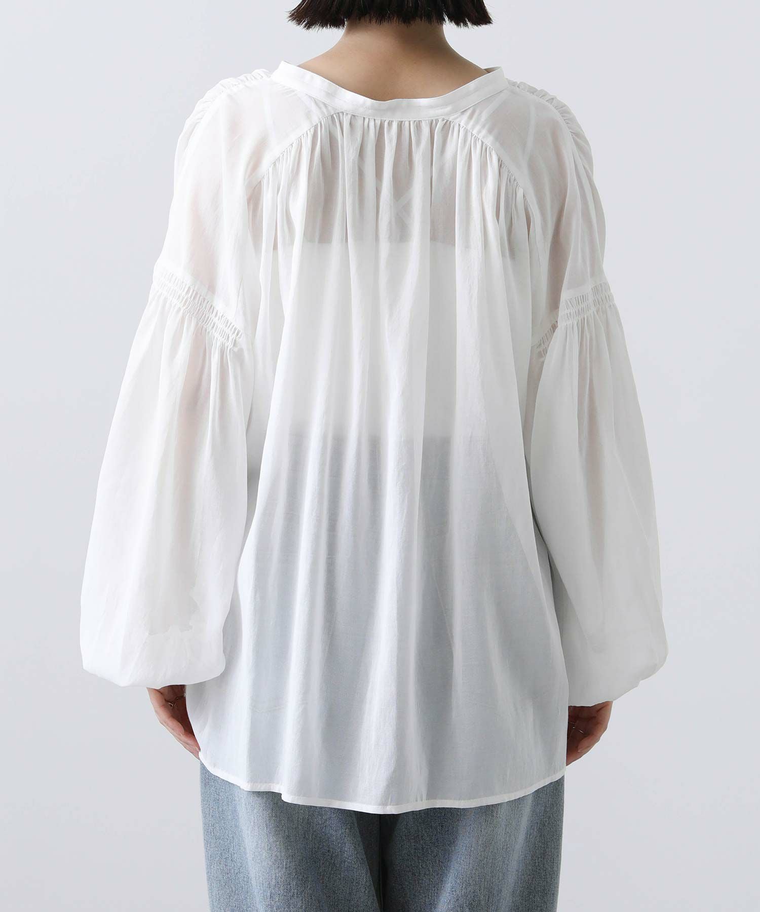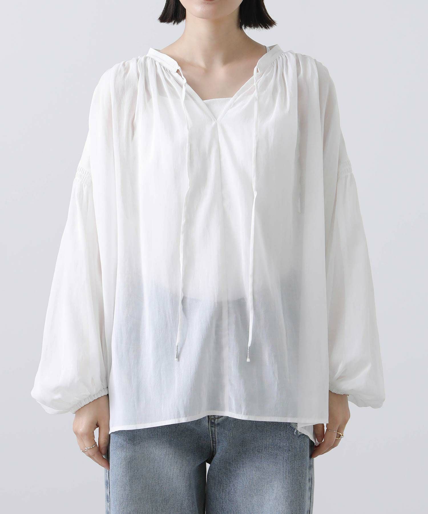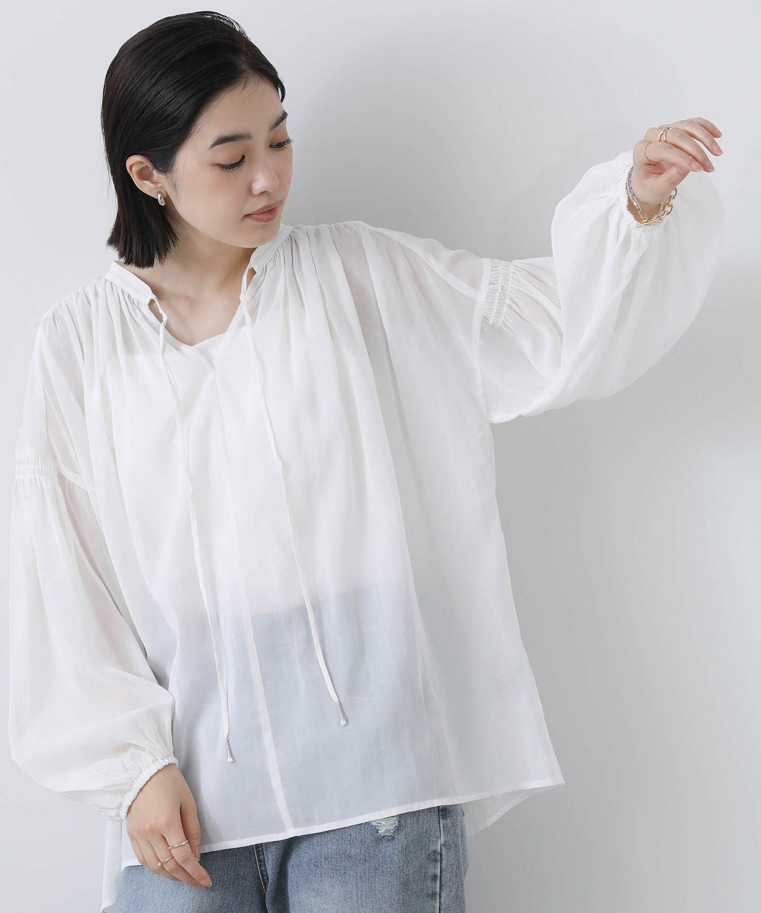 大人なシアー感と生地を贅沢に使用したたっぷりの分量感で着映えするブラウス。