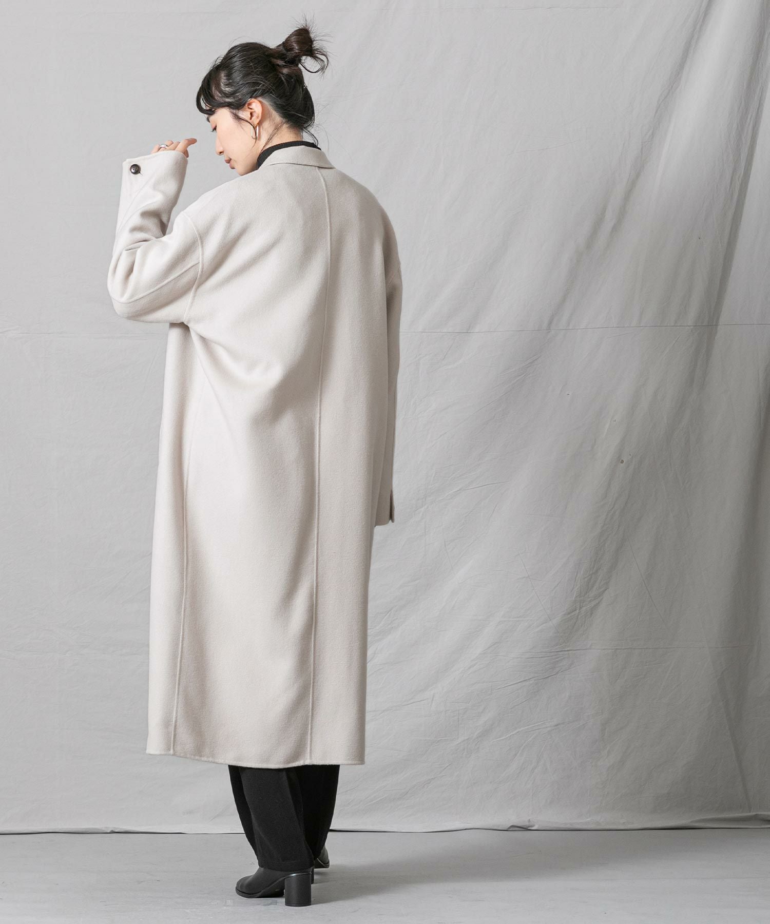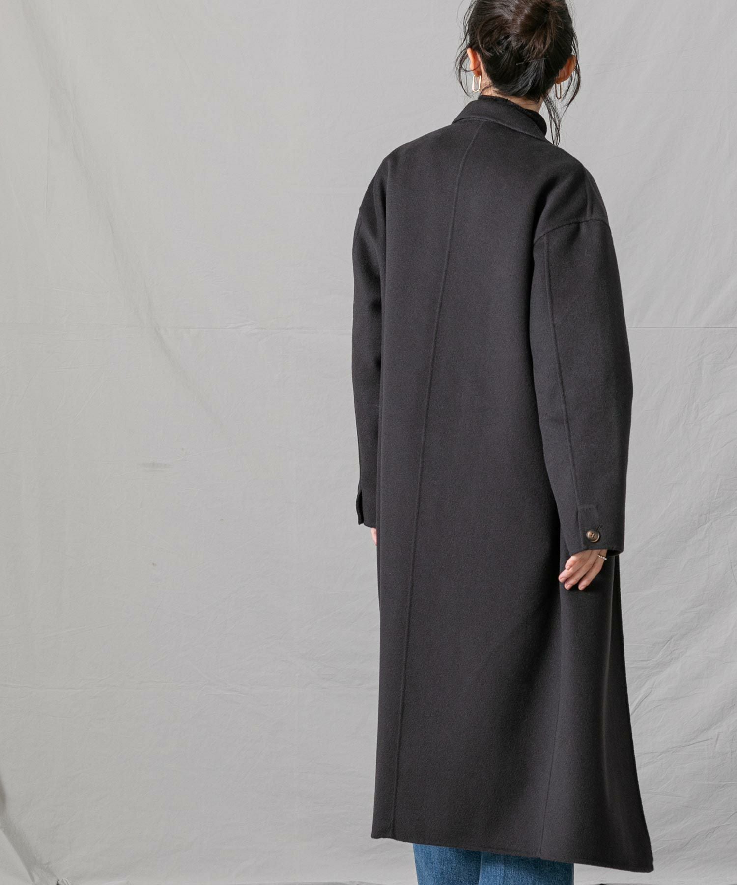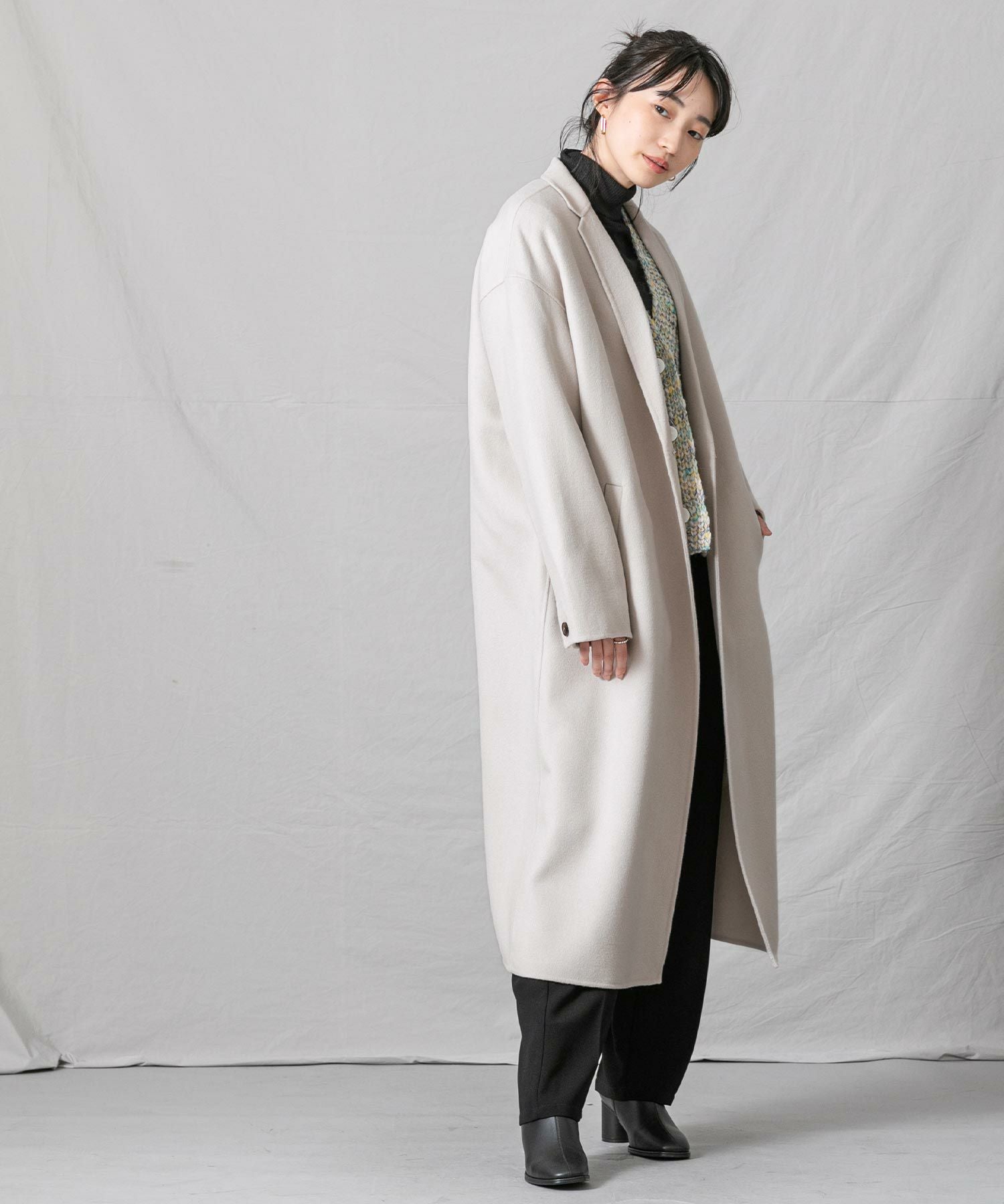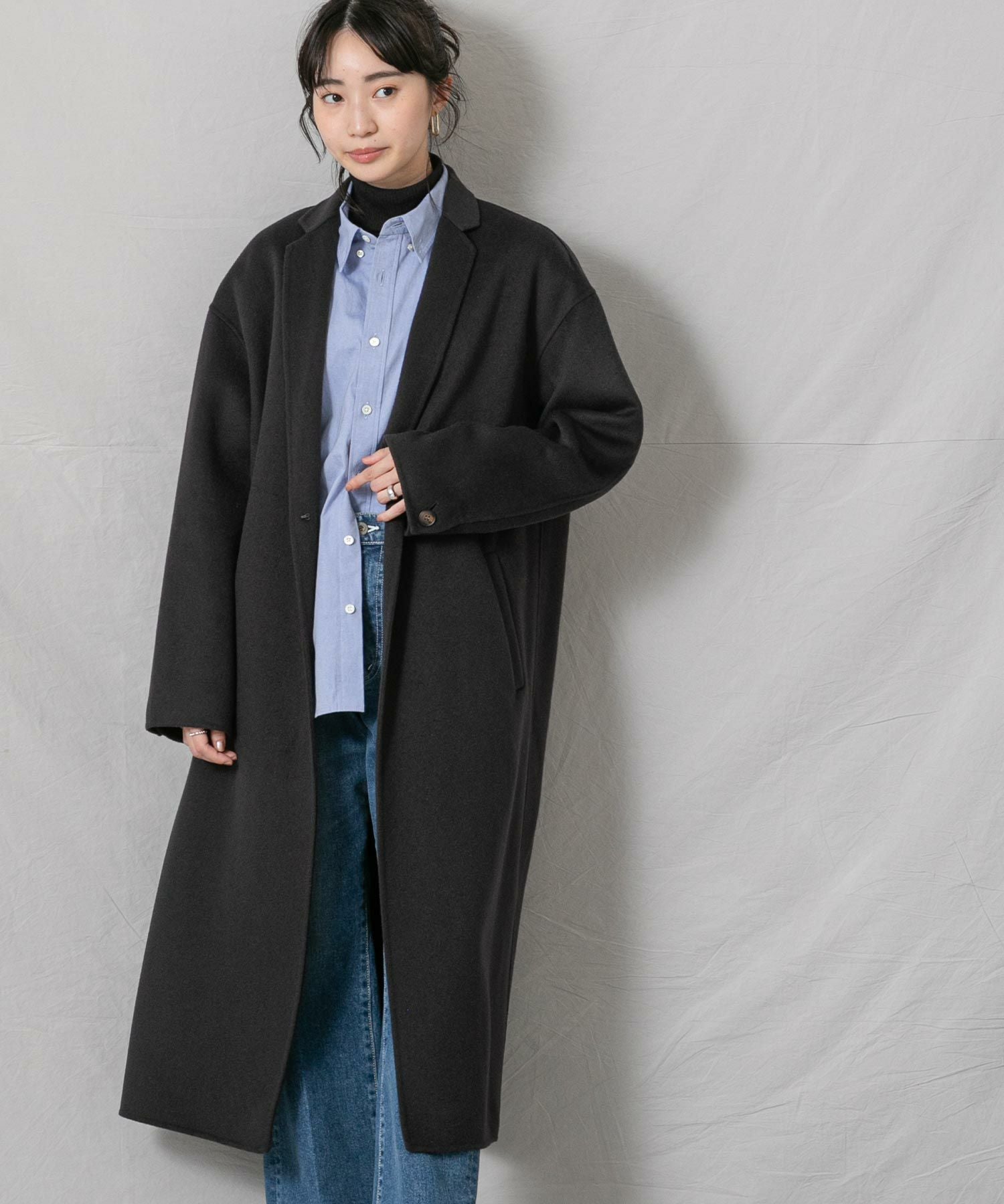 柔らかな風合いと、滑らかな触りが魅力の、ハンドクラフトで仕上げた上質なロングコートです。