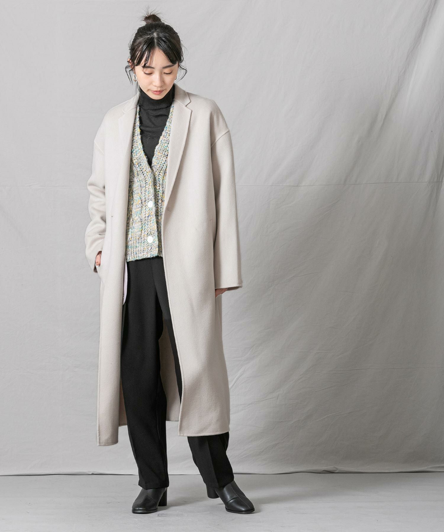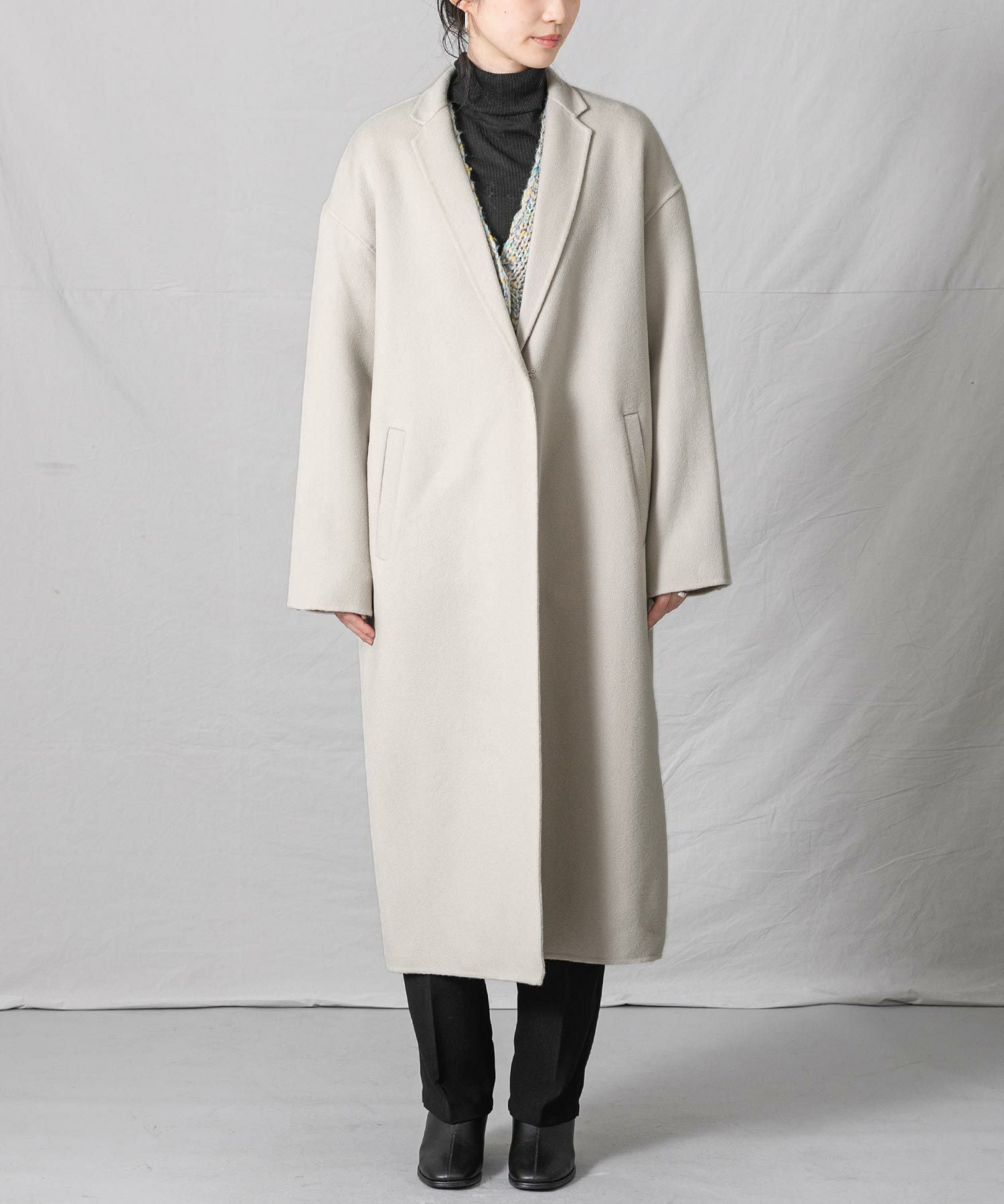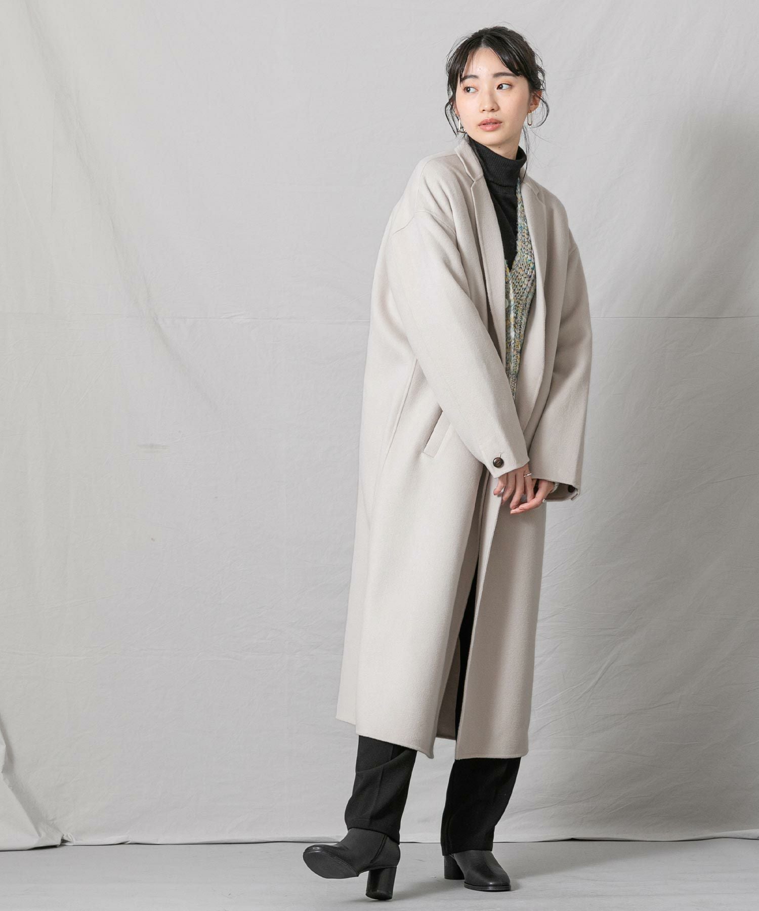 柔らかな風合いと、滑らかな触りが魅力の、ハンドクラフトで仕上げた上質なロングコートです。