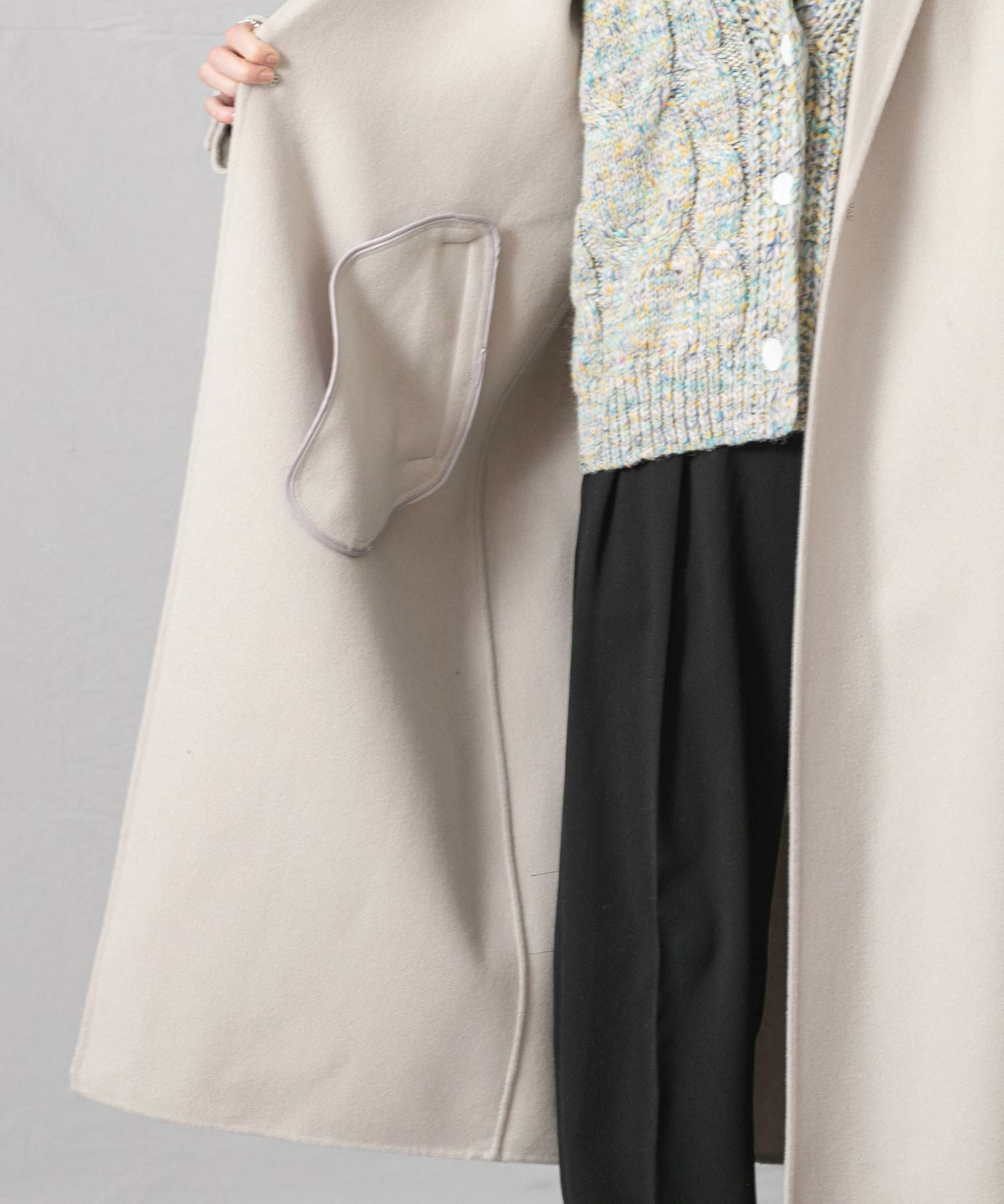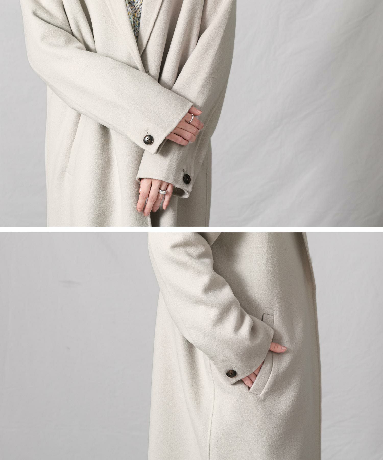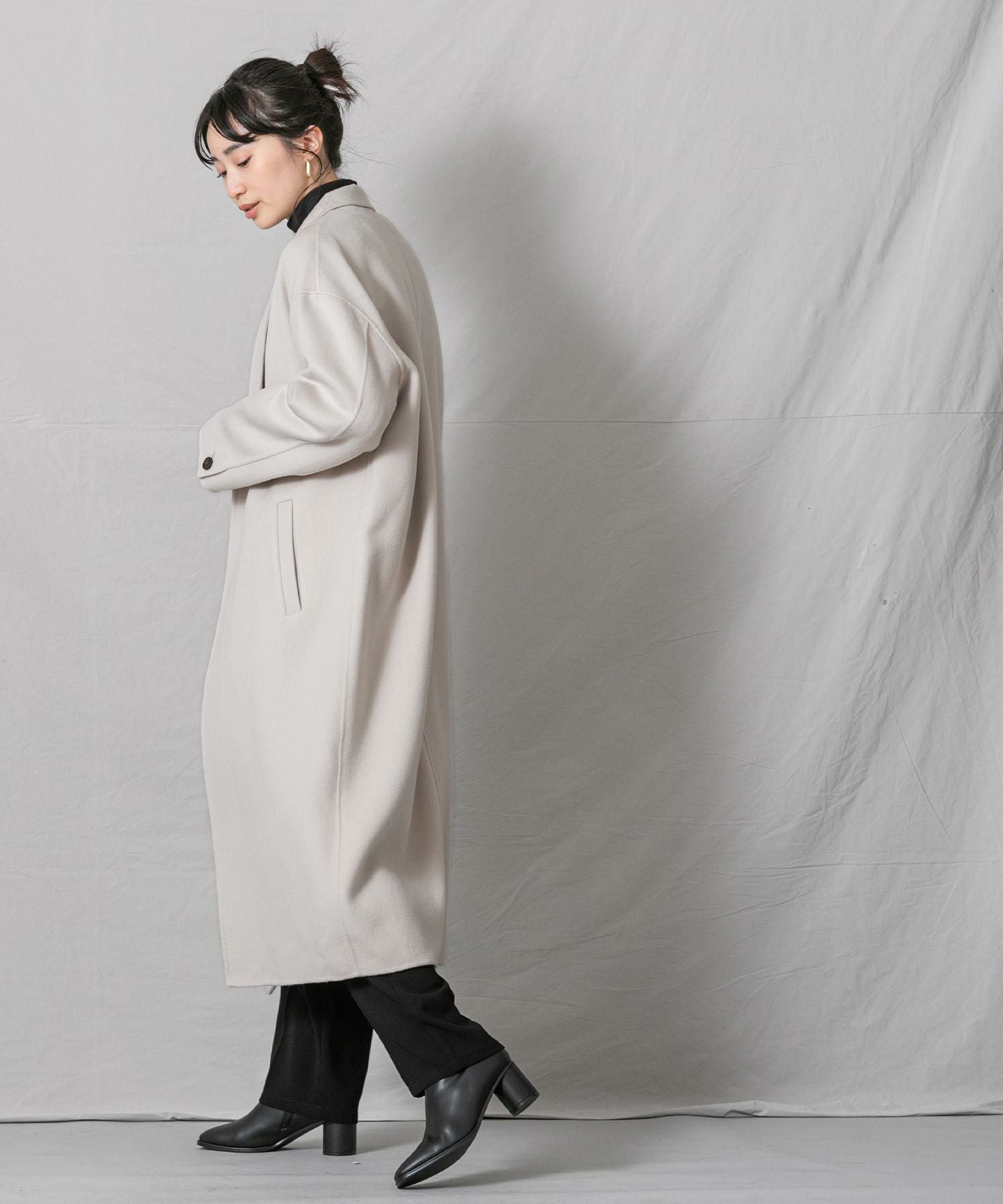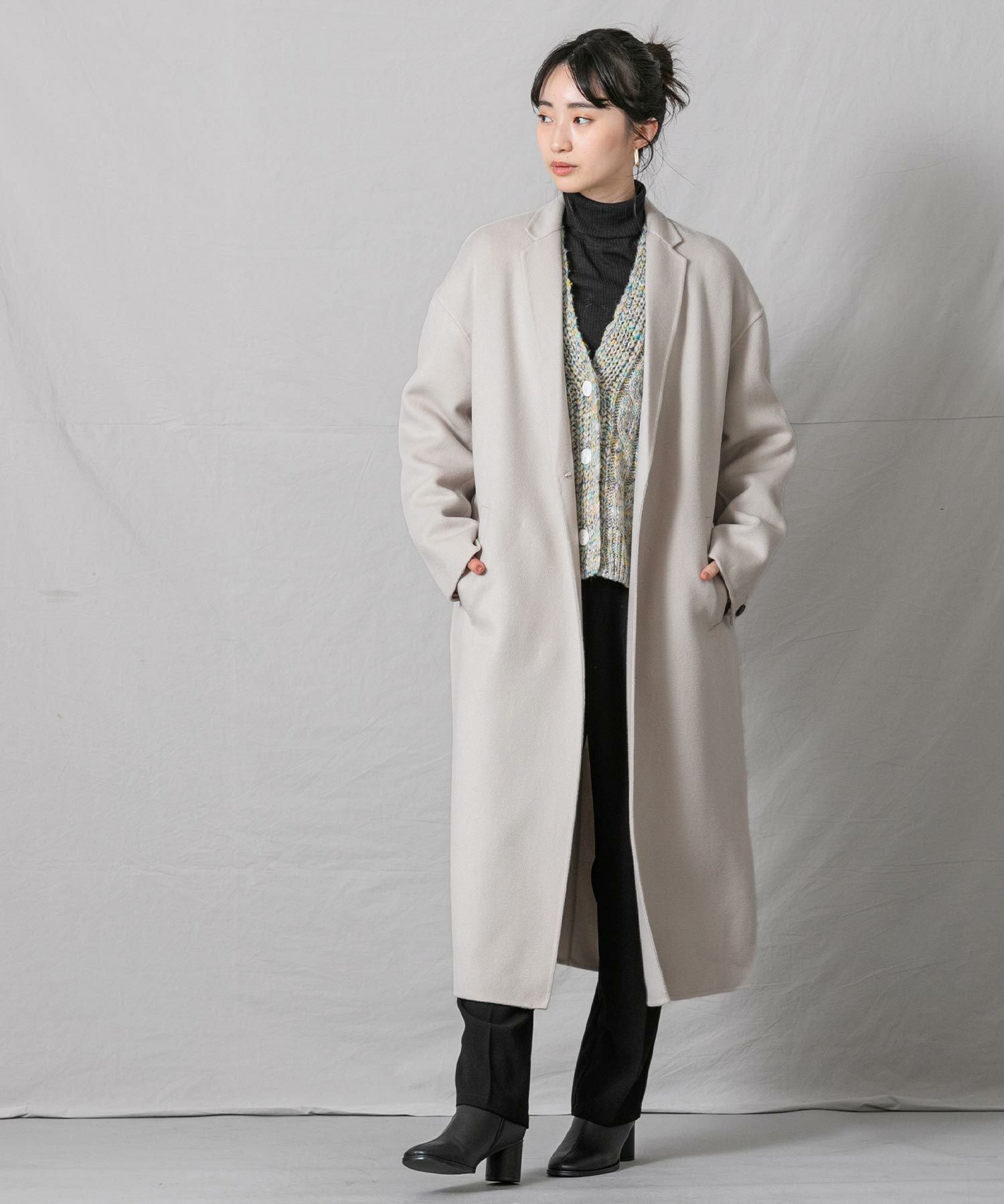 柔らかな風合いと、滑らかな触りが魅力の、ハンドクラフトで仕上げた上質なロングコートです。