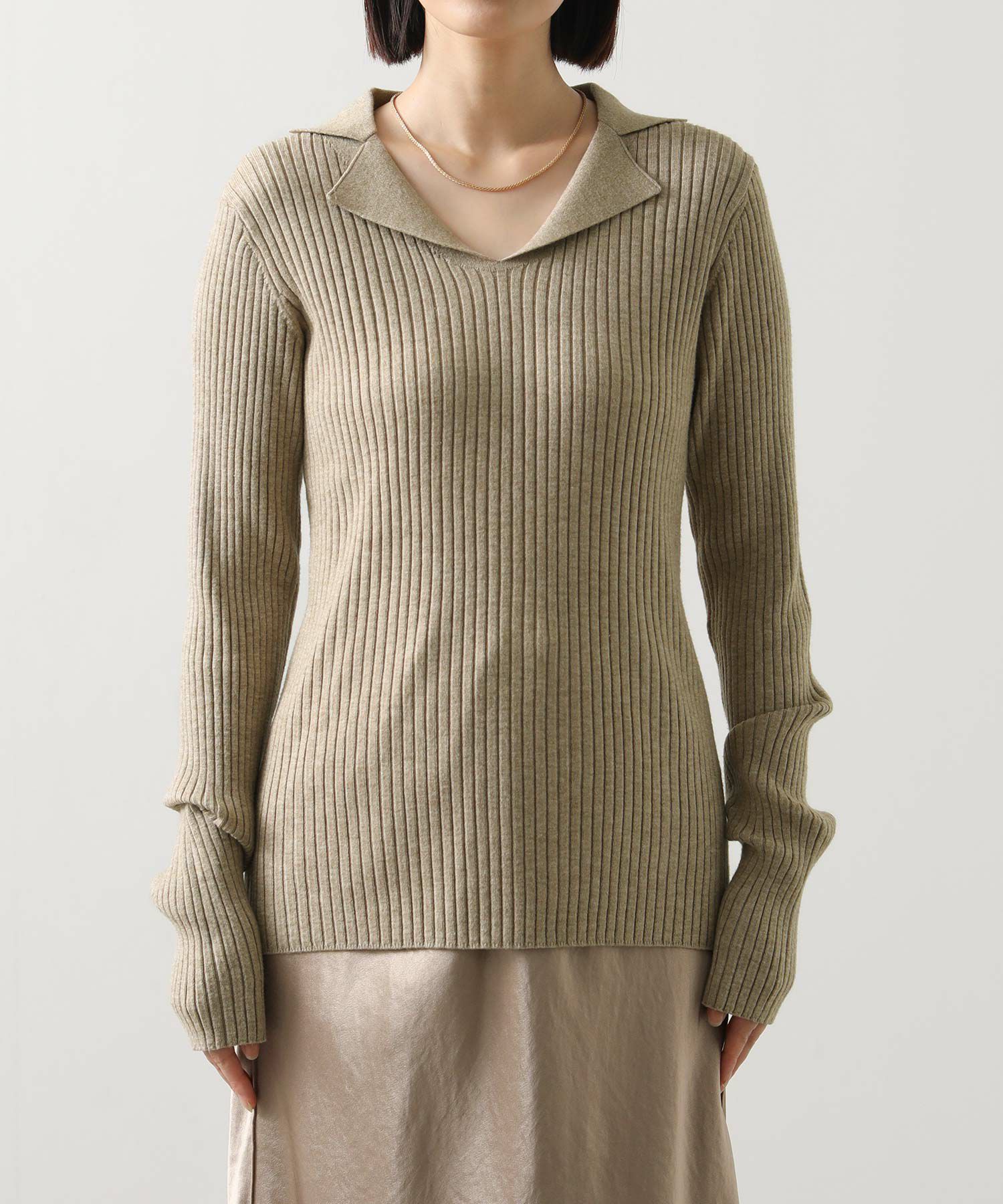 肌触りの柔らかな糸を使用したリブ編みニットプルオーバー。