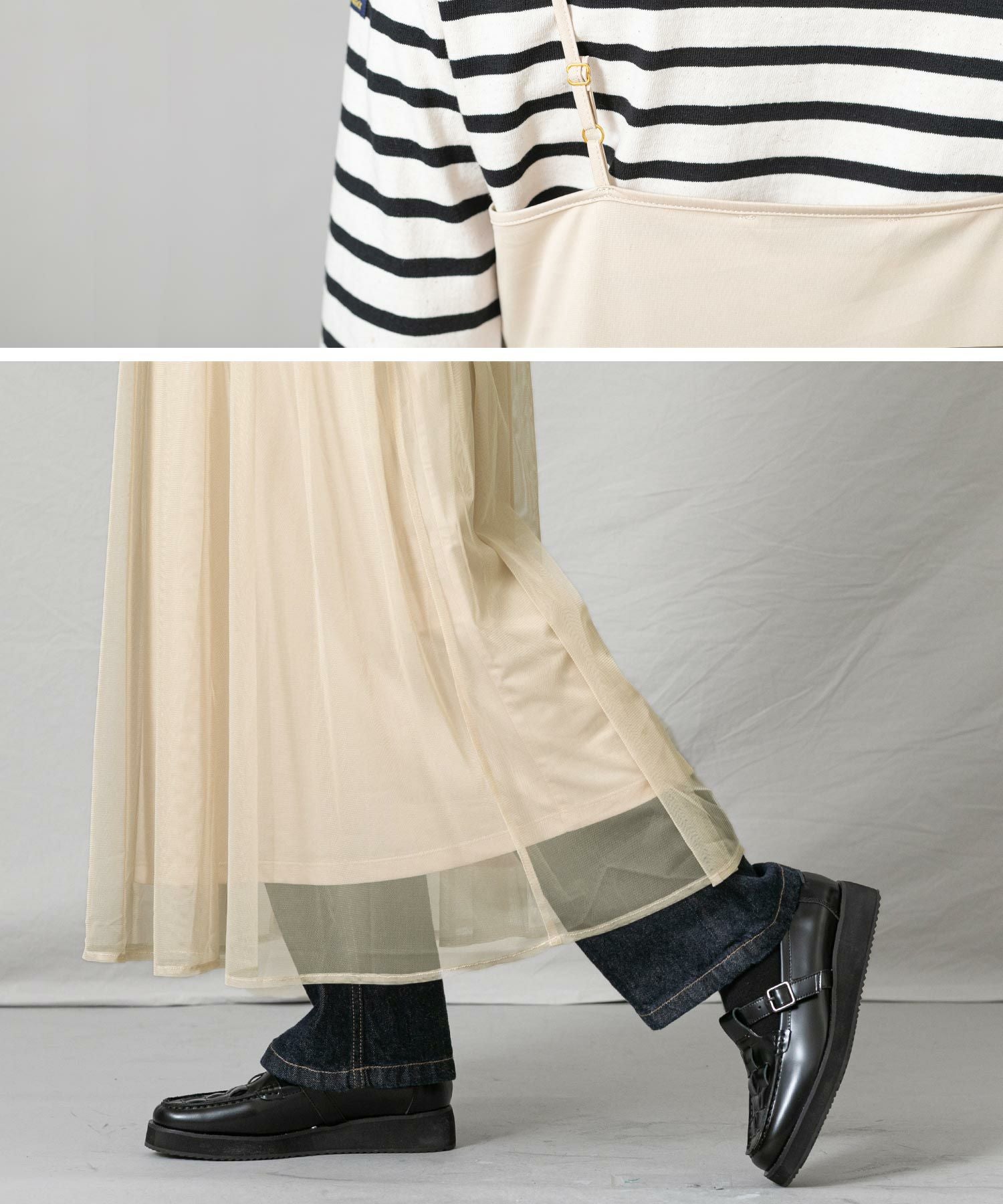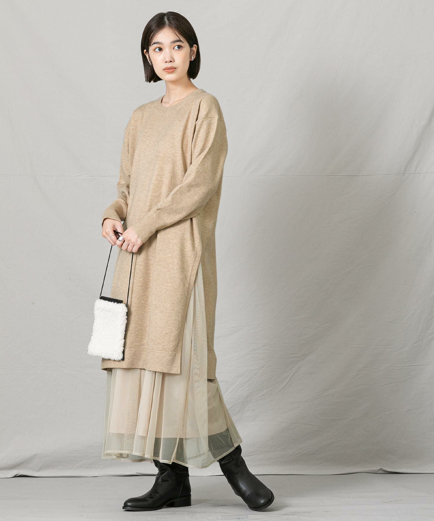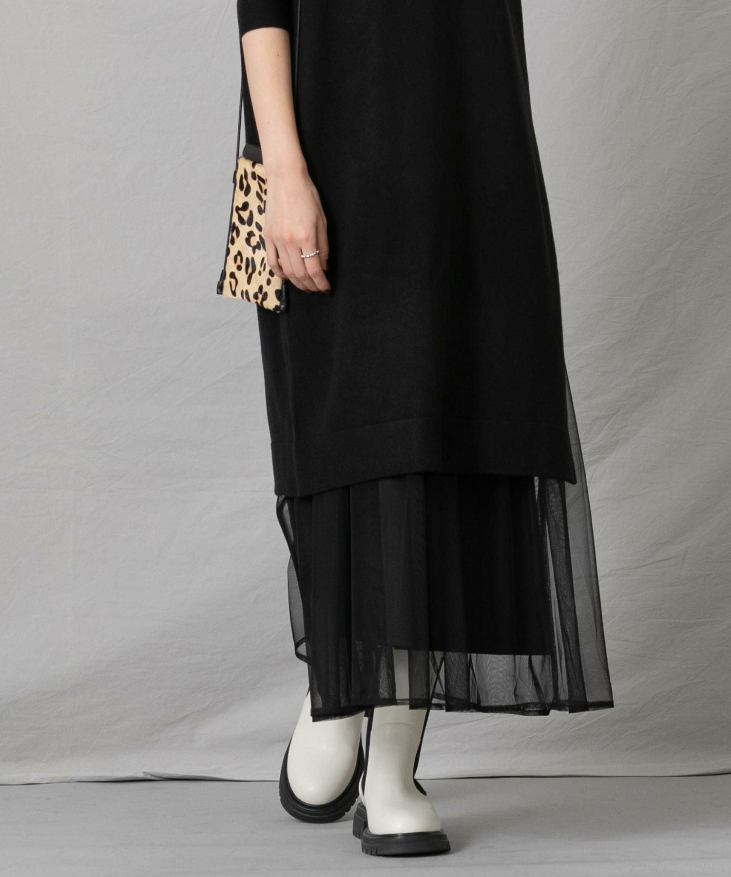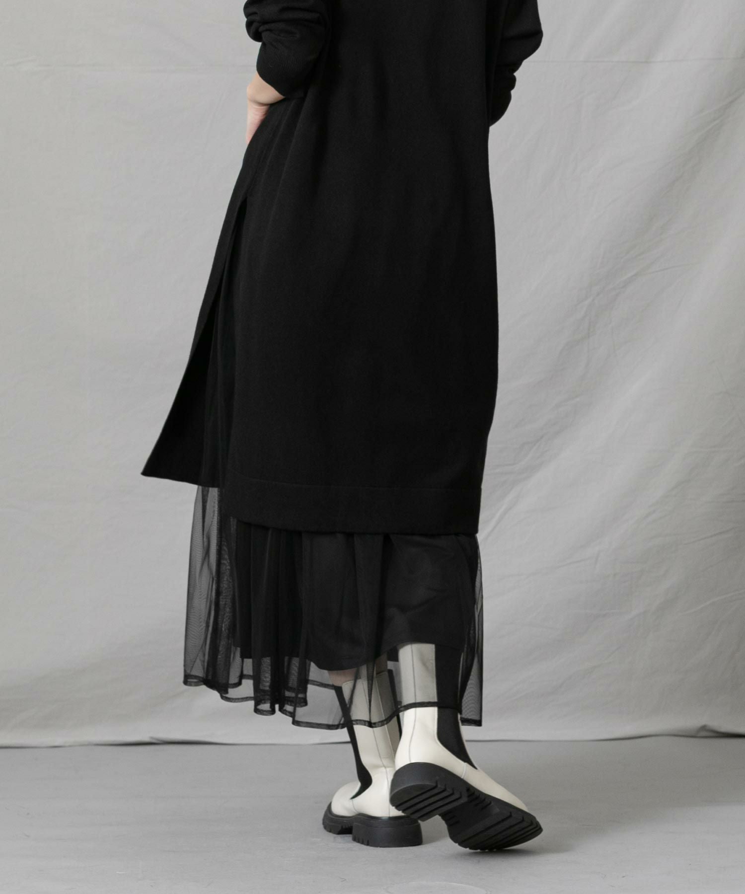 裾の大きく入ったスリットから覗くフレアシルエットのチュールが目を惹きます。別々で着回せるのも嬉しいポイント◎
