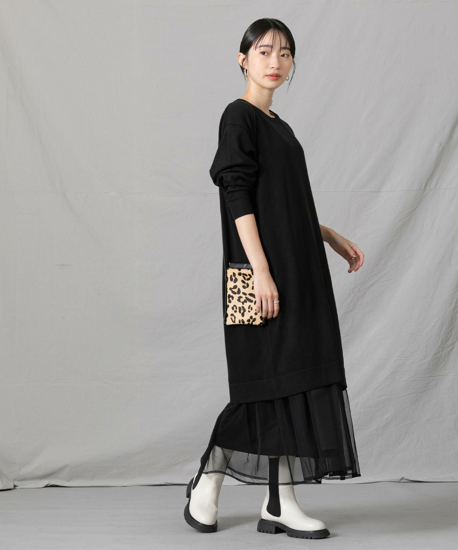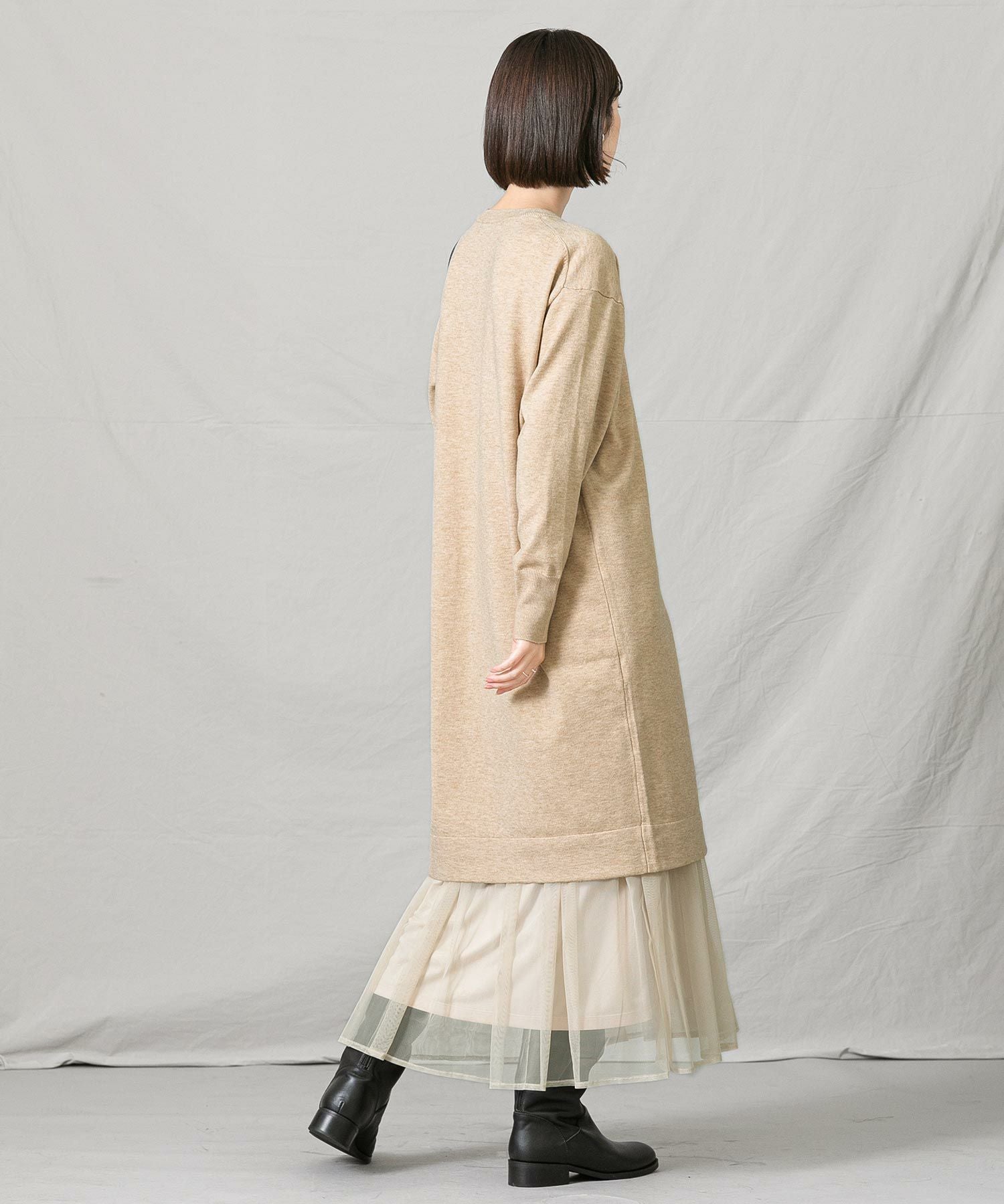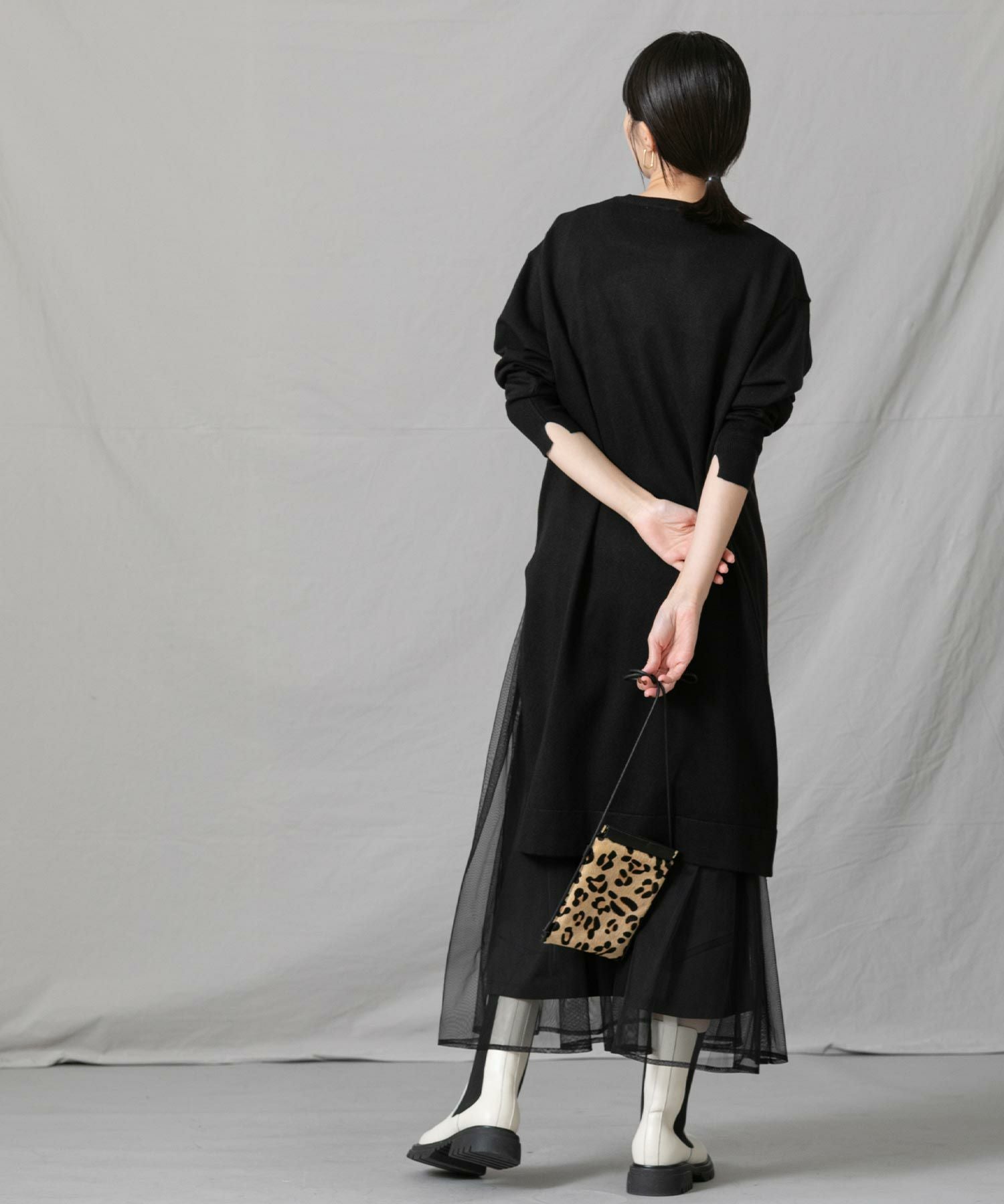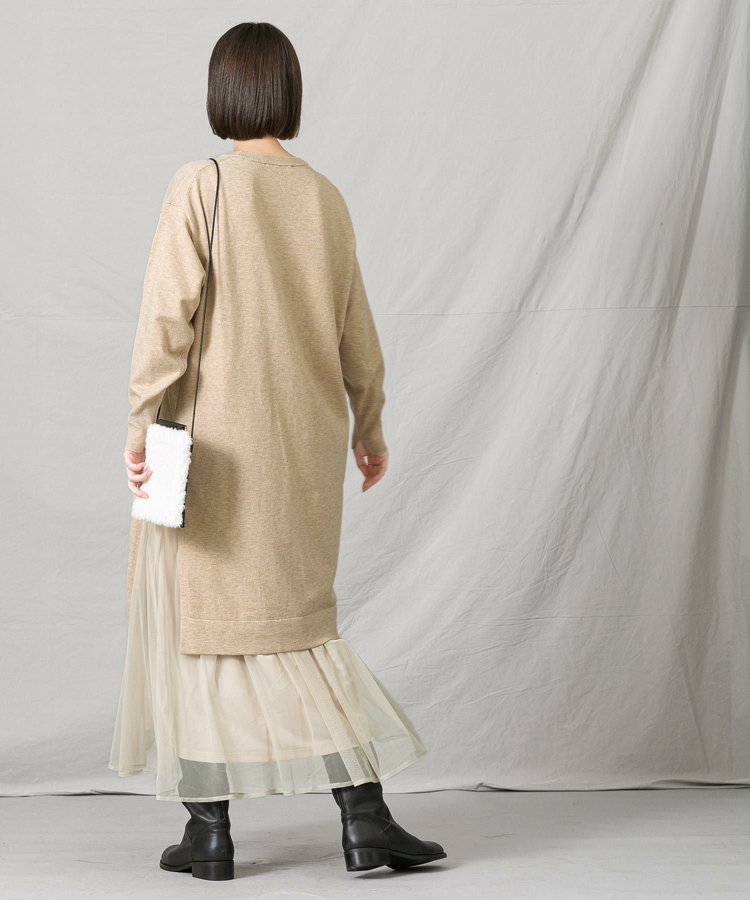 裾の大きく入ったスリットから覗くフレアシルエットのチュールが目を惹きます。別々で着回せるのも嬉しいポイント◎