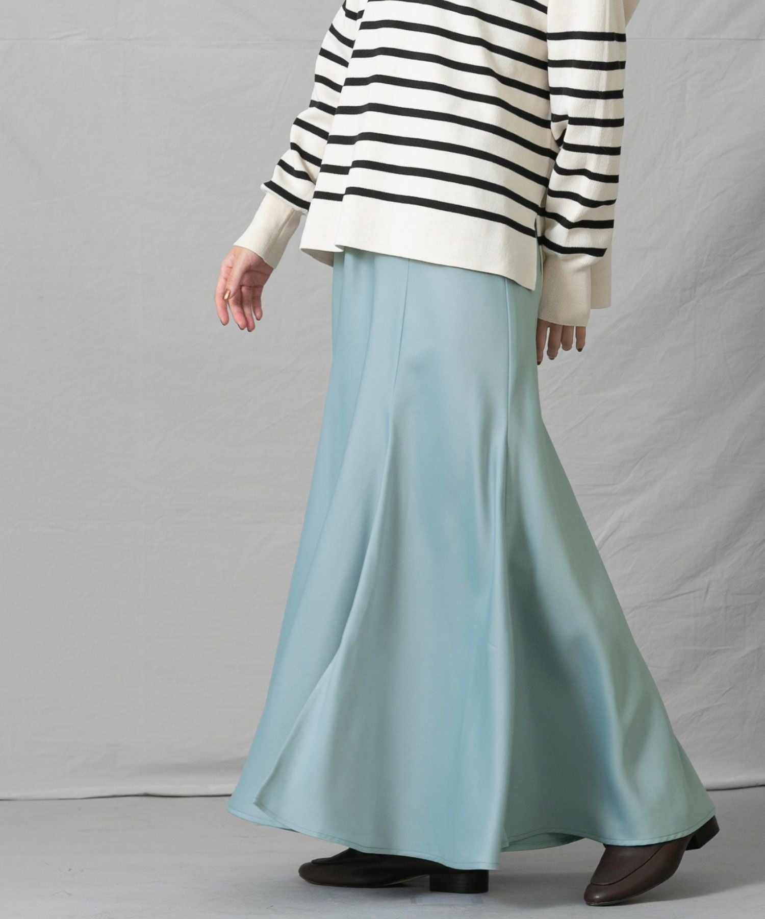 「Torrazzo Donna」から、サテン地をパネル状に切り替えたロングスカートをセレクトしました。