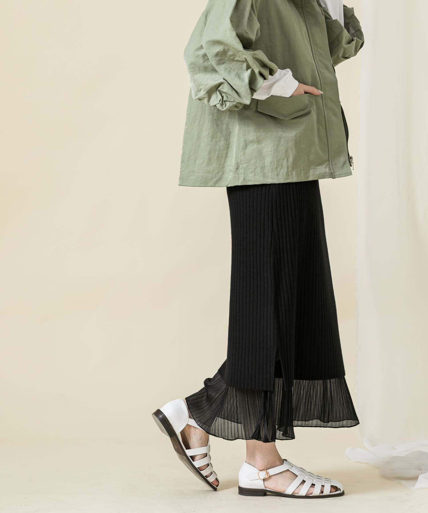 トレンドのシースルーをTorrazzo Donnaらしく表現したおすすの一枚です。表裏2WAYで着用できるので、表情の違った着合わせを楽しんでいただける万能なスカートです。