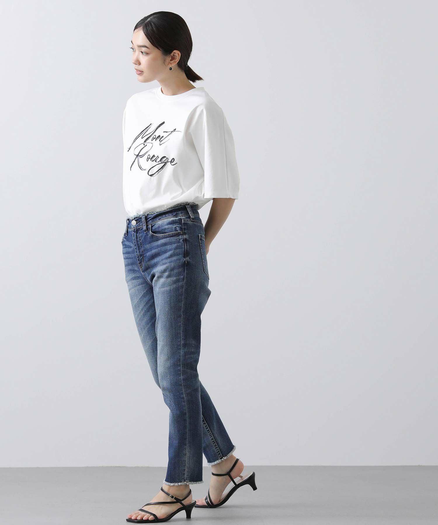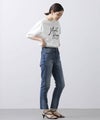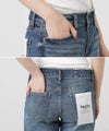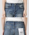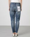 ミッドライズで浅くも深くもなく、股上がローライズとハイライズの中程の丈でややゆとりがあり、ウェストのフィット感を高めて全体のバランスを微調整した一本です。