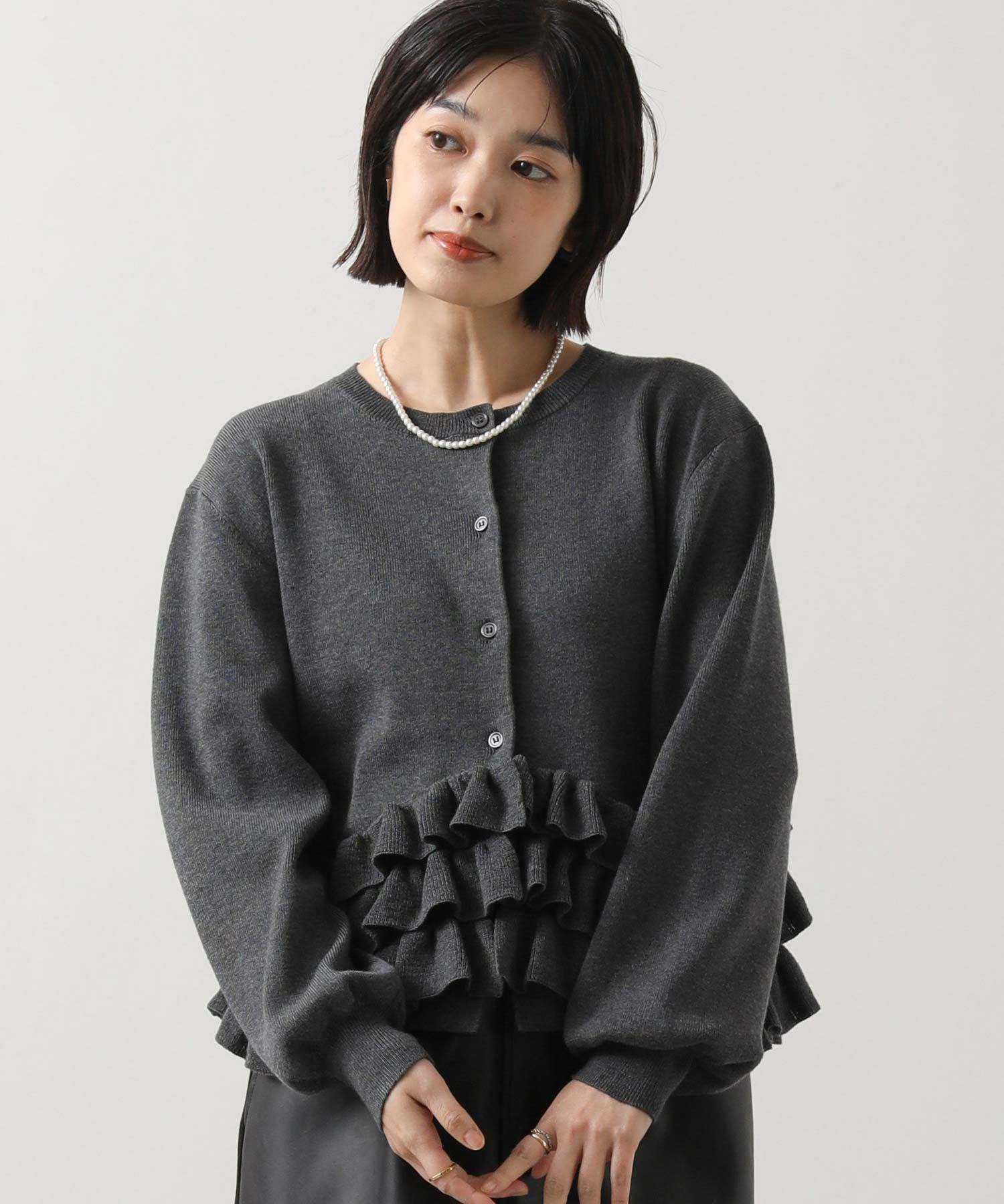 【RAWFUDGE(ローファッジ)】から、モードに着こなすヘムフリルニットカーデをセレクト。
