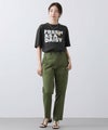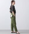 やや深めの股上と、くるぶし丈のレングスで大人のきれいめカジュアルを演出。