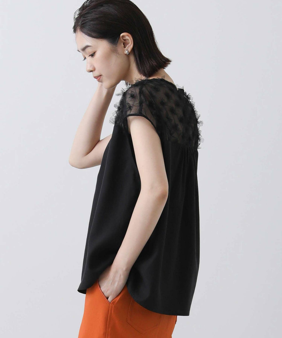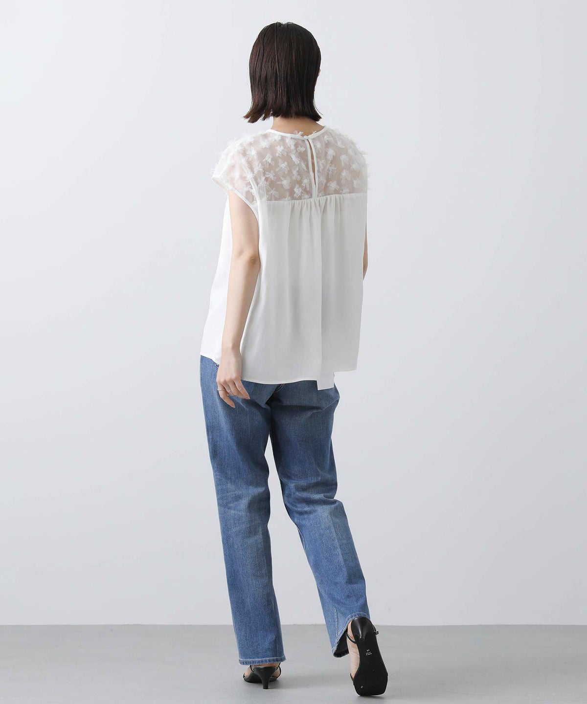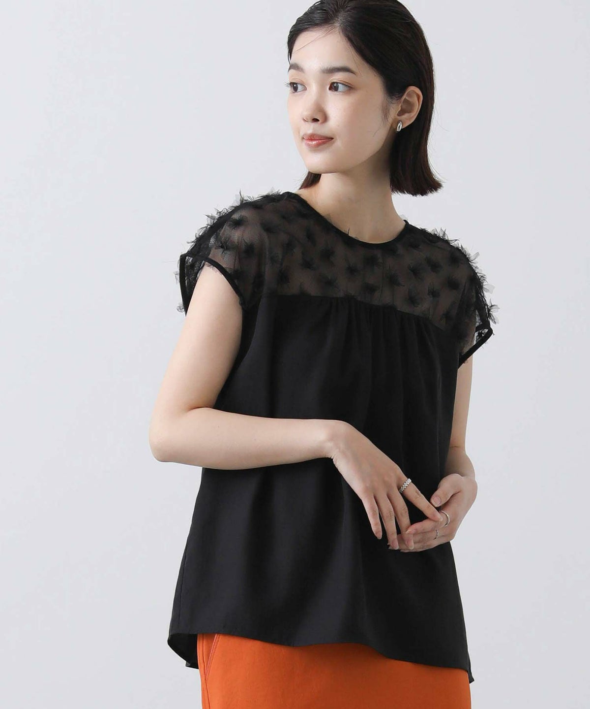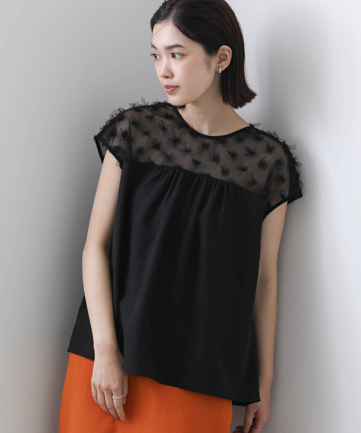 花柄チュールヨークブラウス