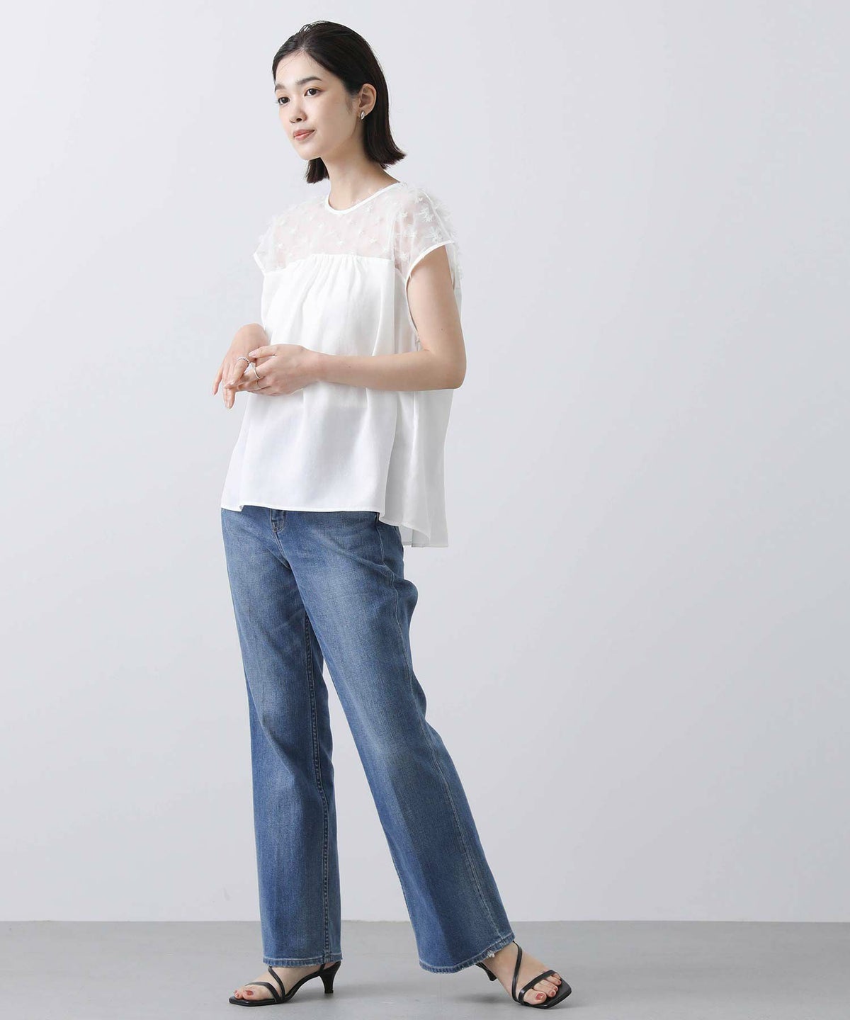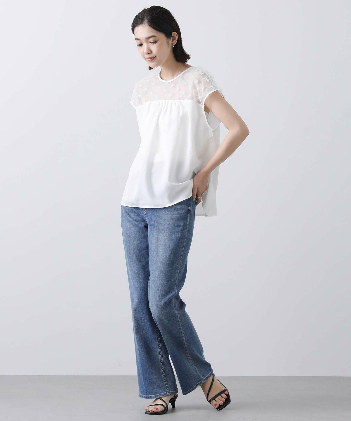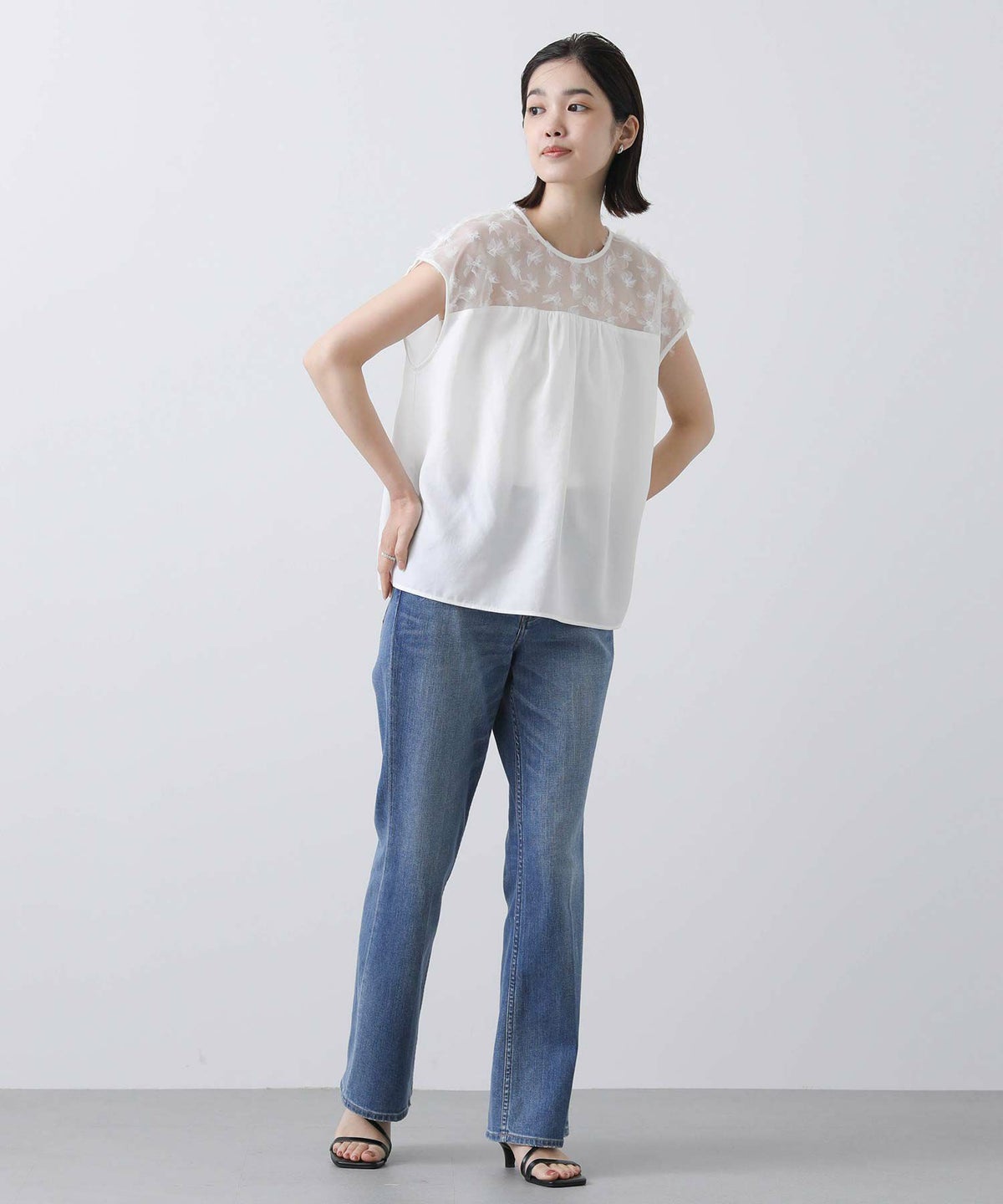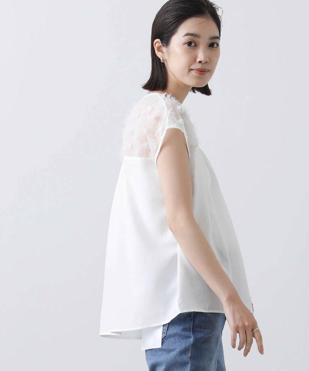 花柄チュールヨークブラウス