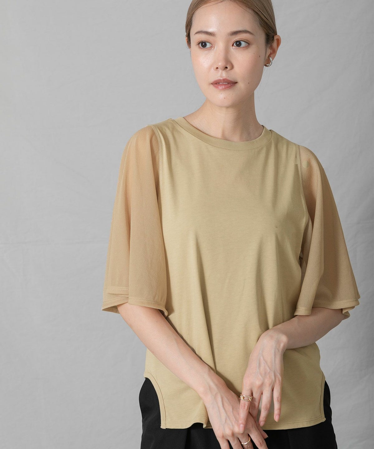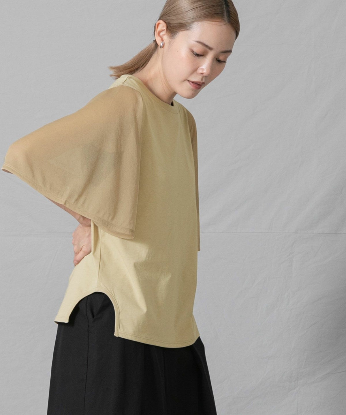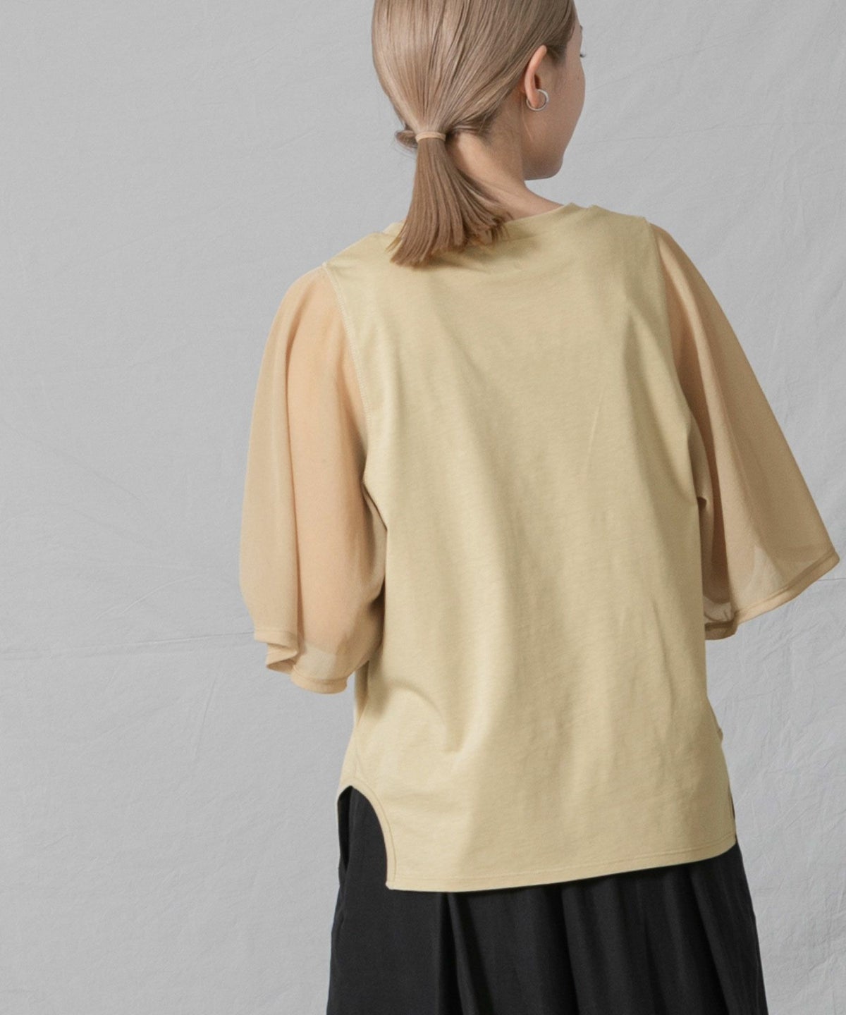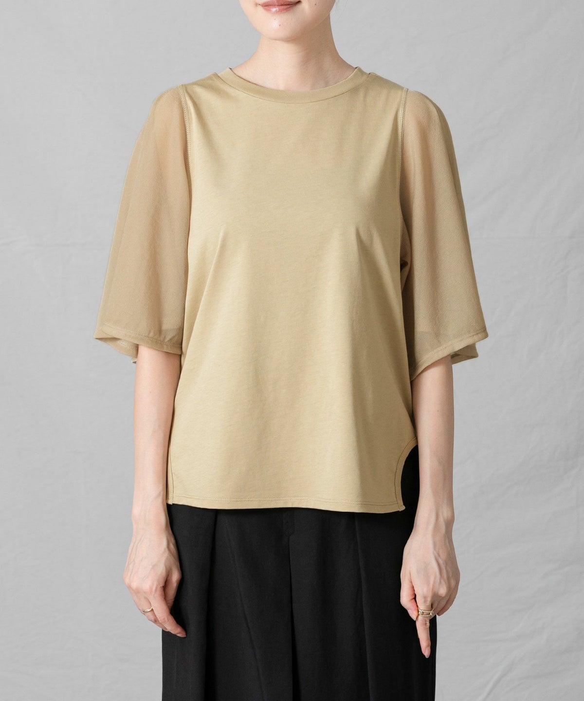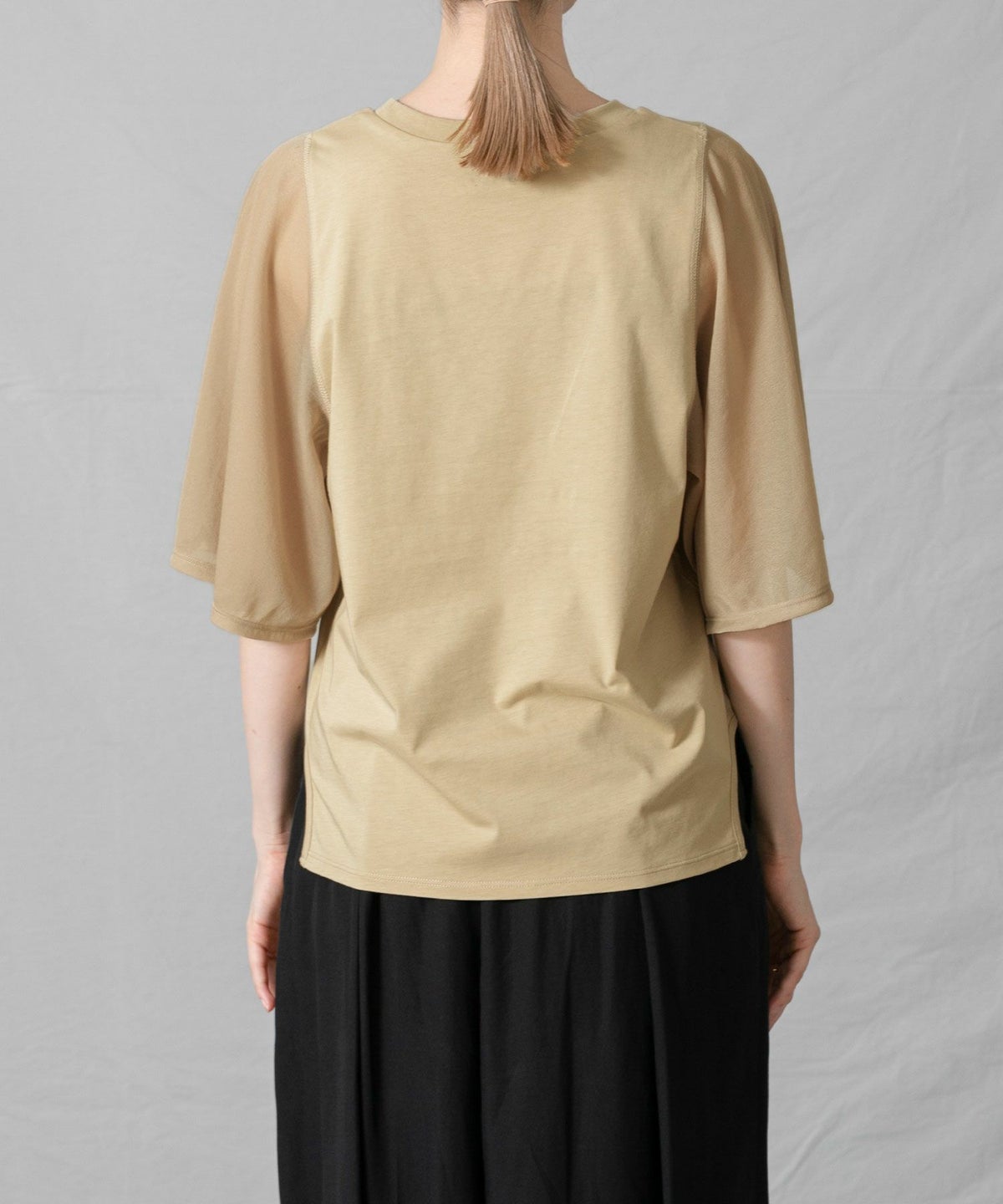 C袖シアーフレア5分袖Tシャツ