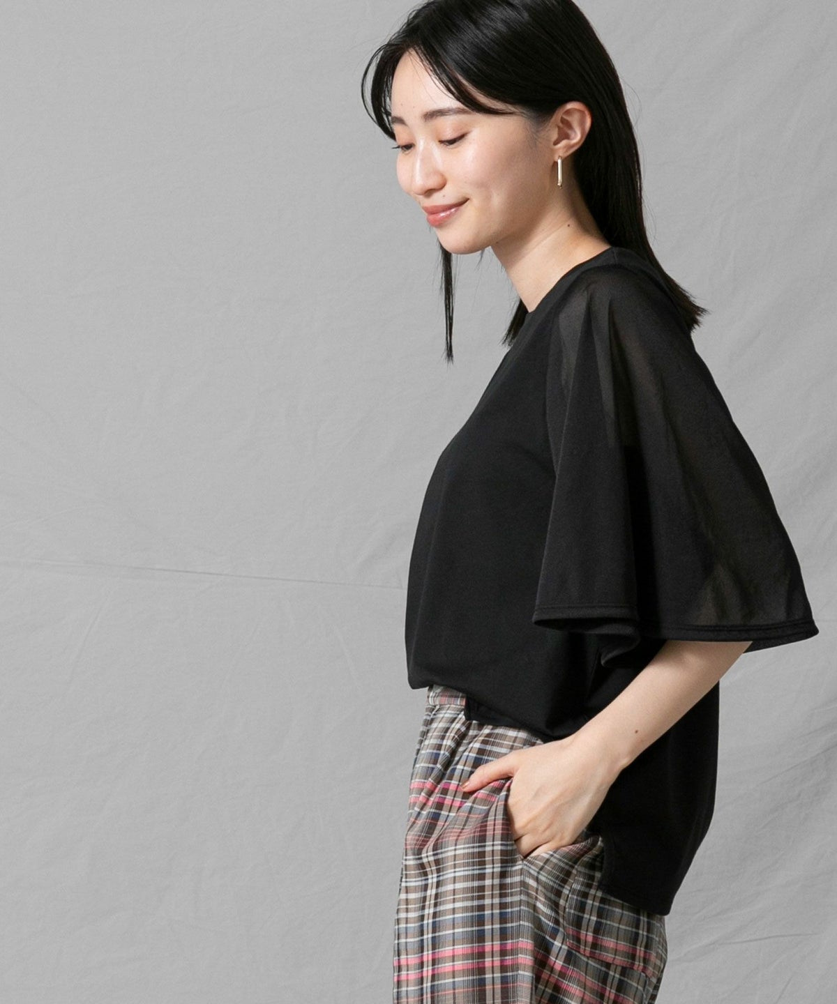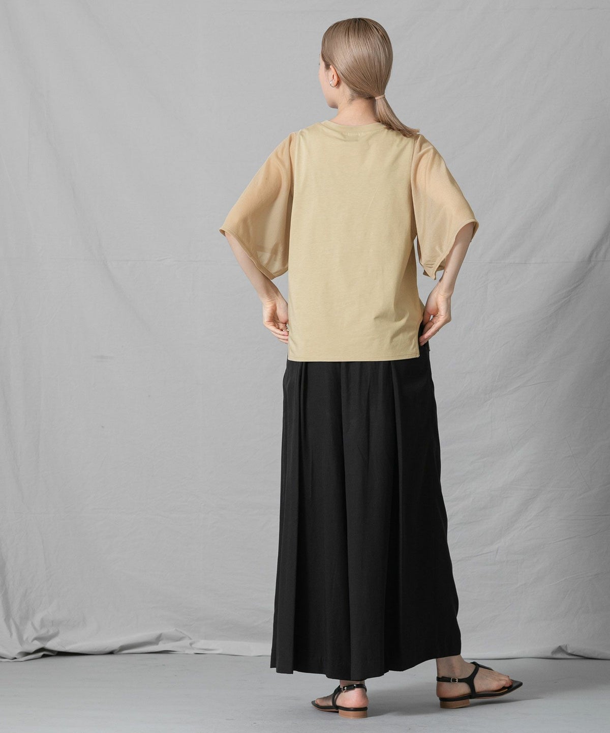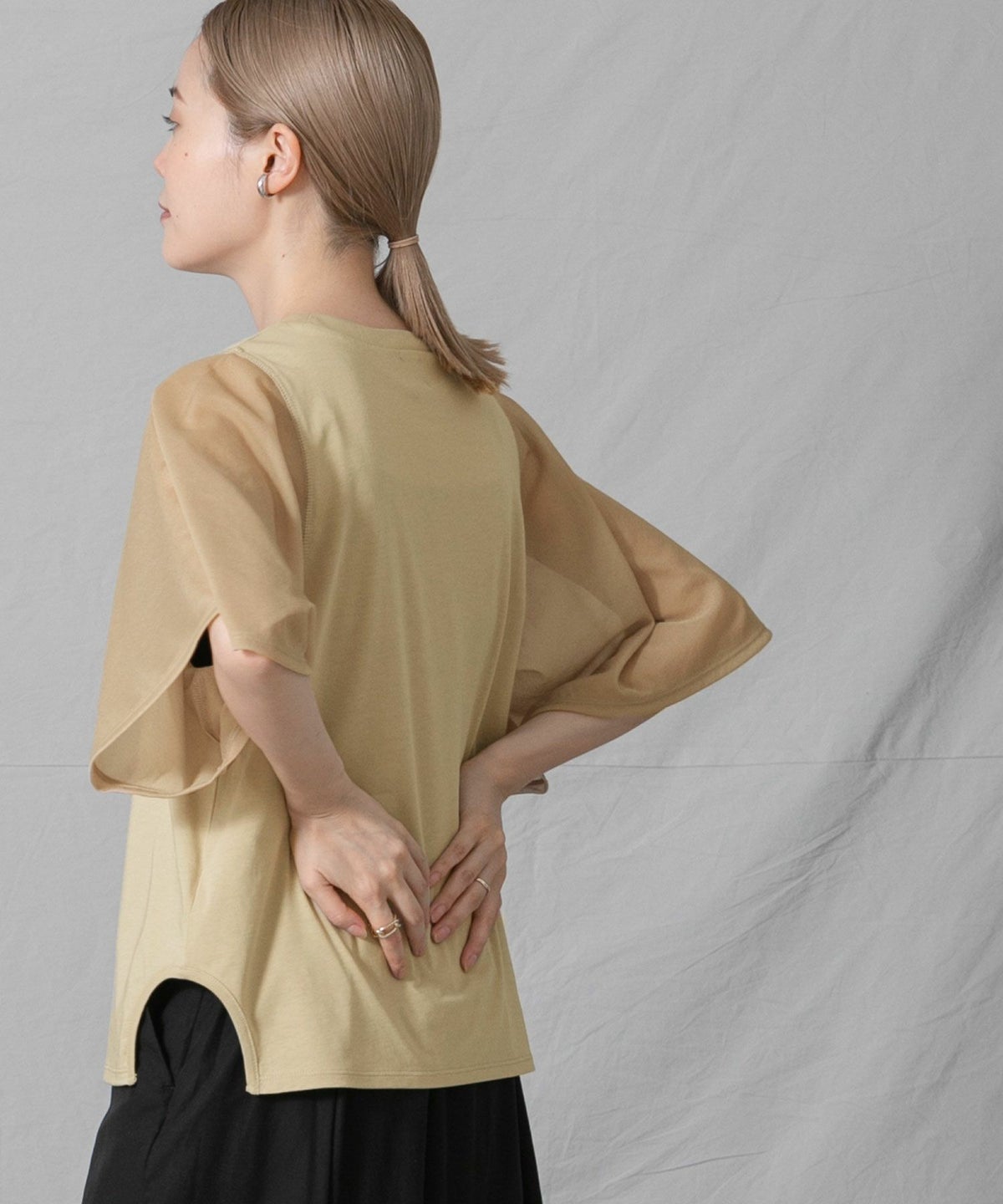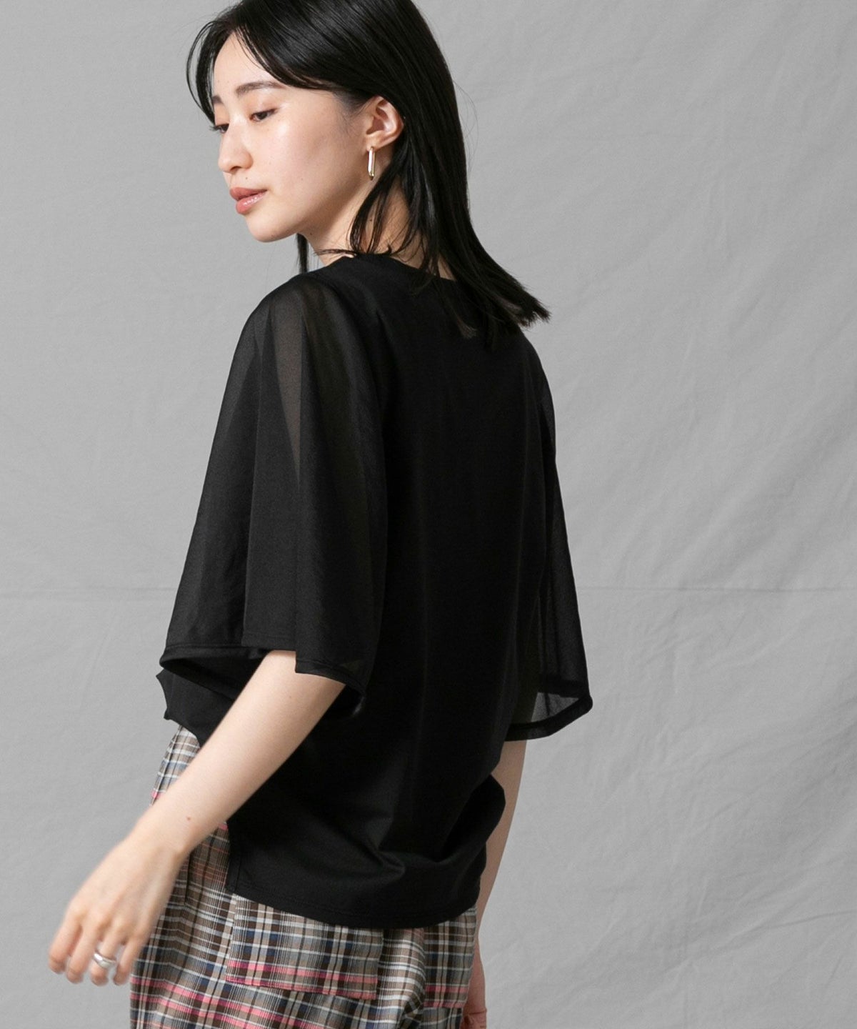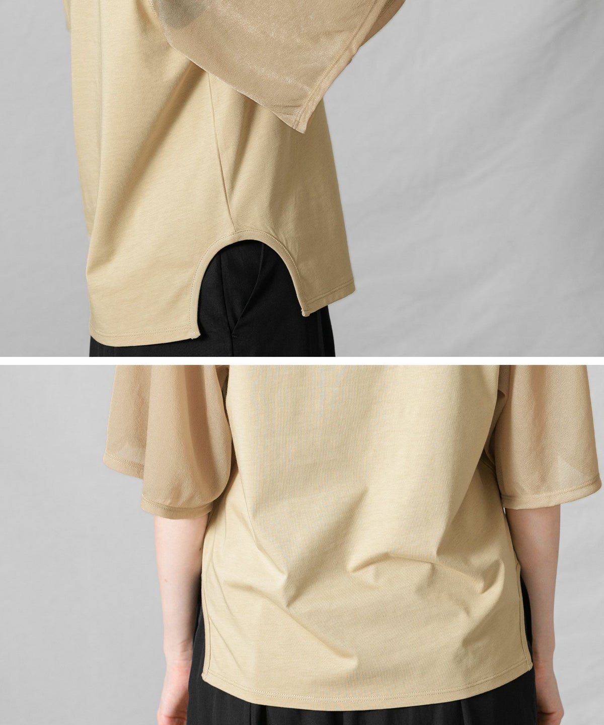 C袖シアーフレア5分袖Tシャツ