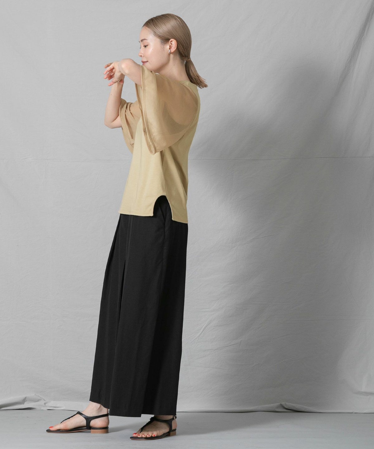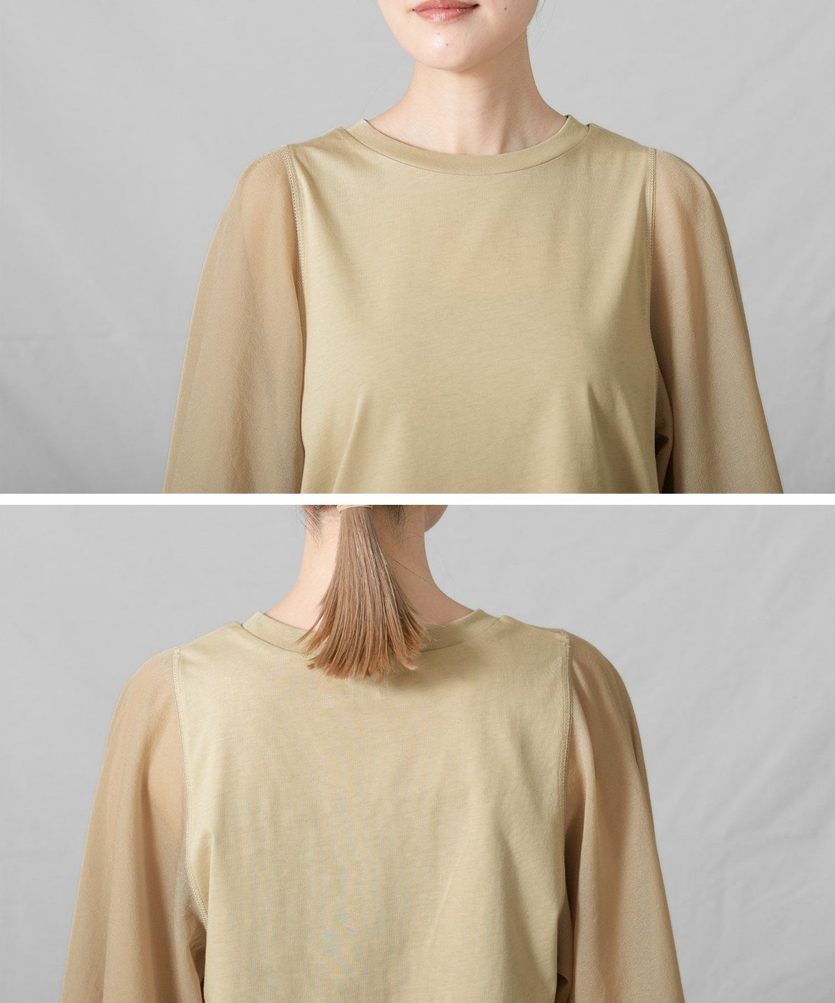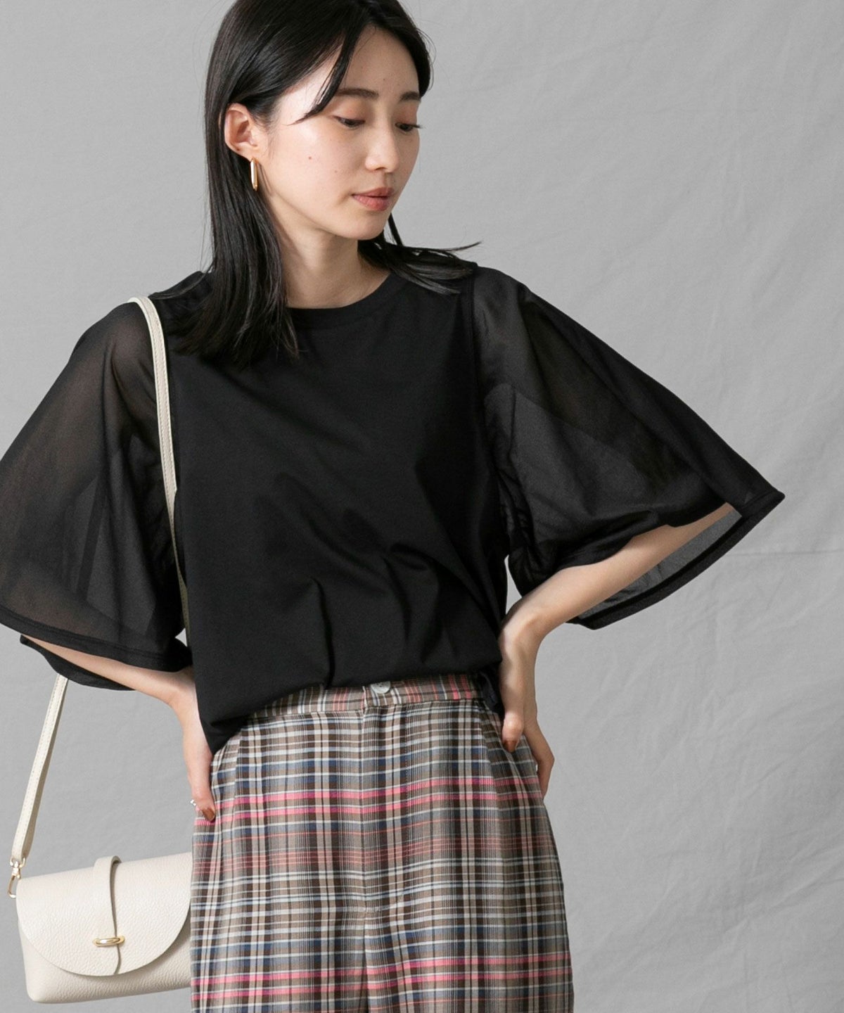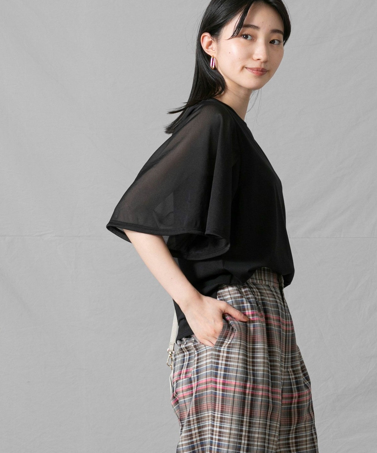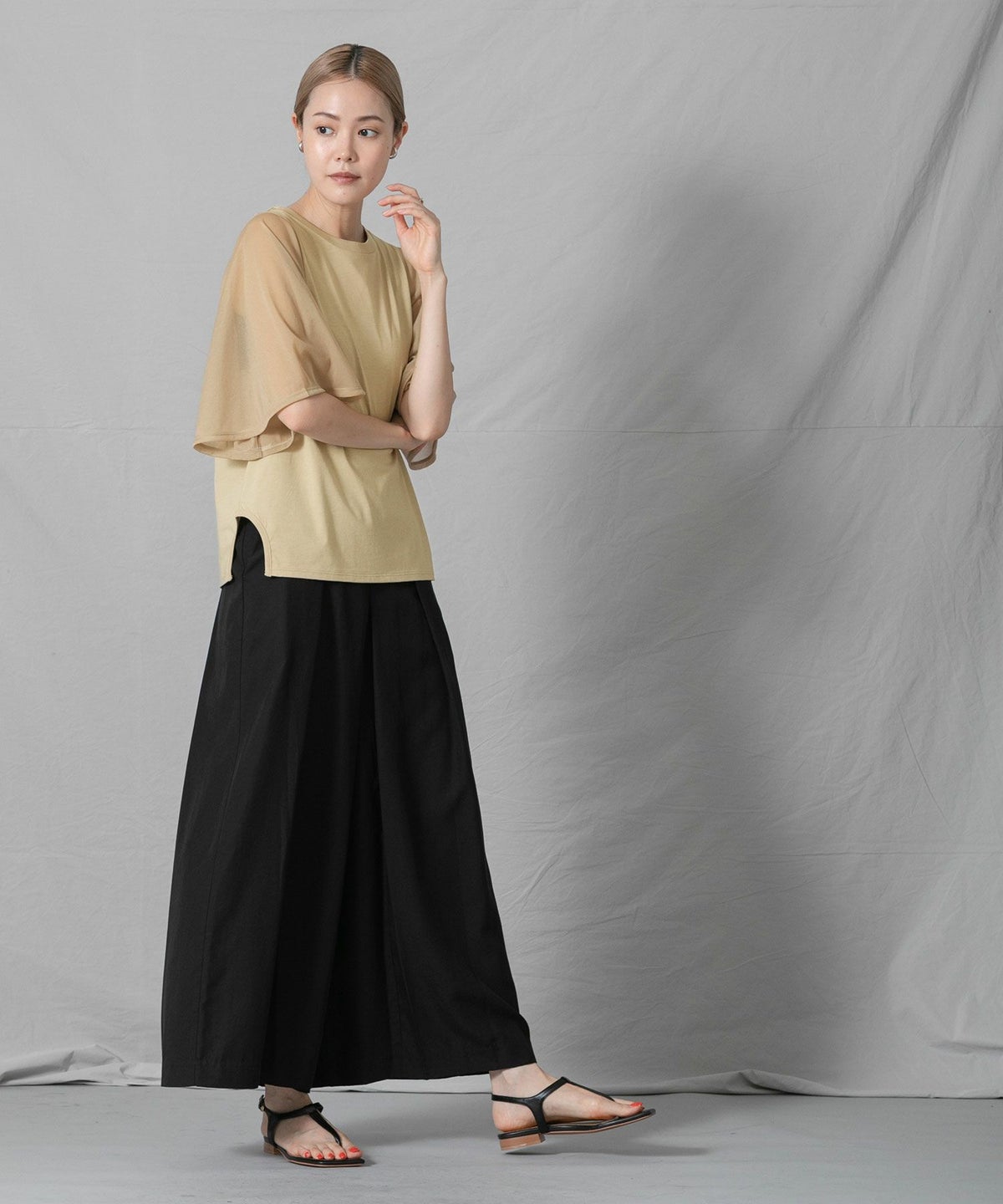 C袖シアーフレア5分袖Tシャツ