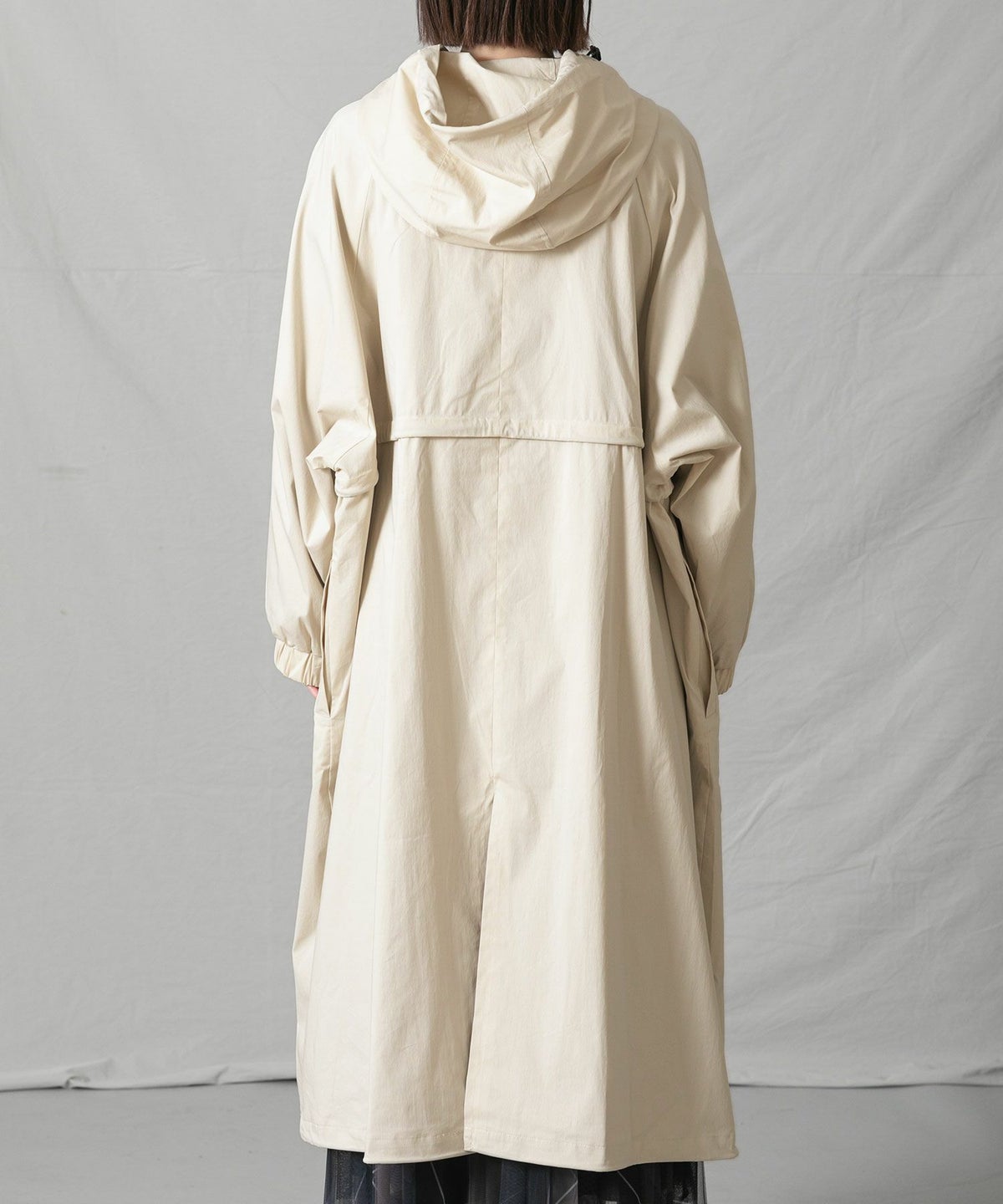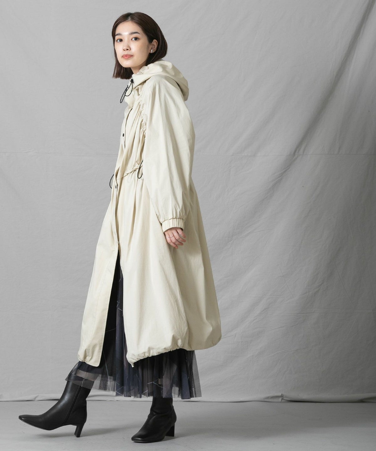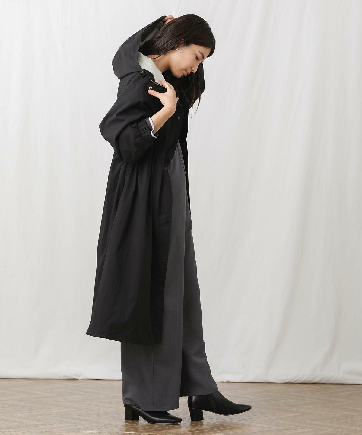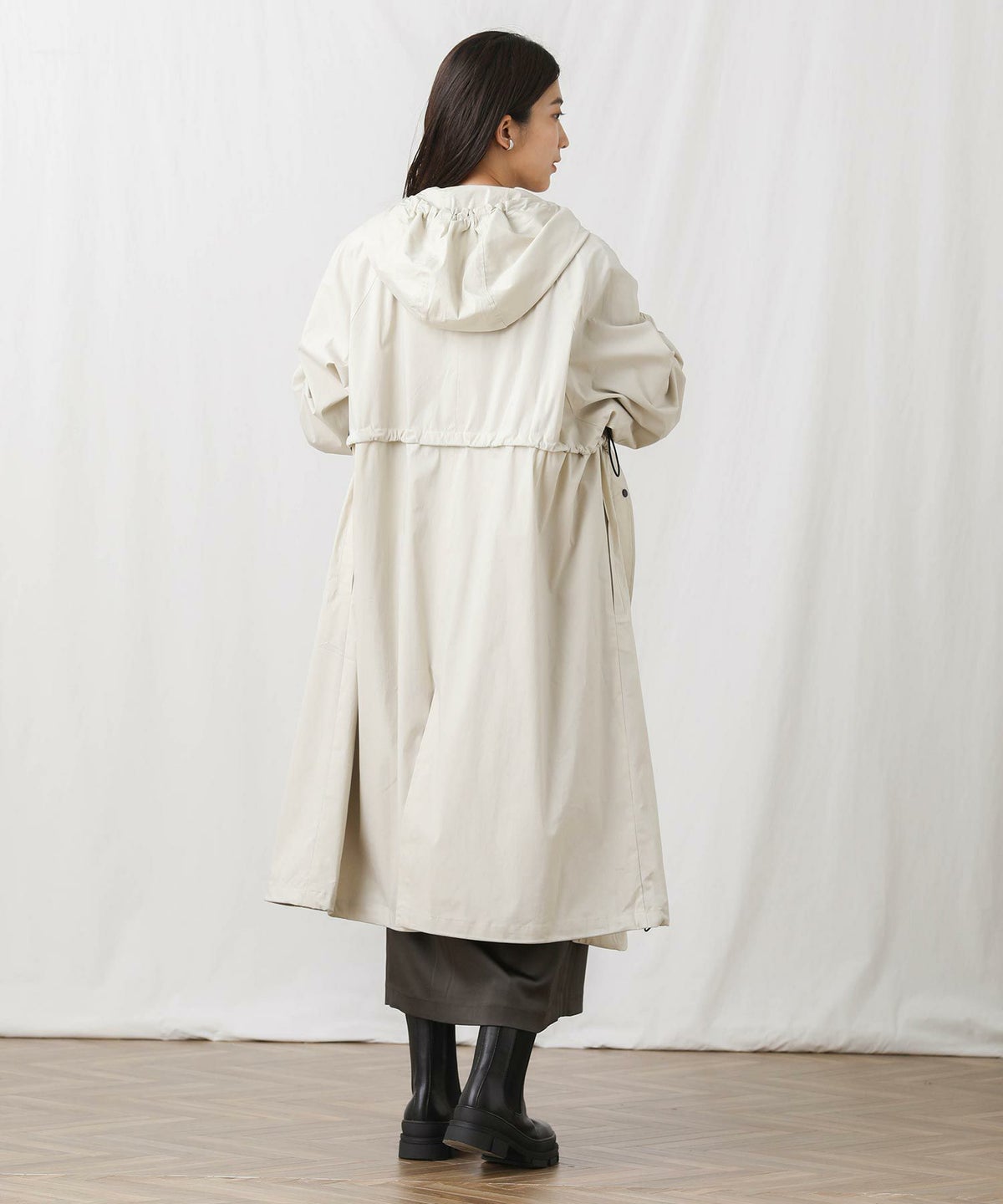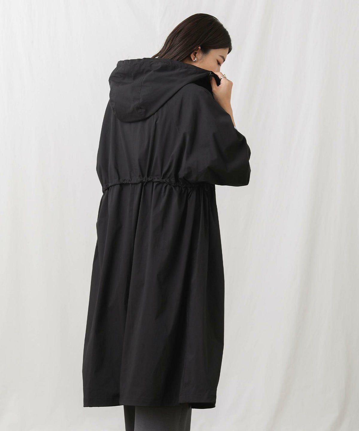 CNギャザーフードロングコート