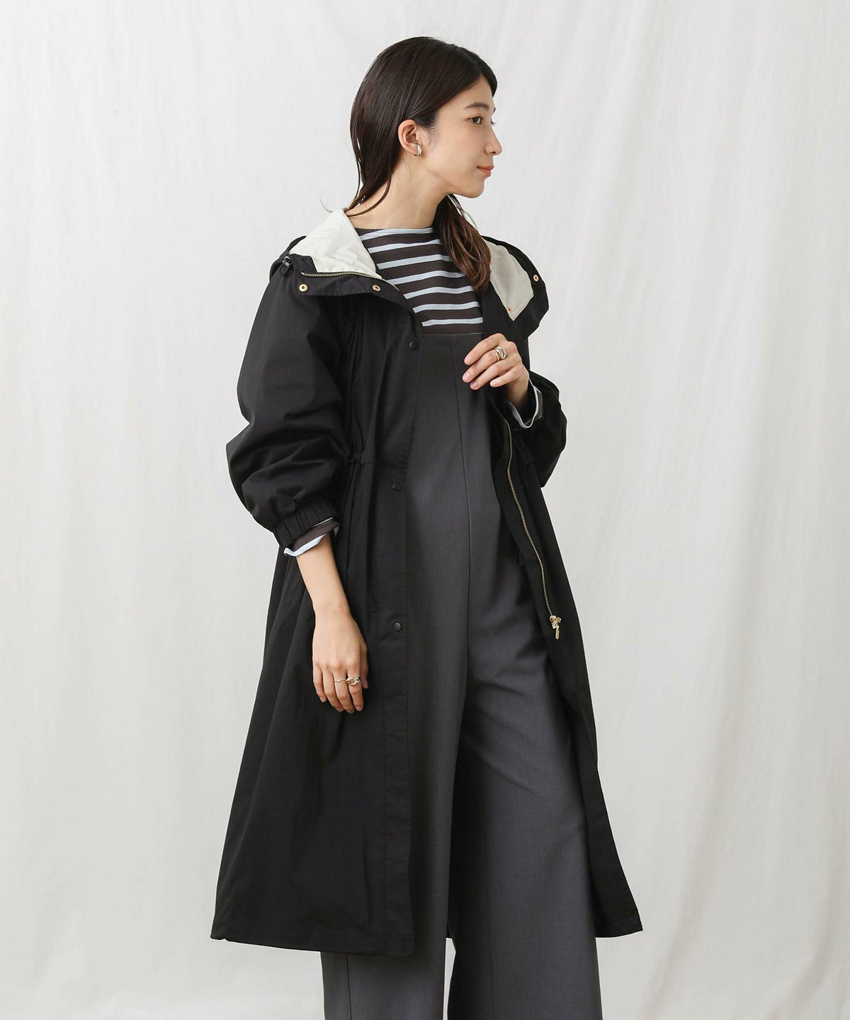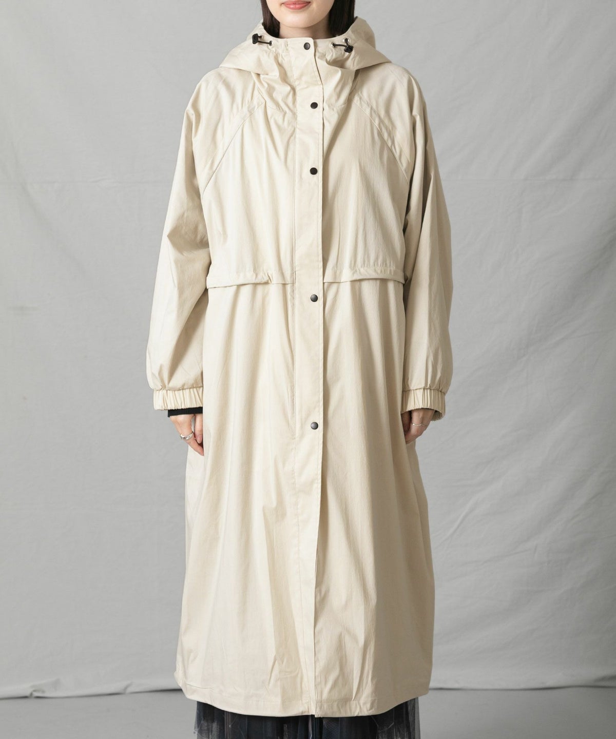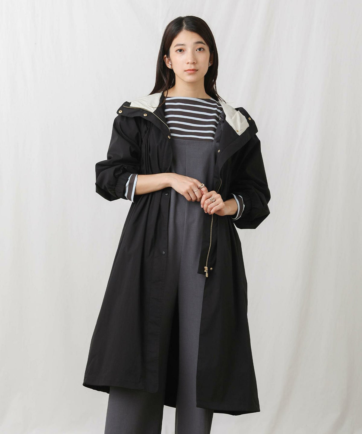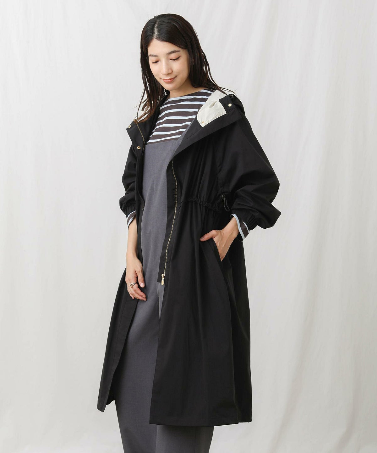 CNギャザーフードロングコート