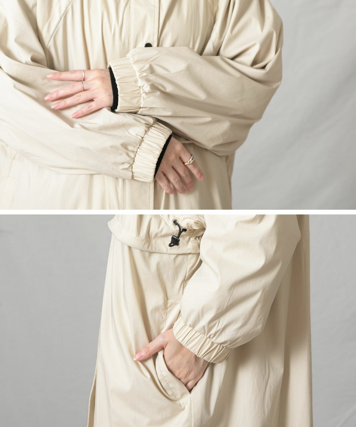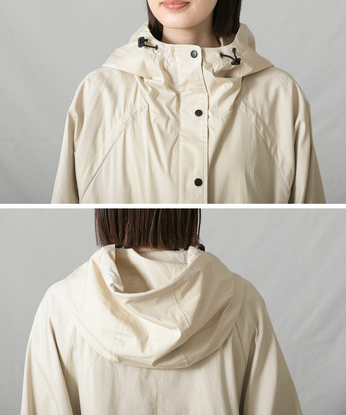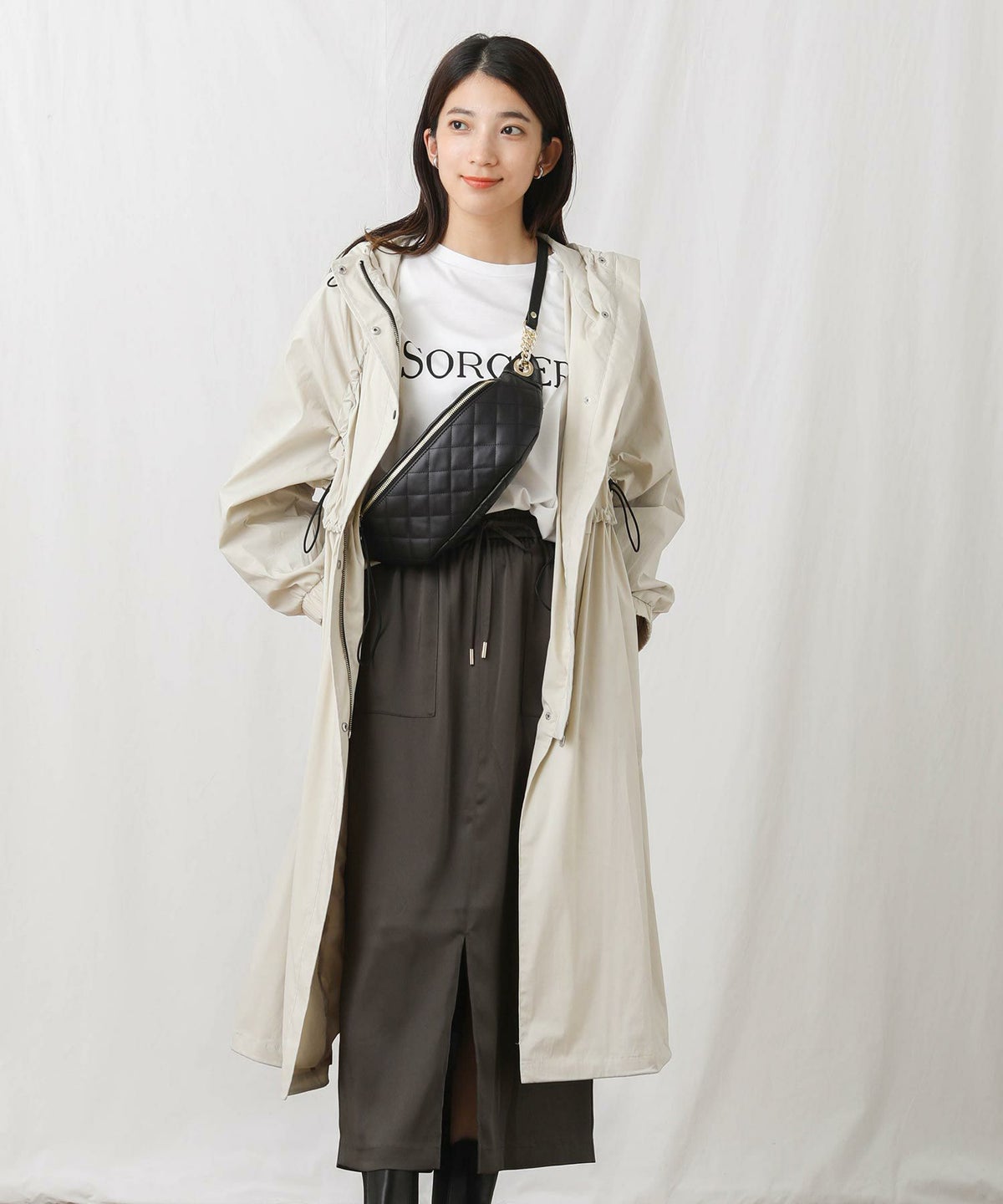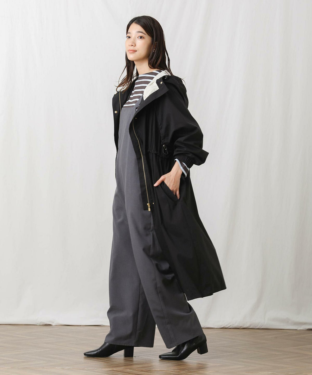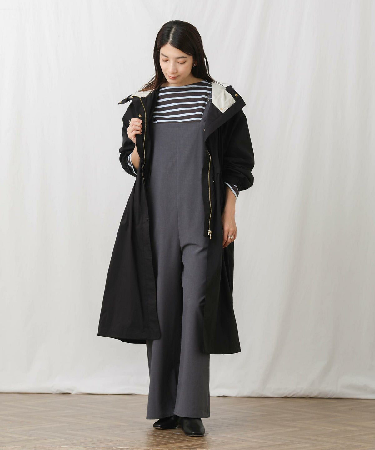 CNギャザーフードロングコート