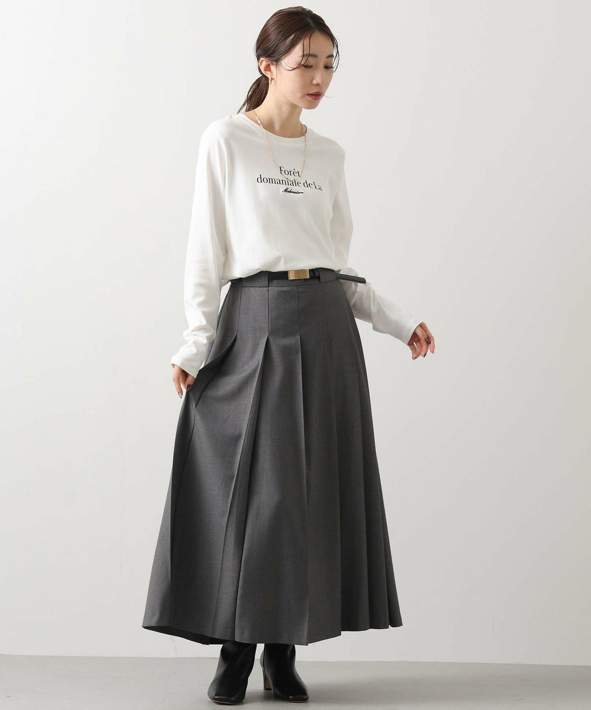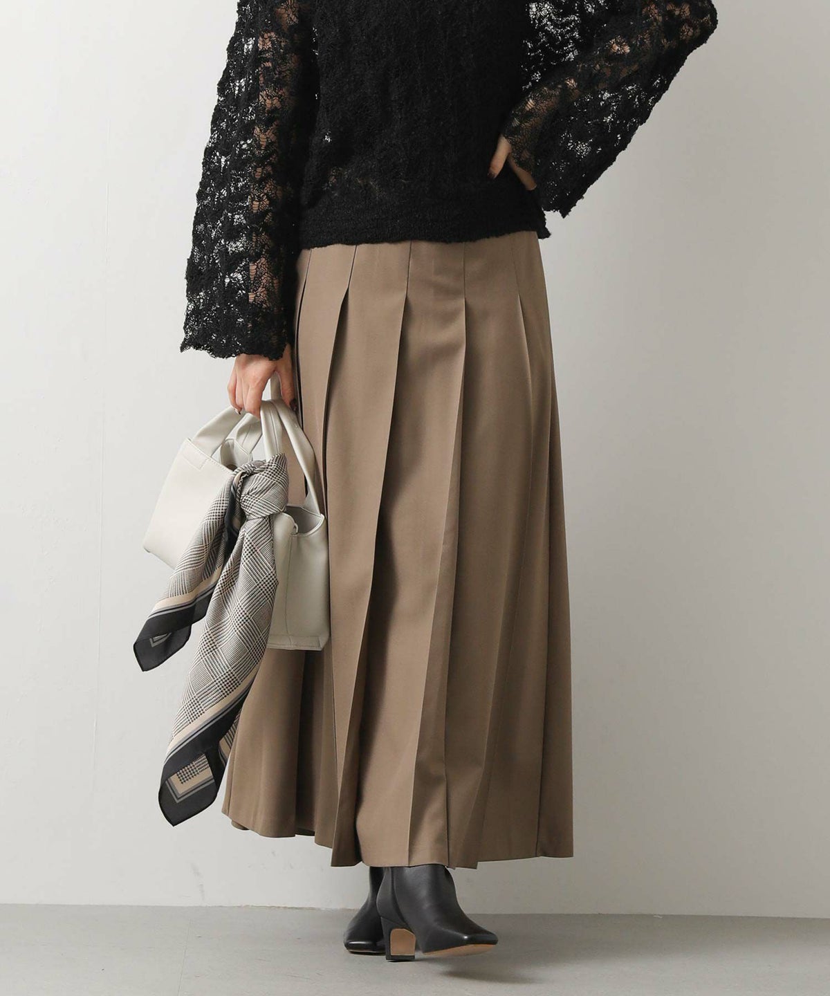 TRワイドプリーツミディスカート