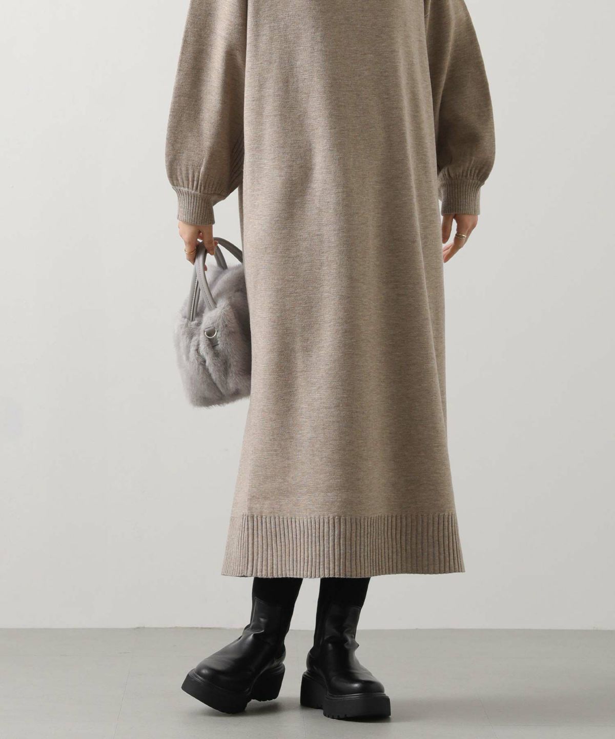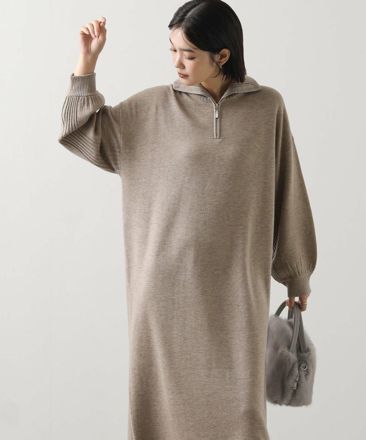 ハイネックジップスムースワンピース